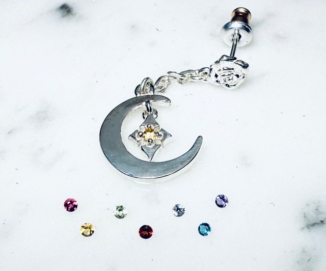 大人気のPure Crossを三日月の中央1箇所にフリフリさせて、それを更に薔薇から垂らしてフリフリさせた シンプルかつ遊び心のあるピアスです☆ 瀧田さん本人の「三日月にクロスを揺らしたい!」 という想いから生まれました☆ クロスの中央の石は選べますので個性を出せます ᕦ(ò_óˇ)ᕤ 石を下記から選んで、ご購入の際に備考欄にご記入下さいm(_ _)m 2個種類選べますので、 推しカラーと自分の誕生石等を是非♫ 1月 ガーネット 赤 2月 アメジスト 紫 3月 アクアマリン 薄い水色 4月 キュービックジルコニア(人工ダイヤモンド)透明 5月 エメラルド(合成)緑 6月 ブルームーンストーン 乳白色 7月 ルビー(合成)赤ピンク 8月 ペリドット 黄緑 9月 サファイヤ(合成)青 10月 ピンクトルマリン ピンク 11月 シトリンかブルートパーズ 黄か水色 12月 タンザナイト 薄紫 ☆他の石が良い方は、お気軽にお問い合わせ下さい☆ ※Special versionの三日月に10石の石を入れたピアスが 良い方は、カテゴリーのカスタムから9000円分を 同時購入して、Special希望とご記入下さい! お得です! ※ペアなので三日月の向きを左右↔︎反転出来ます 最後の写真参考。 反転ペアが良い方は、備考欄に反転希望とご記入下さい m(_ _)m *別料金になりますが イエロー、ピンク、ブラックのコーティングも出来ますので、その際はカテゴリーのカスタムから2000円を同時購入して頂き、種類を備考欄にご記入下さいm(_ _)m *受注生産になりますので、2週間前後の製作期間をご了承下さいませm(_ _)m 素材 シルバー925 三日月部分 幅:縦 約 14mm 横 約 14mm 厚:約 1.3 mm 薔薇から1.5cmほど垂らしています 石、、、中央 各種 ※こちらはペア売りですので片売りよりもお得なので 是非!