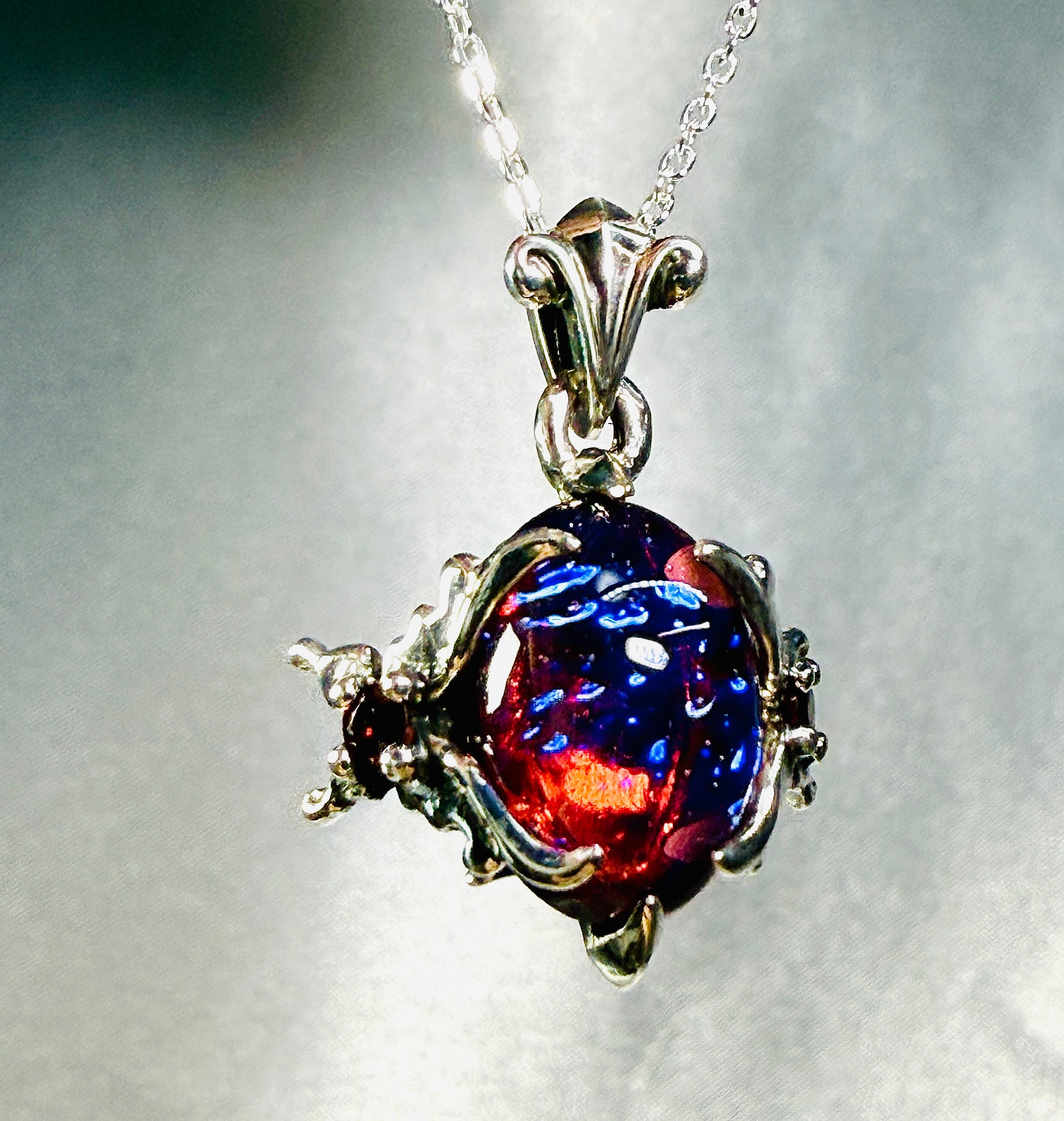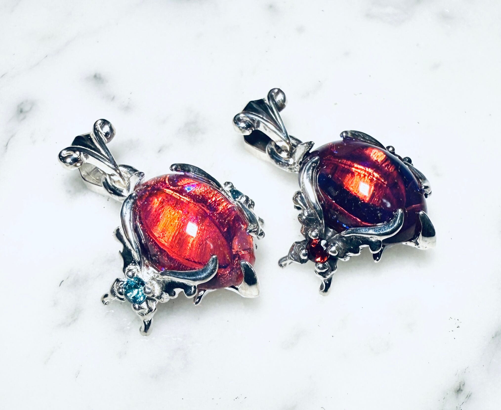 いにしえの竜が吹いた炎をそのまま閉じ込めた様なヴィンテージチェコガラス。 真紅色に青がゆらりと浮かぶのがヴィンテージドラゴンズブレスの代表的な色です。