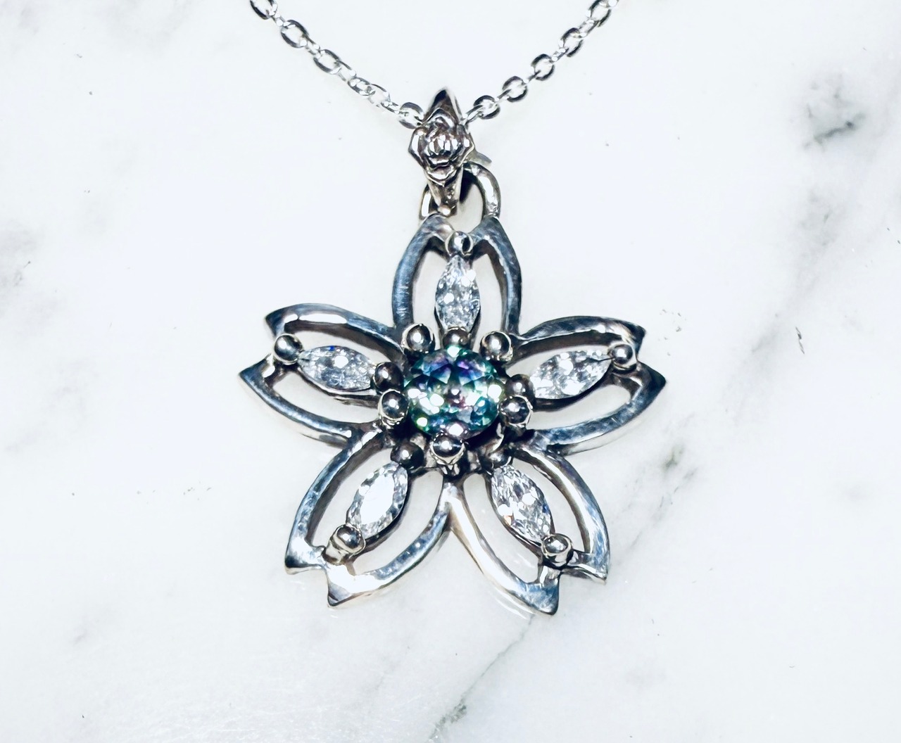 *別料金になりますが、花弁のクリアなキュービックジルコニア5石を、天然石に変える事も可能!