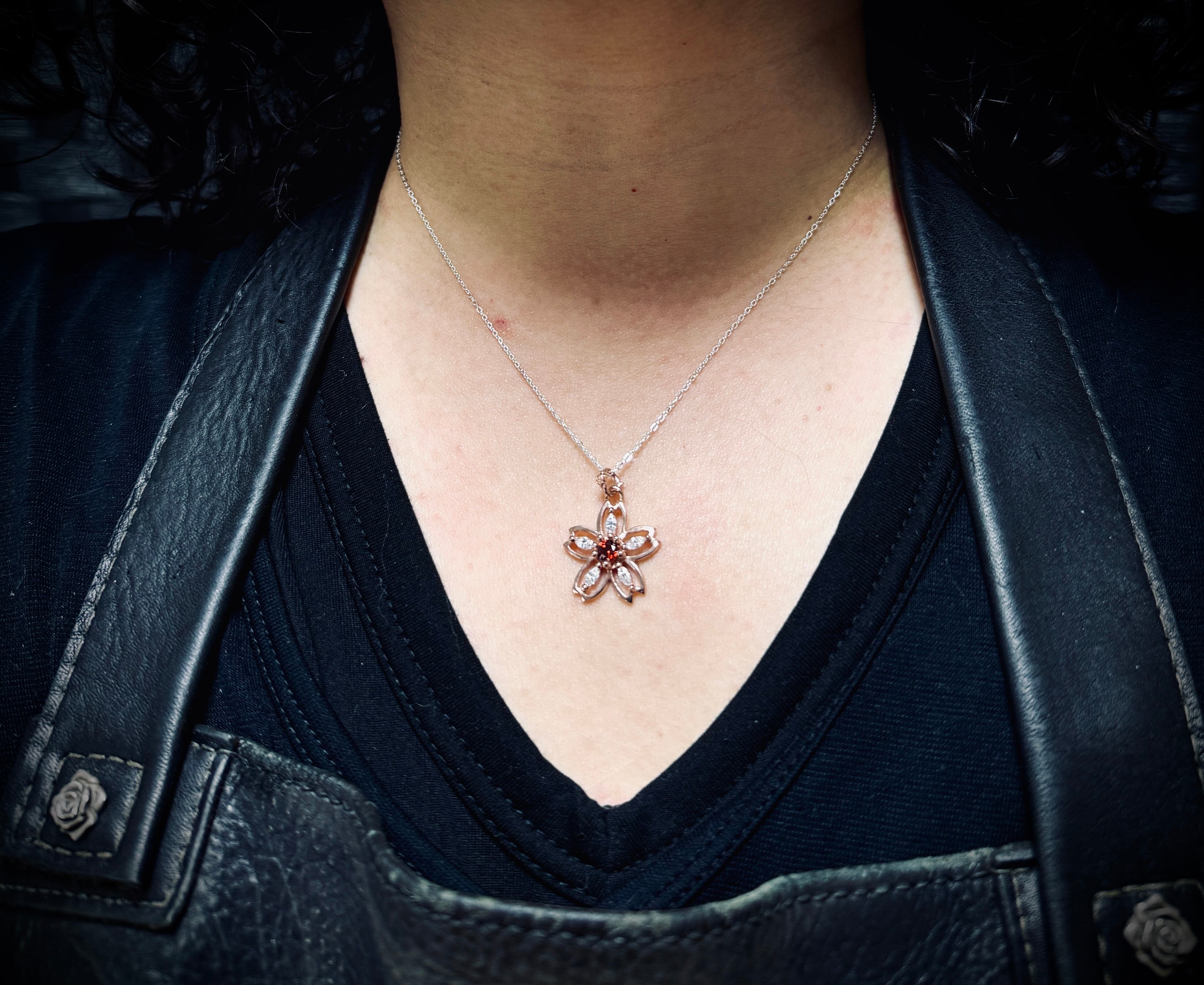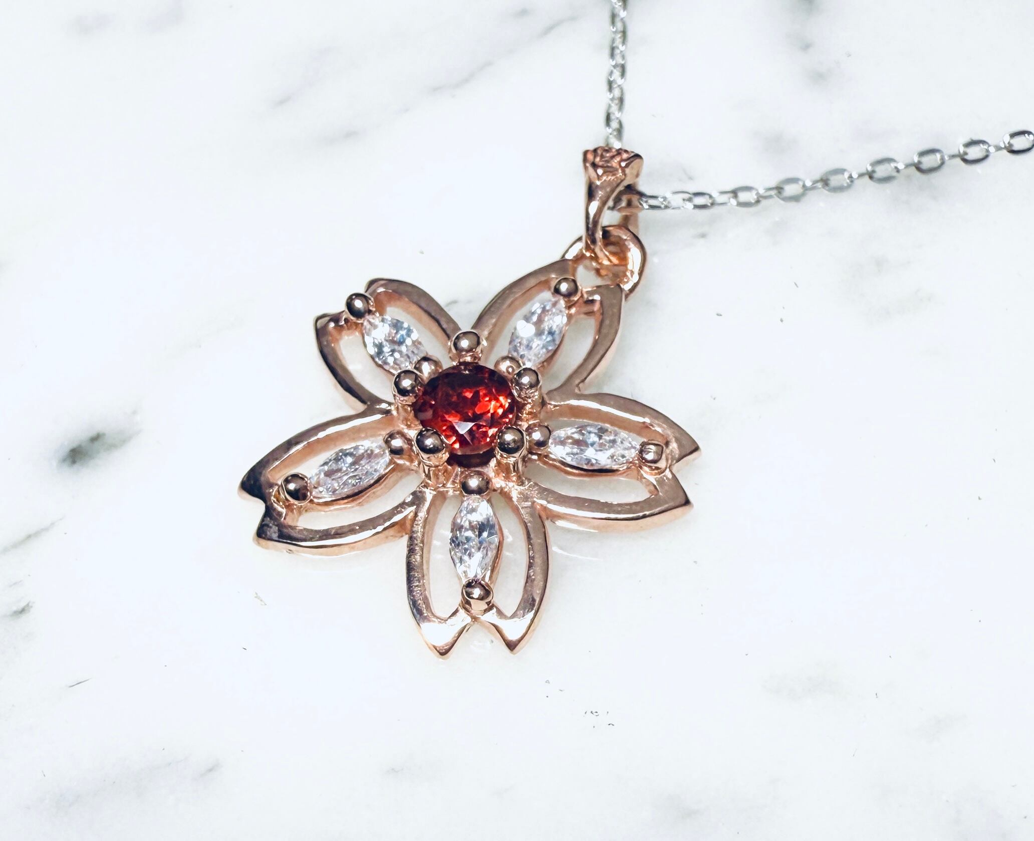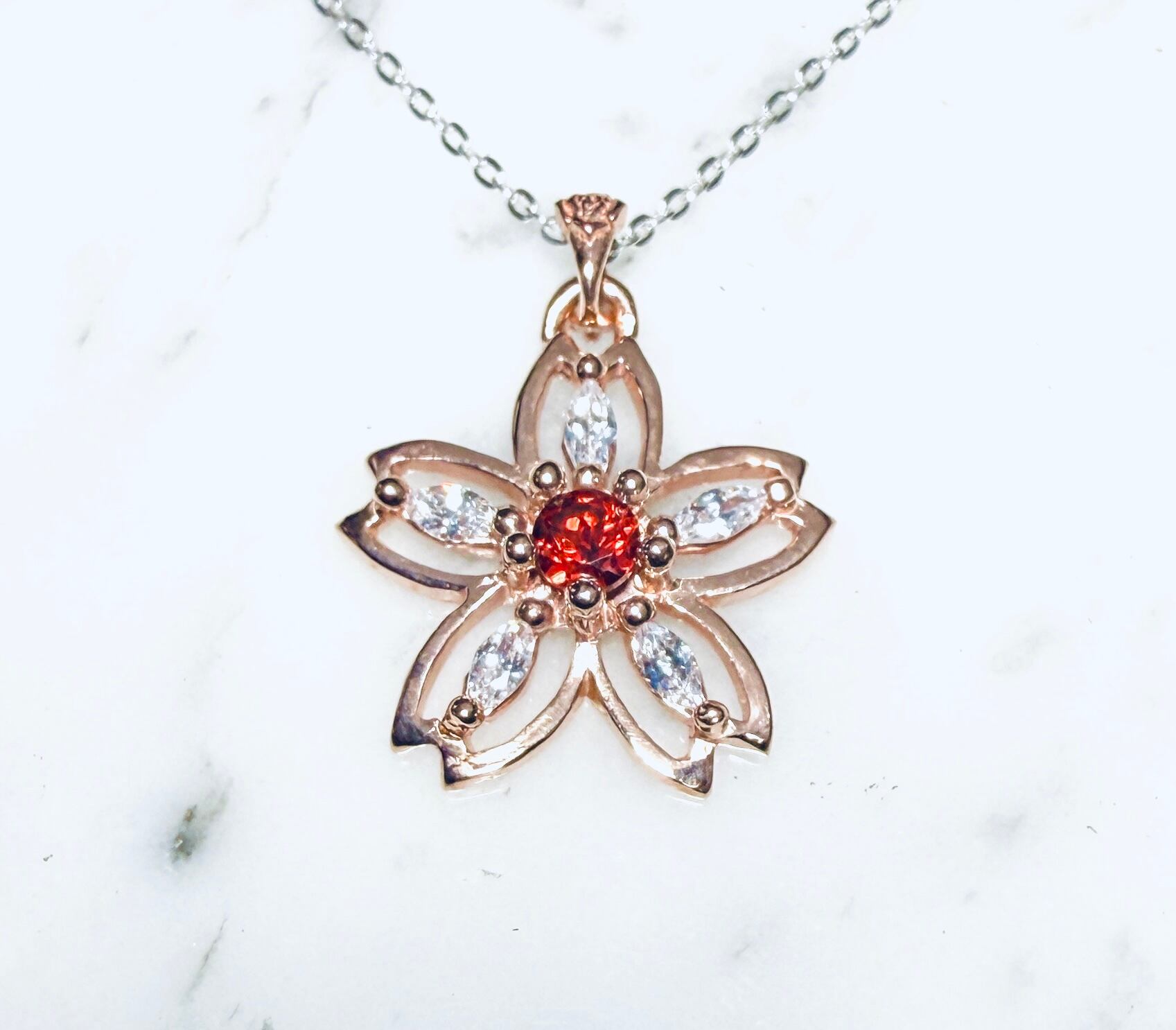 ☆新作の1点限りのお試し特価☆ 「光桜」ペンダントPINK (ガーネット) おまけチェーン付き
