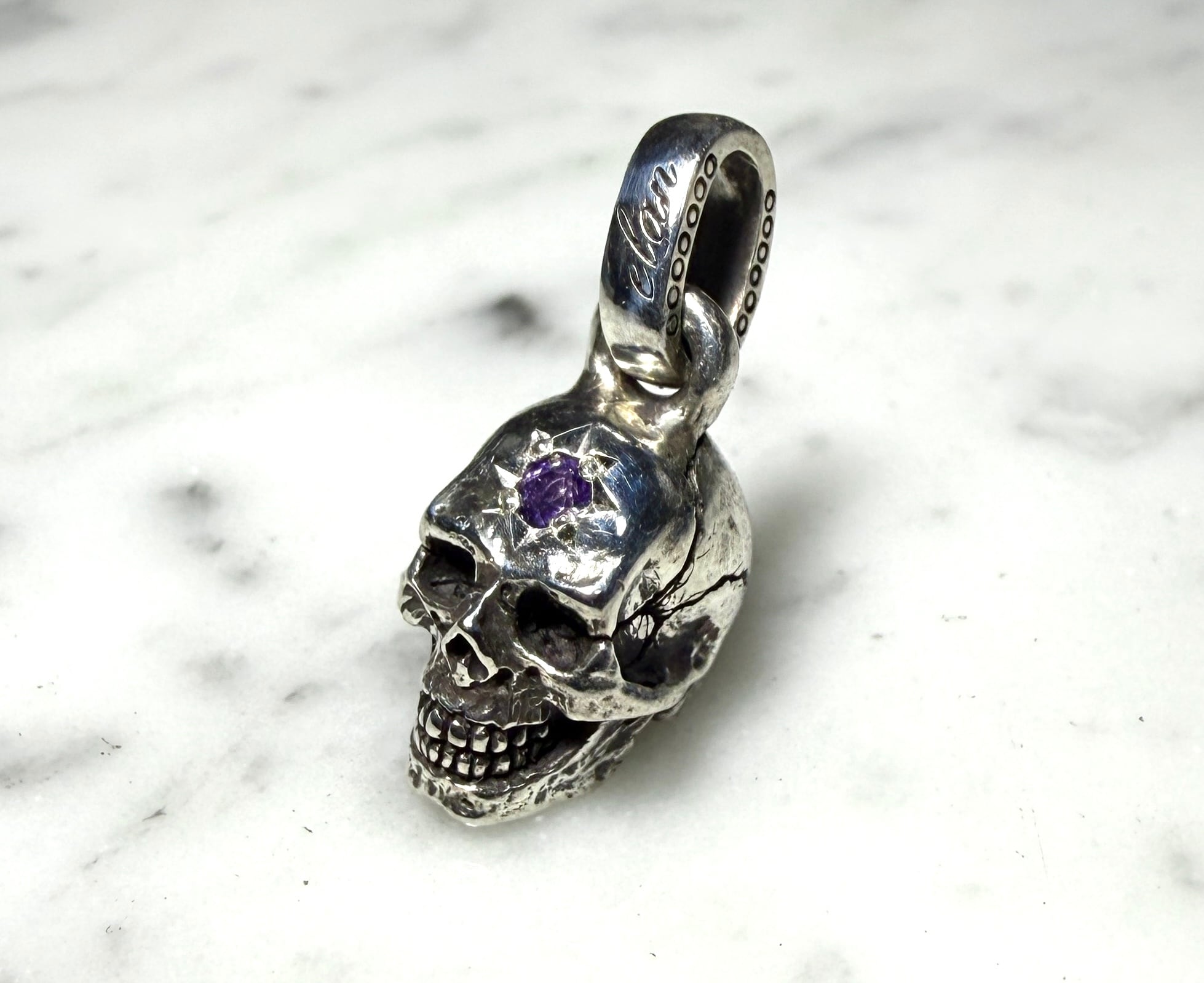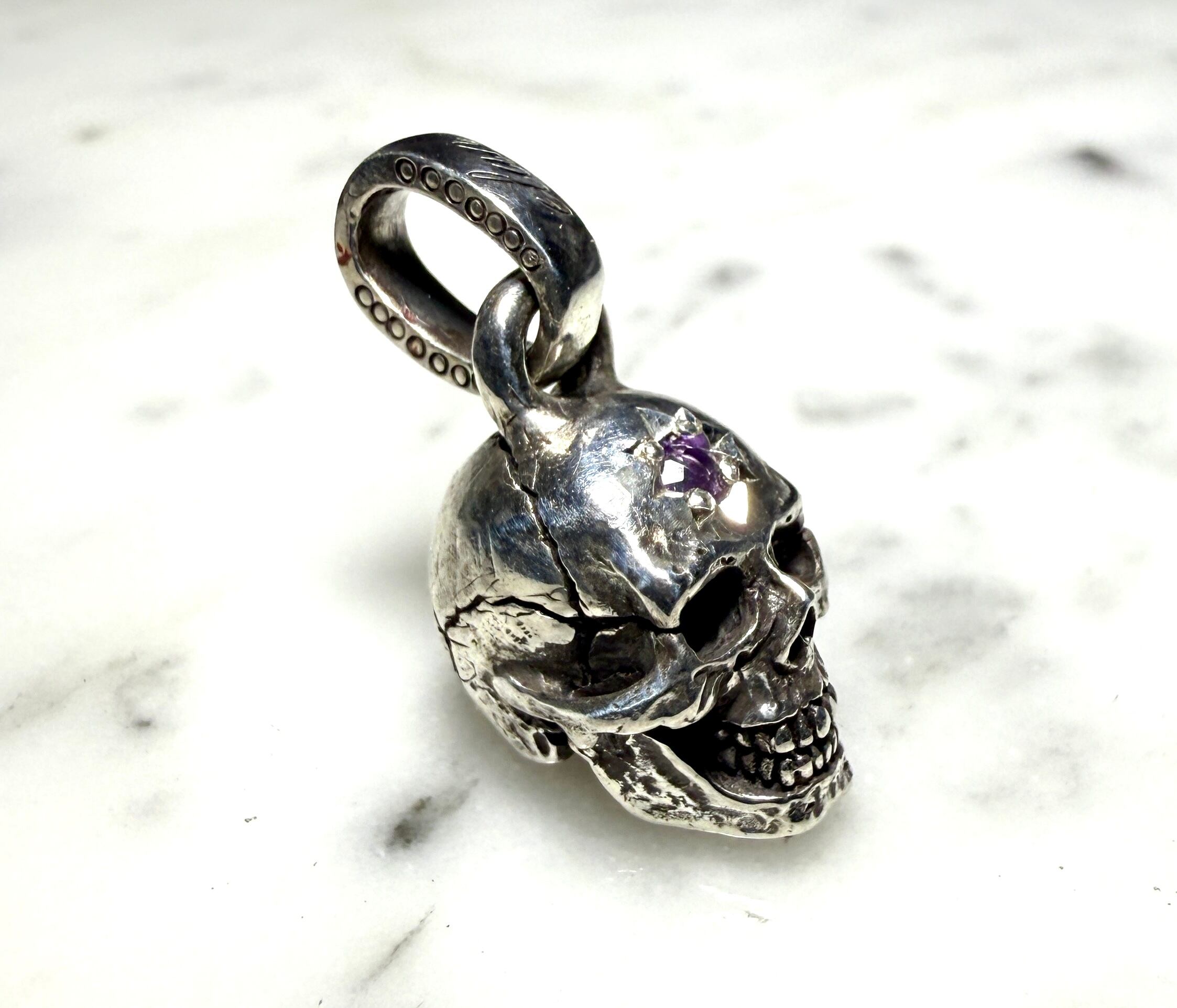 ☆スピネルチェーン付き1点のみ特価☆ 「髑髏」ペンダント 第3の目アメシスト (スピネルチェーン付)