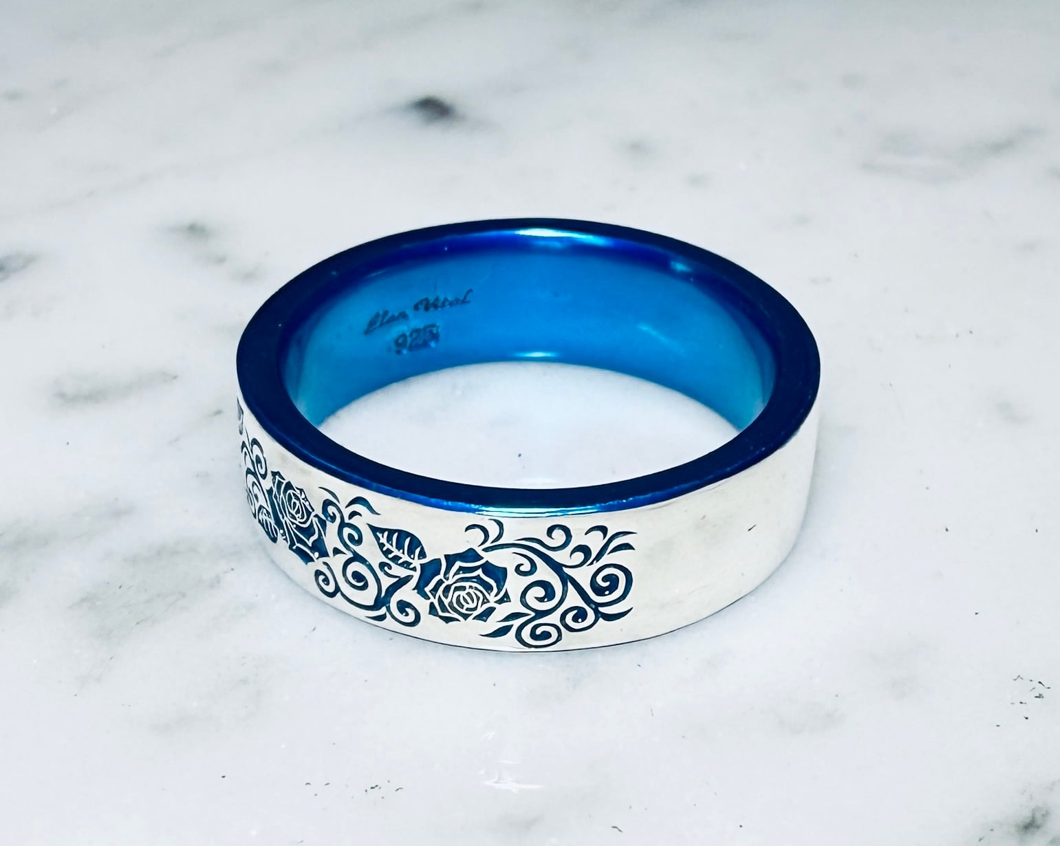 こちらは、通常品のオールシルバーに更に特殊なカラー加工を施して、リングのデザイン部分と側面、内側を