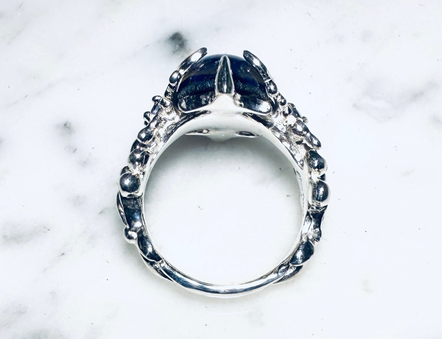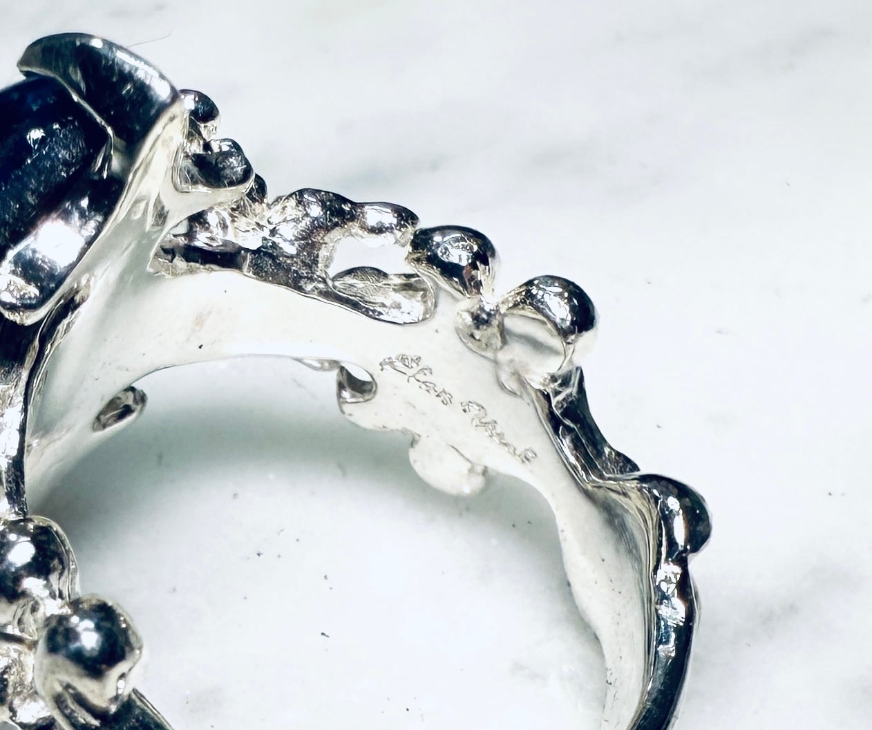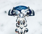 左右から燃え上がる様な蝶のデザインで石を固定しました