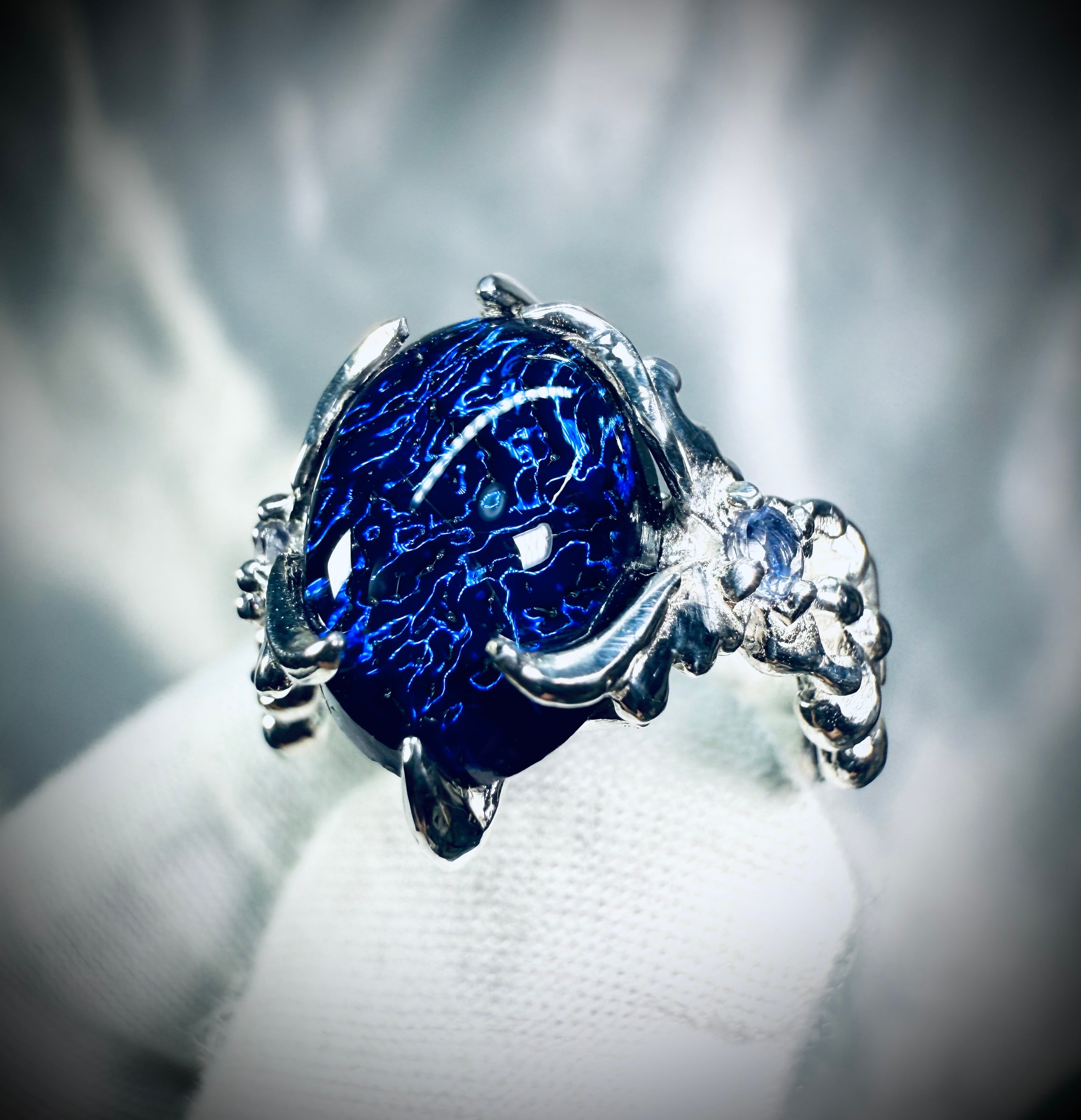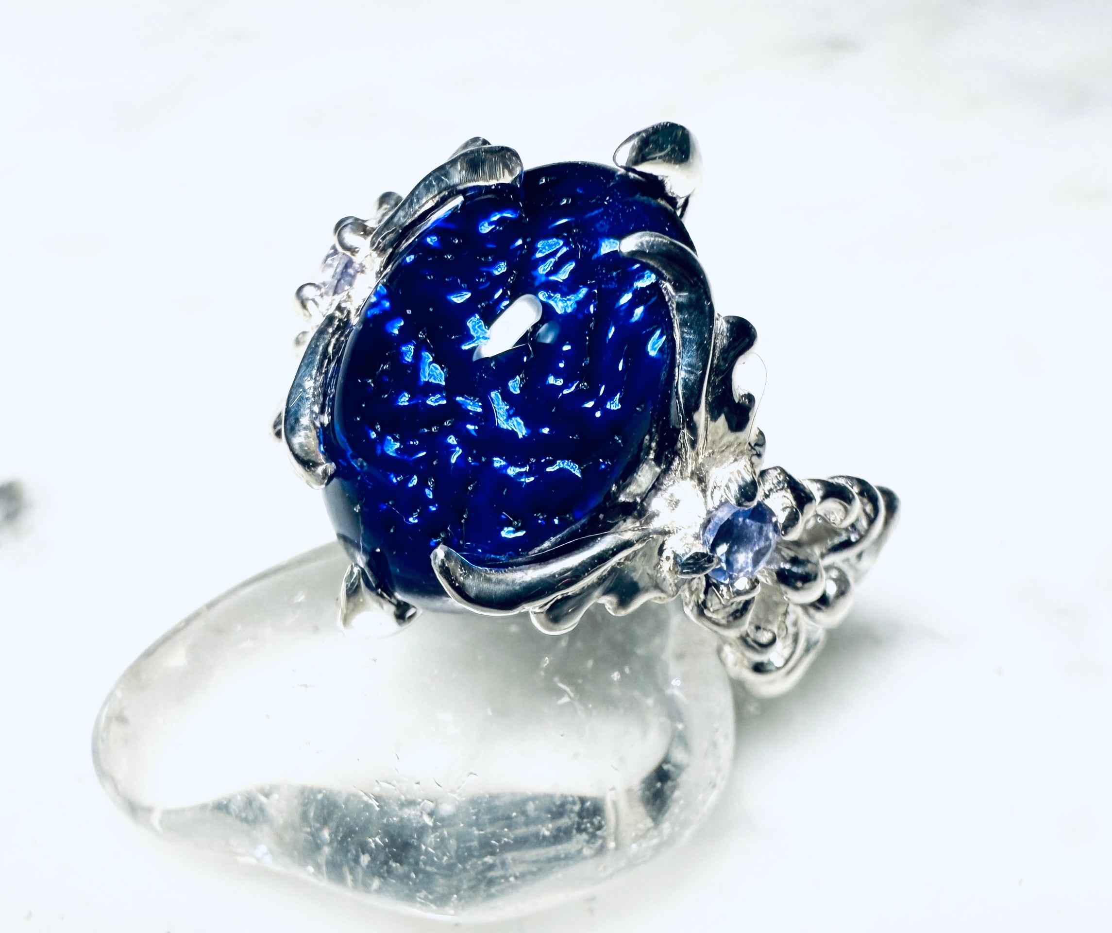 いにしえの竜が吹いた炎をそのまま閉じ込めた様なヴィンテージチェコガラス。 真紅色に青がゆらりと浮かぶのがヴィンテージドラゴンズブレスの代表的な色です。