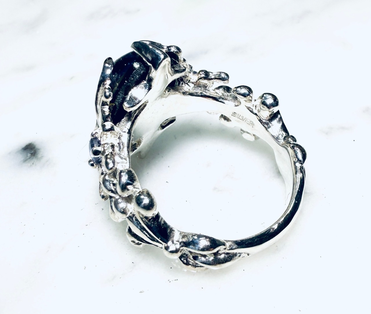 ☆シンデレラサイズ特価品(13号)☆「陽炎」蒼リングwithアイオライト 白仕上げ
