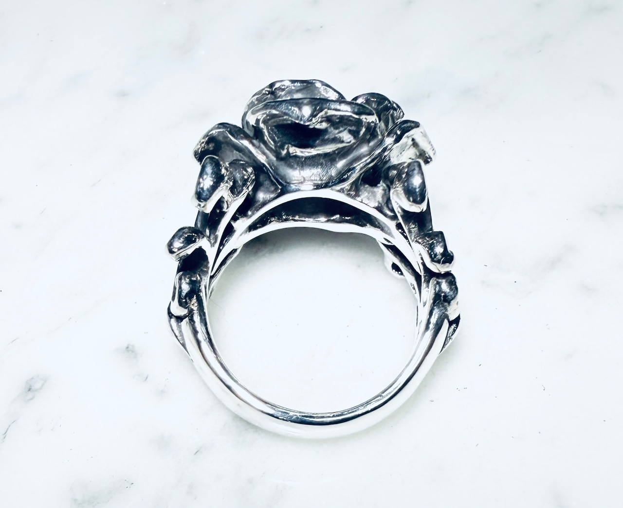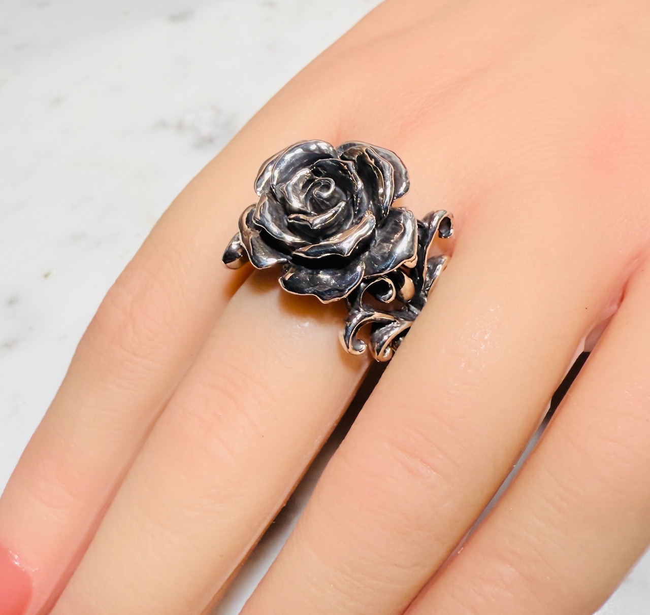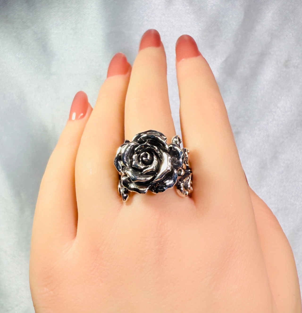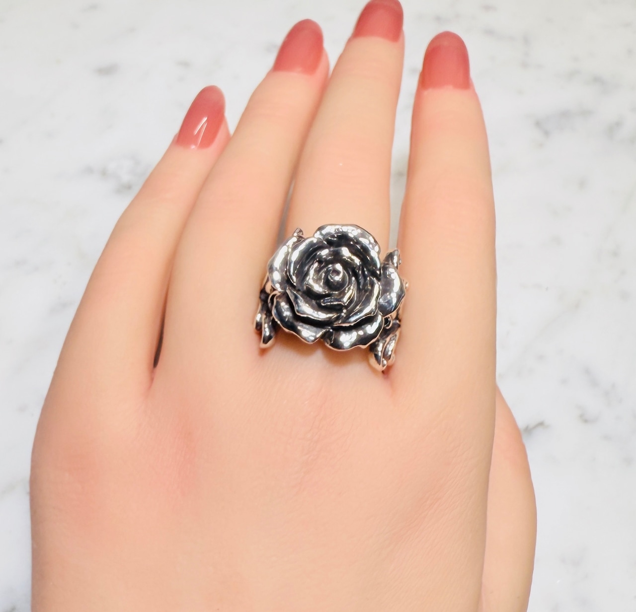 ファッションリングとして存在感ある薔薇のアクセント