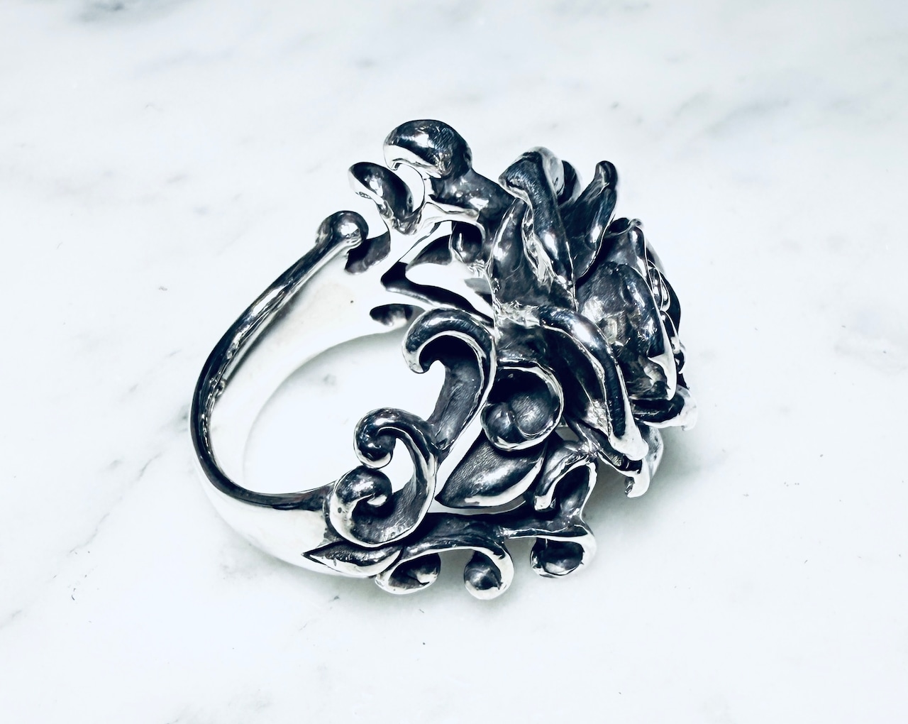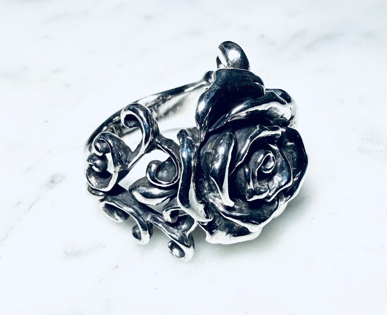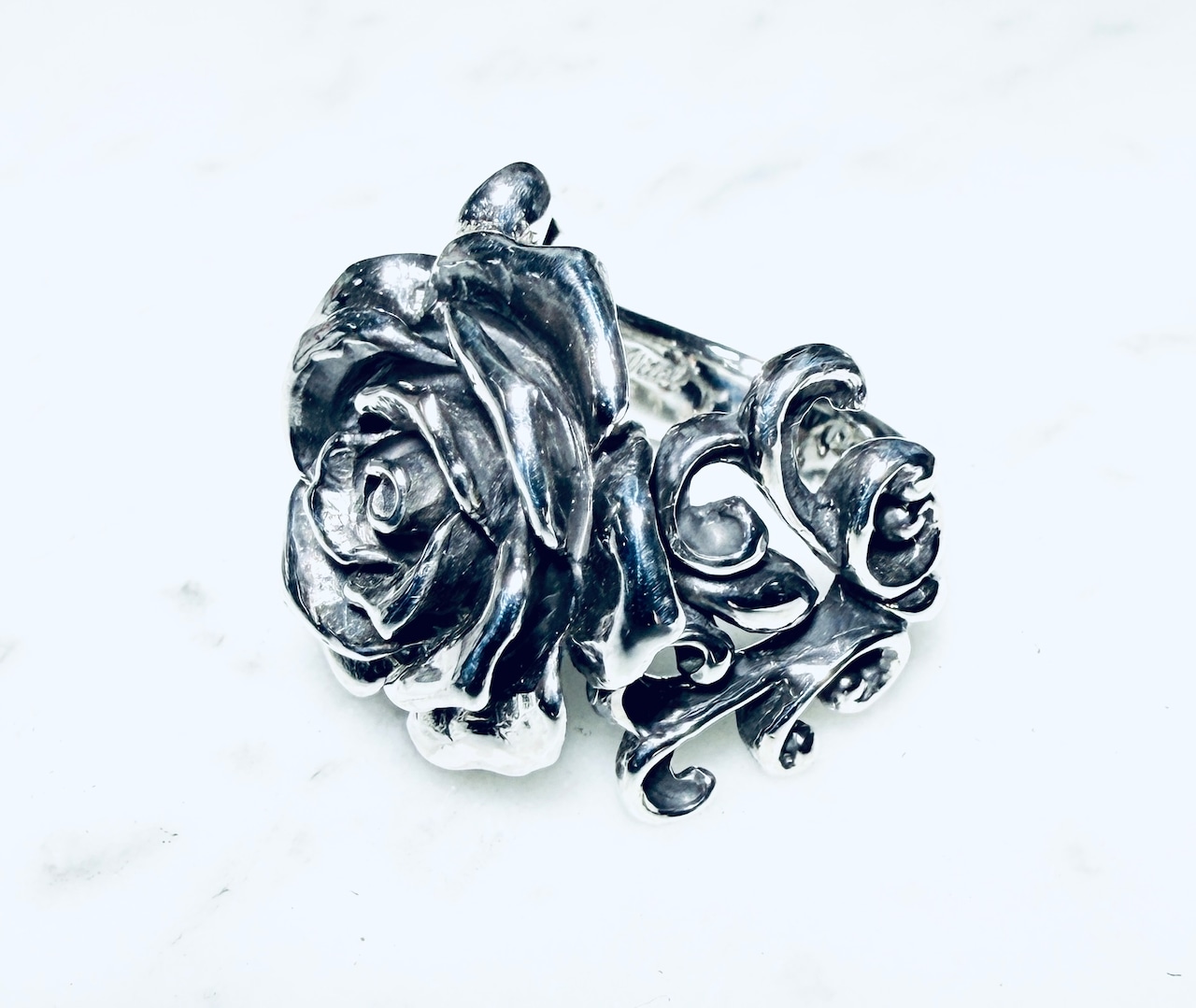 ファッションリングとして存在感ある薔薇のアクセント