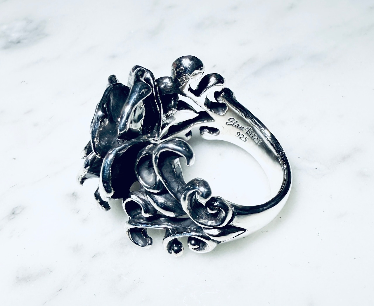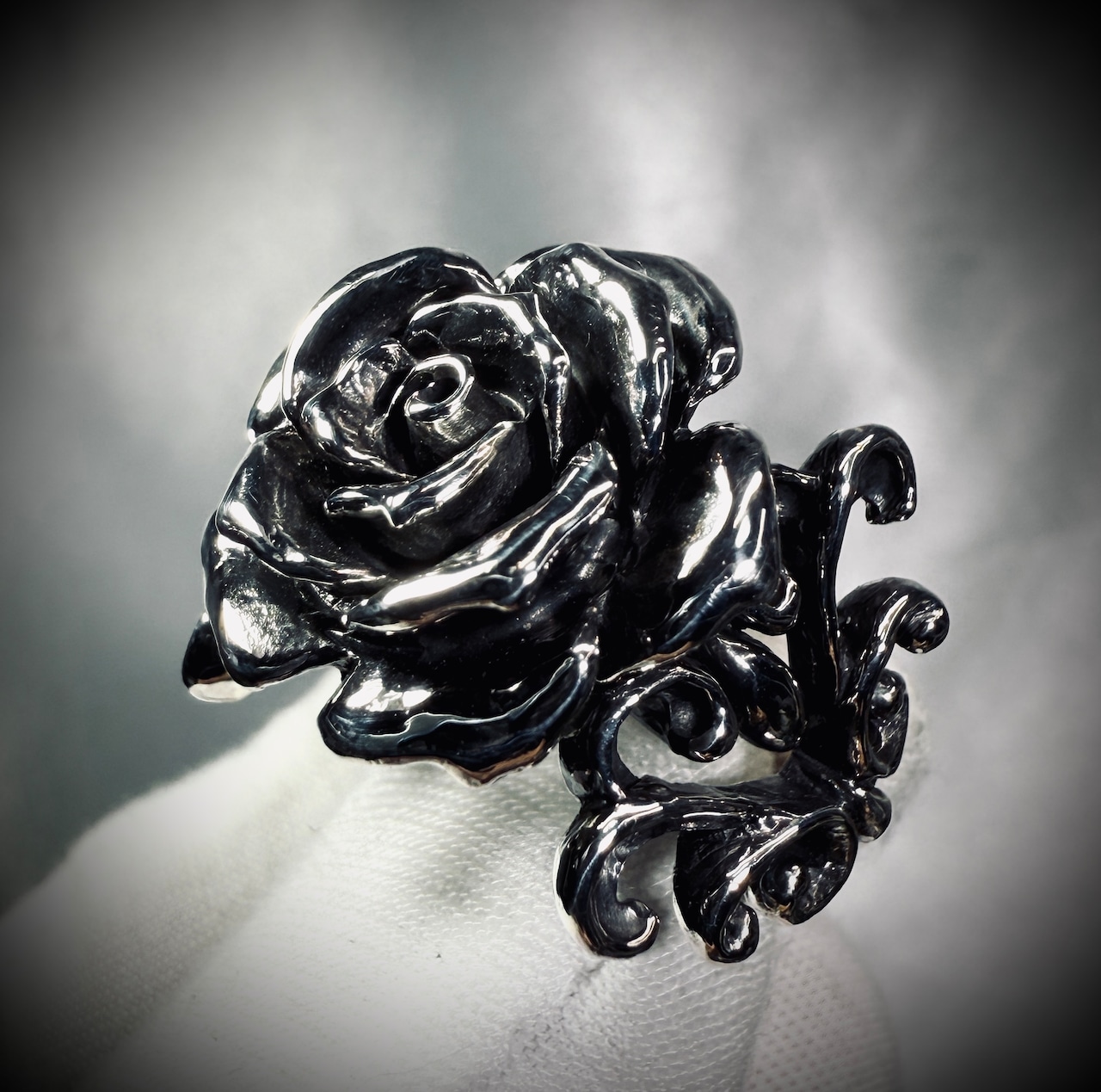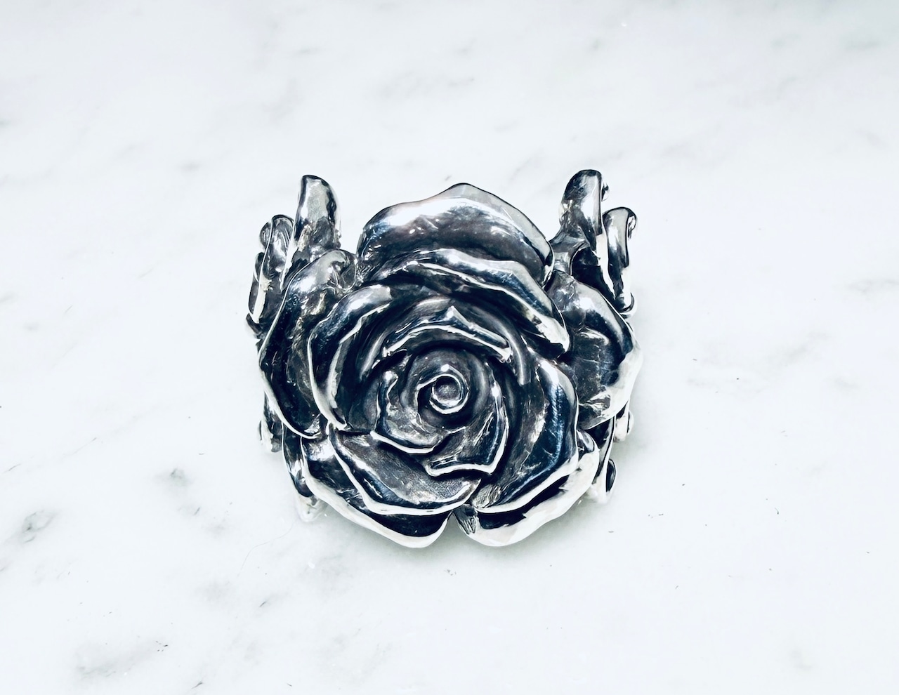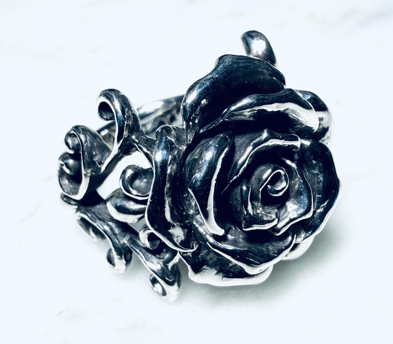 ファッションリングとして存在感ある薔薇のアクセント