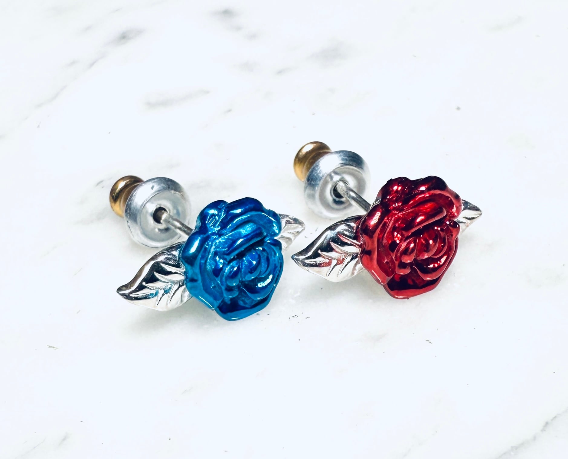☆KIYOの気まぐれ特価品☆ BLUE or RED ローズスタッドピアス 片売り