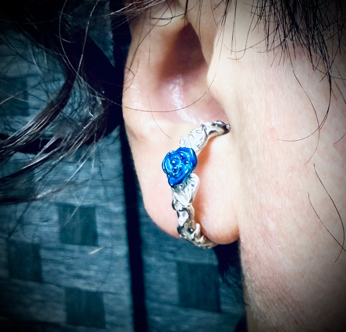 ☆KIYOの気まぐれ特価品☆ BLUE タイニーローズアイヴィーイヤーフープ
