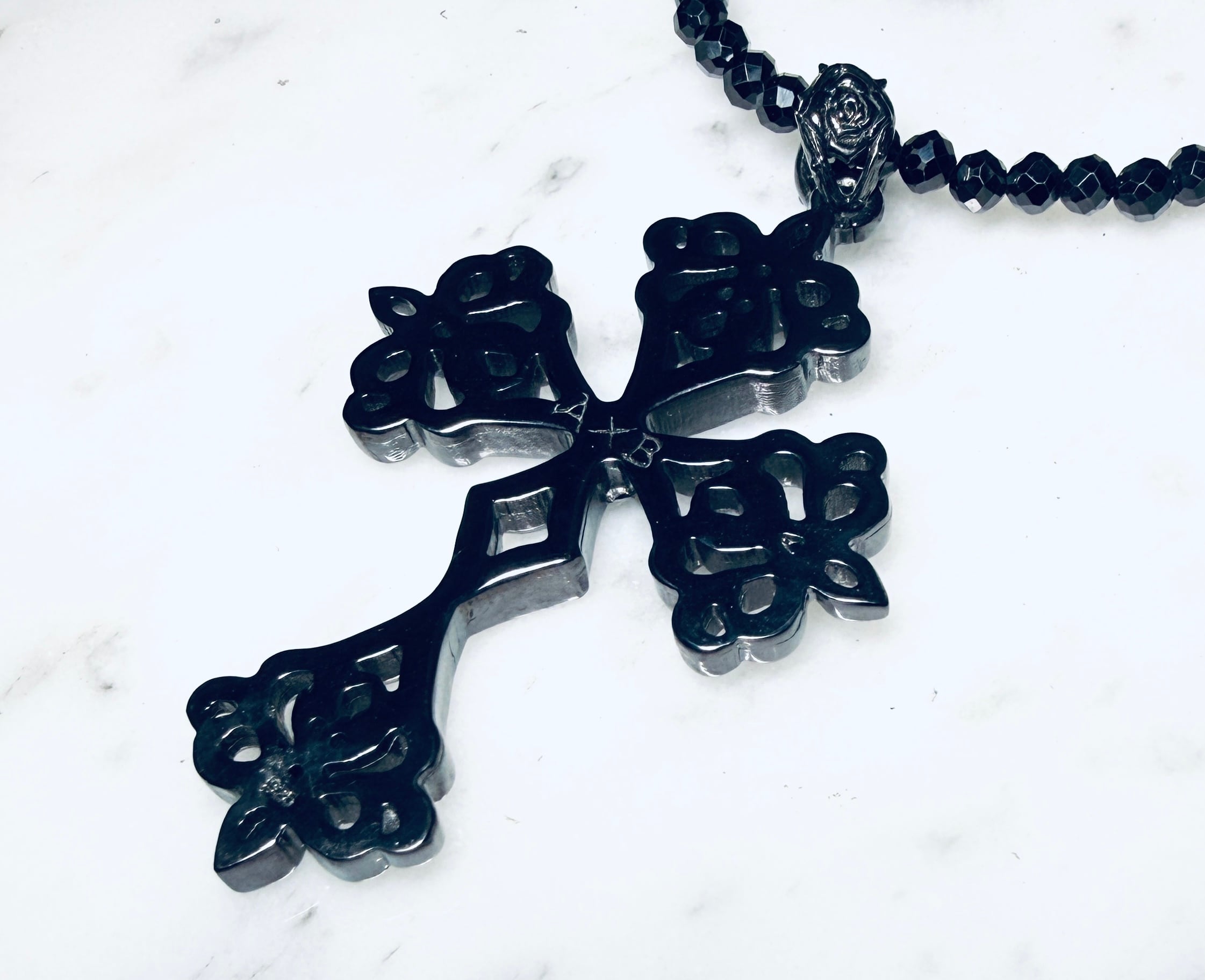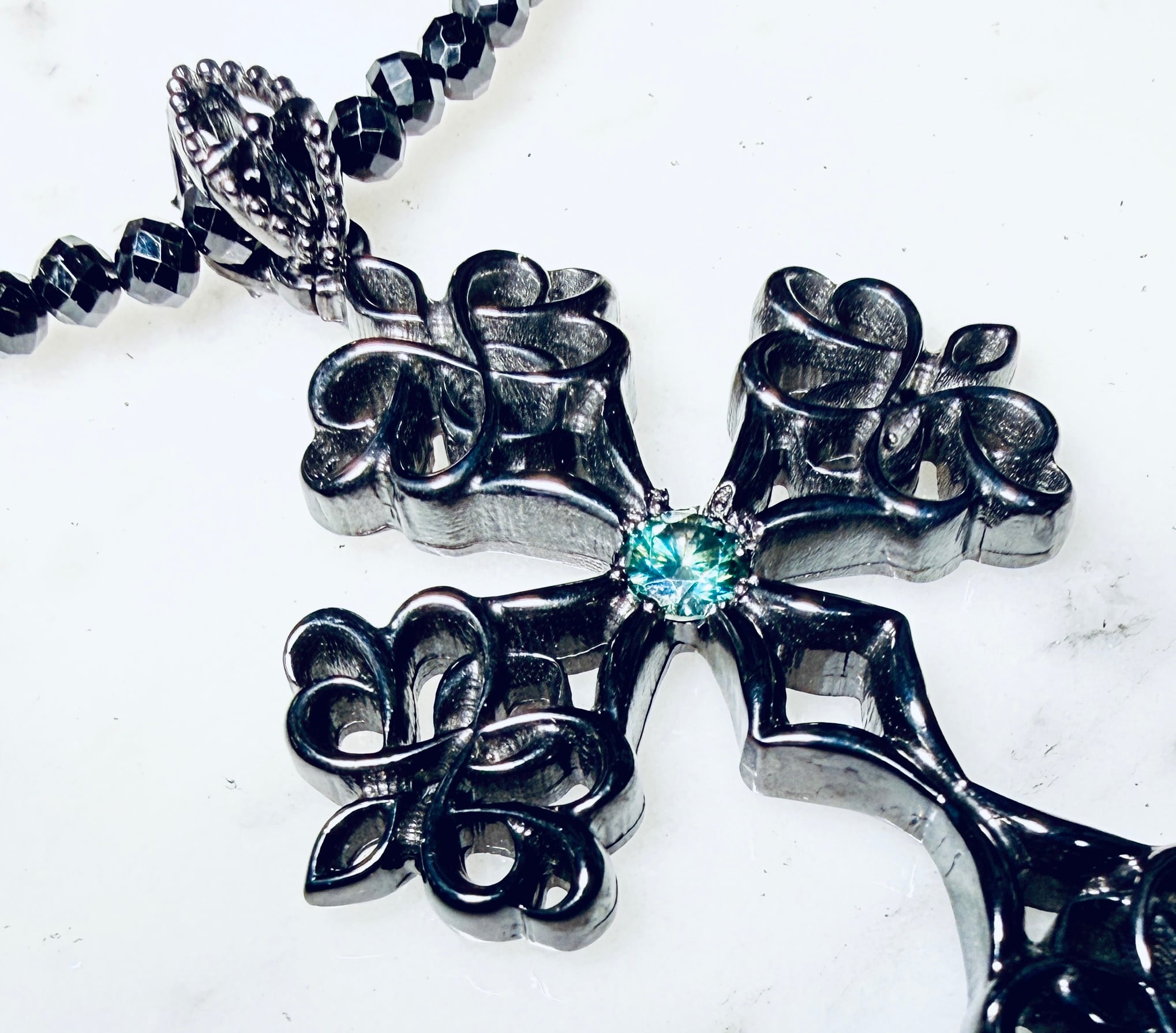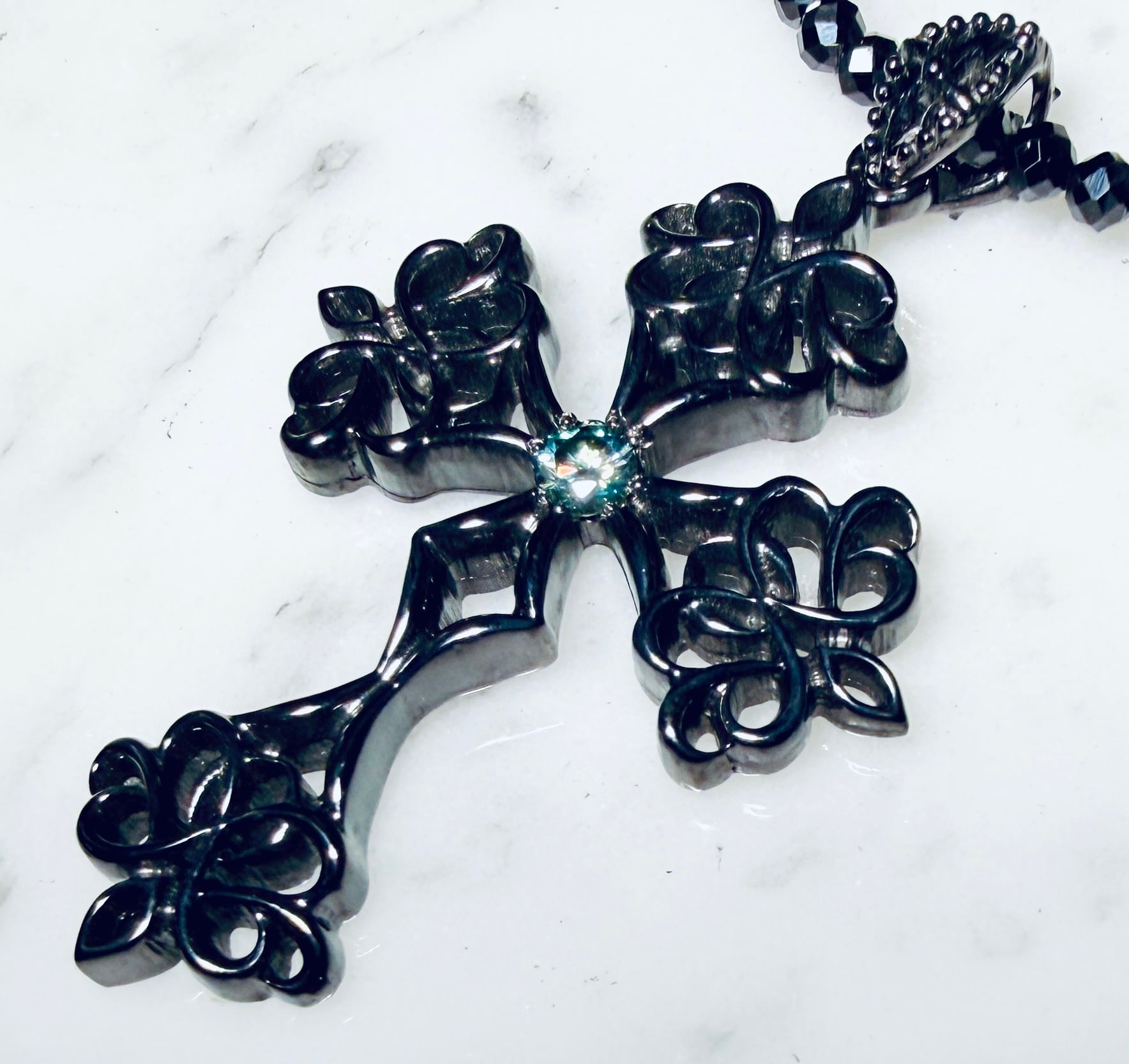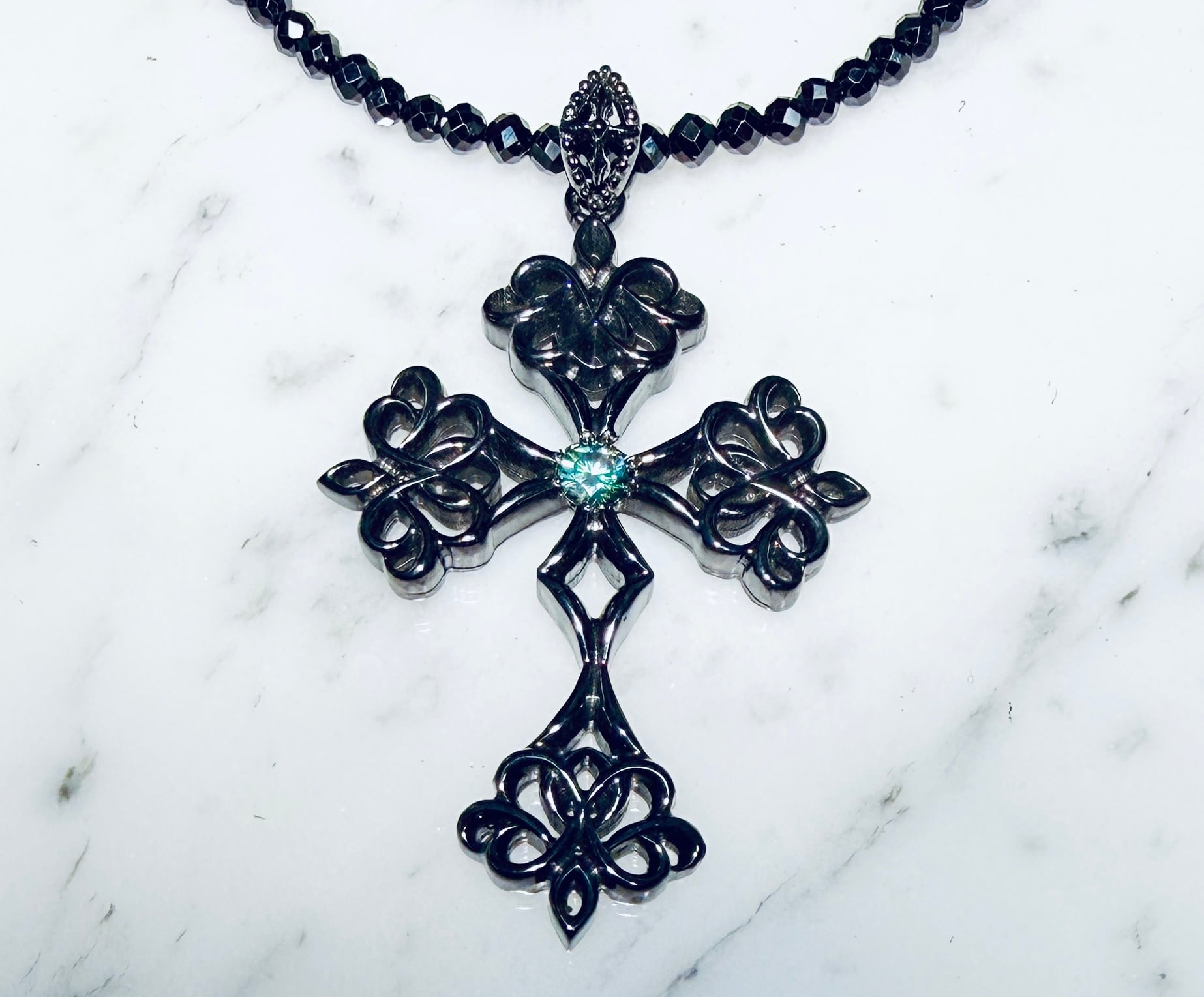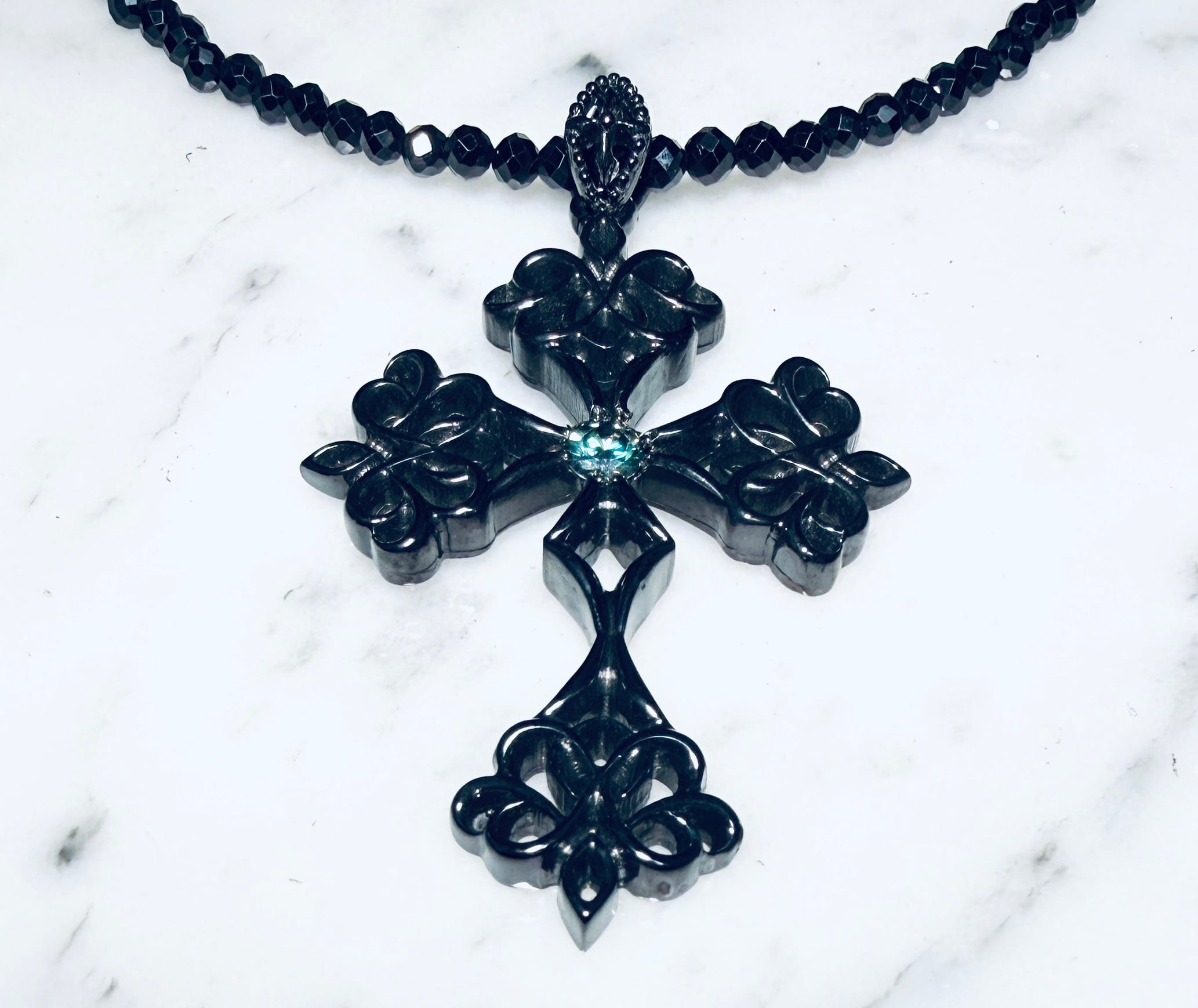 ☆KIYOの気まぐれ1点物☆ BLACK インペリアル クロス ペンダント Ⅰ with モアサナイトBLUE ブラックスピネルチェーン付き!