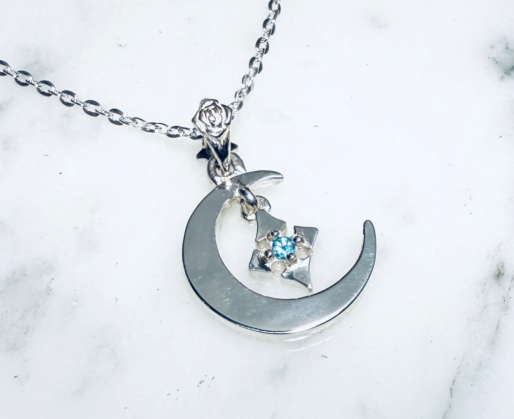 大人気のPure Crossを三日月の中央1箇所にフリフリさせたいシンプルかつ遊び心のあるペンダントです。