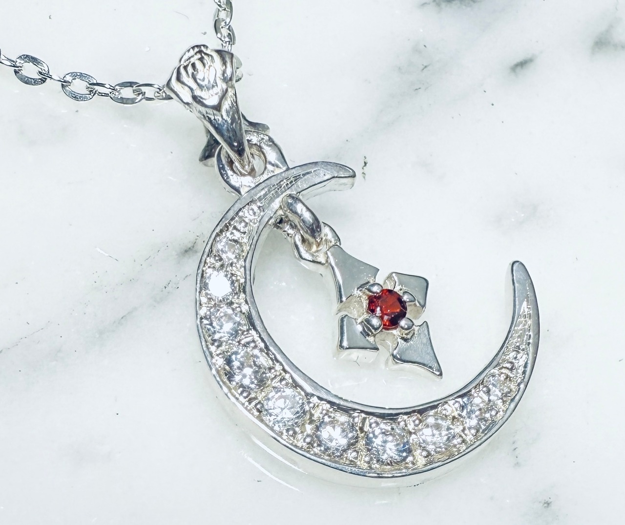 大人気のPure Crossを三日月の中央1箇所にフリフリさせたいシンプルかつ遊び心のあるペンダントです。