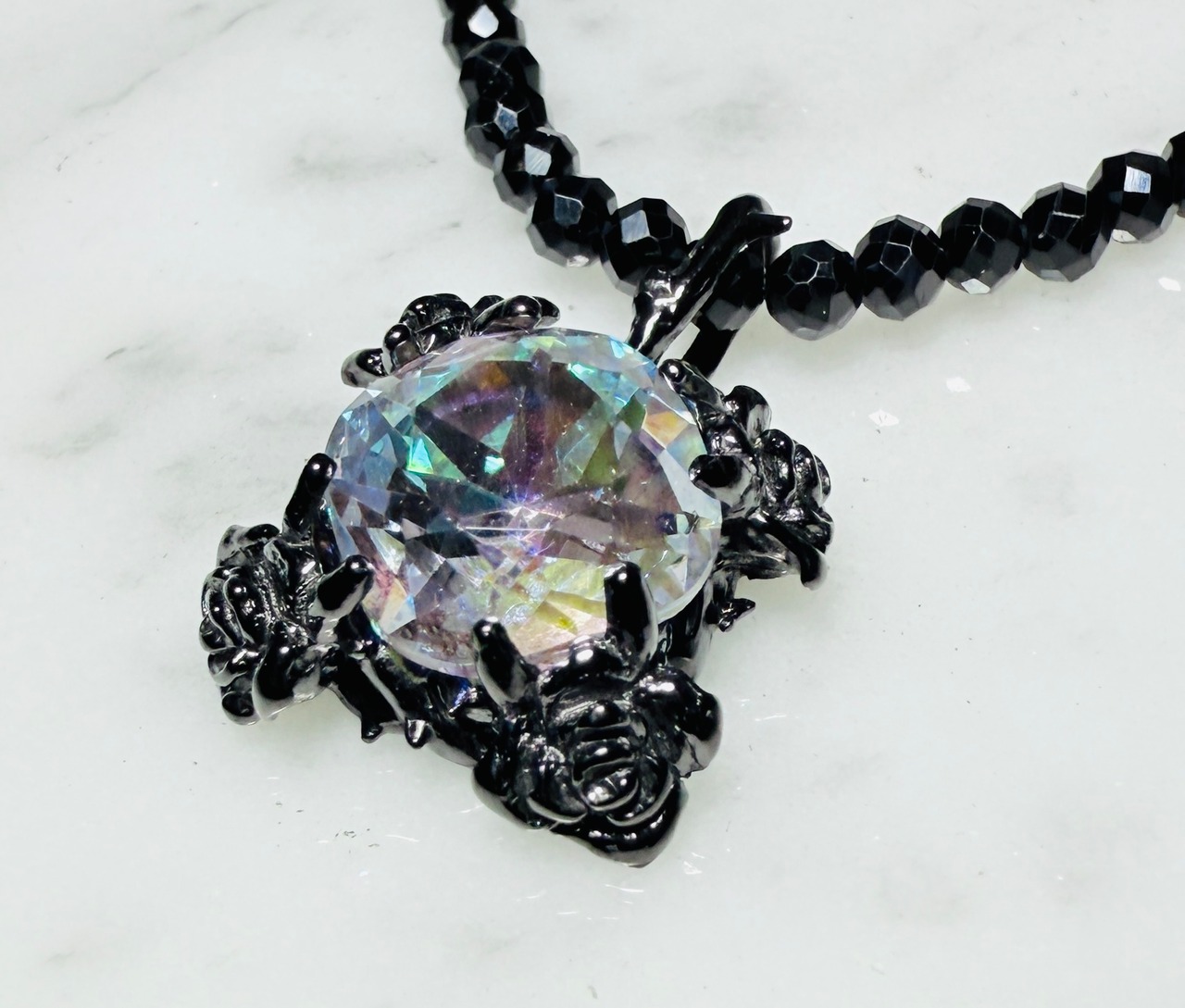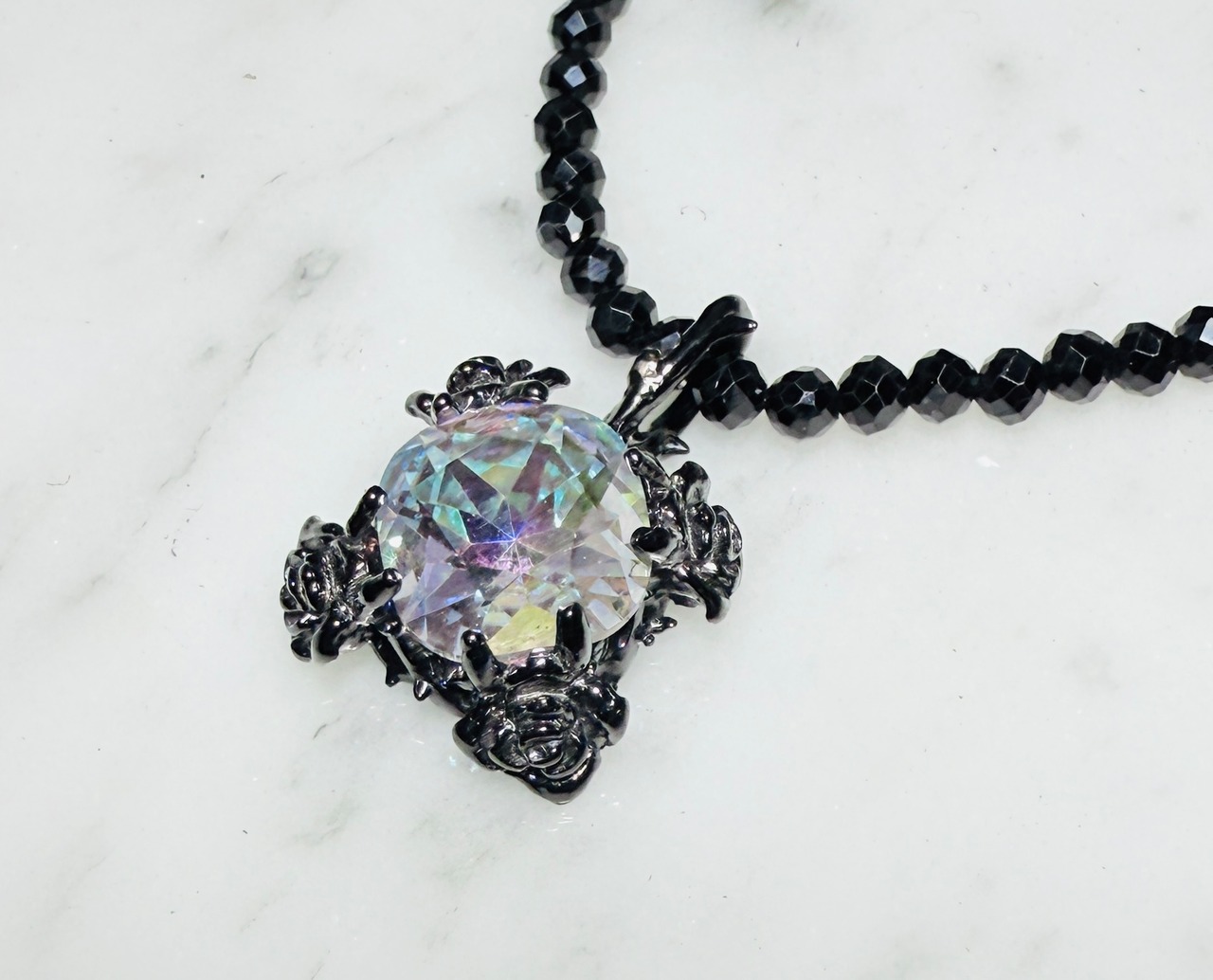☆KIYOの気まぐれ特価品☆ BLACKネオラヴィアンローズペンダント ラベンダーオーロラ