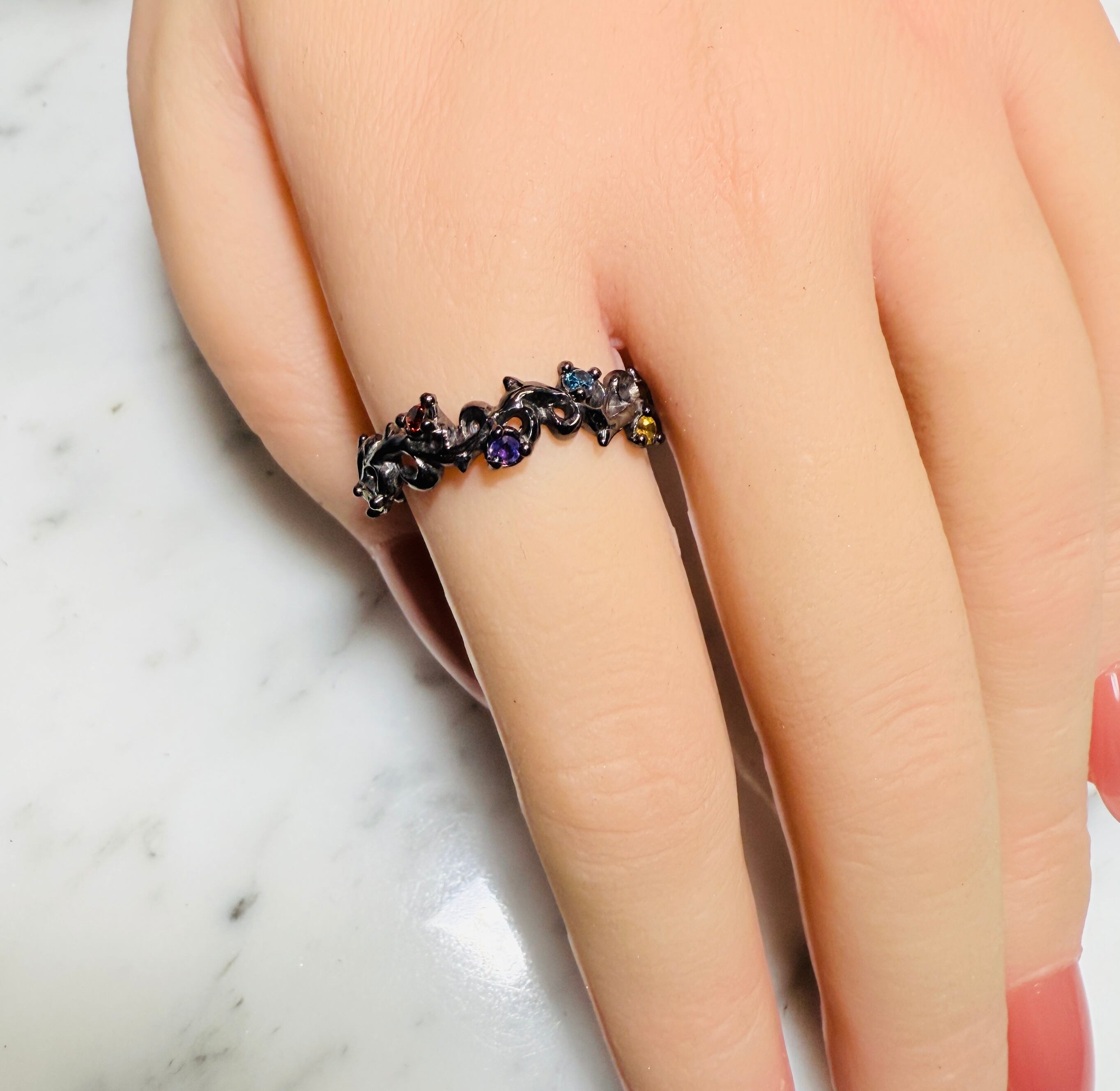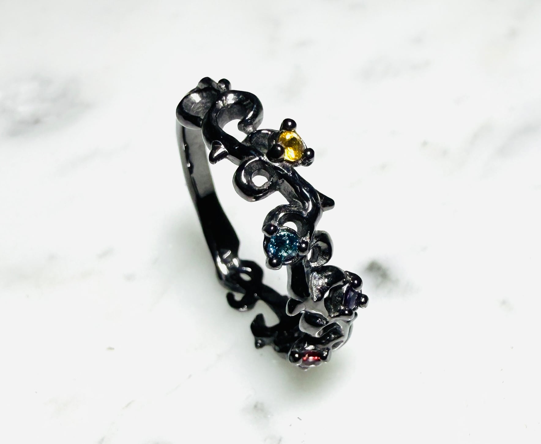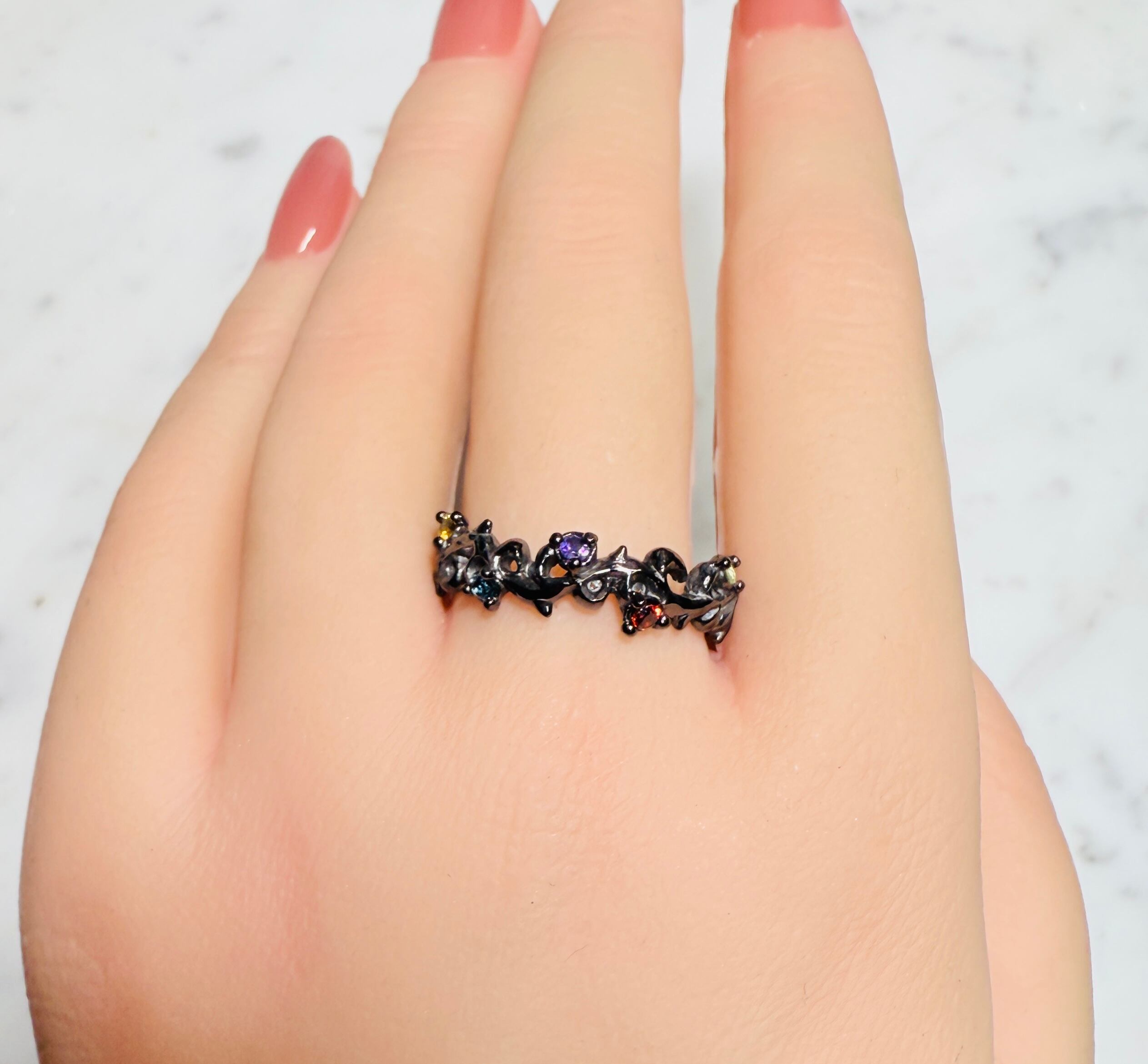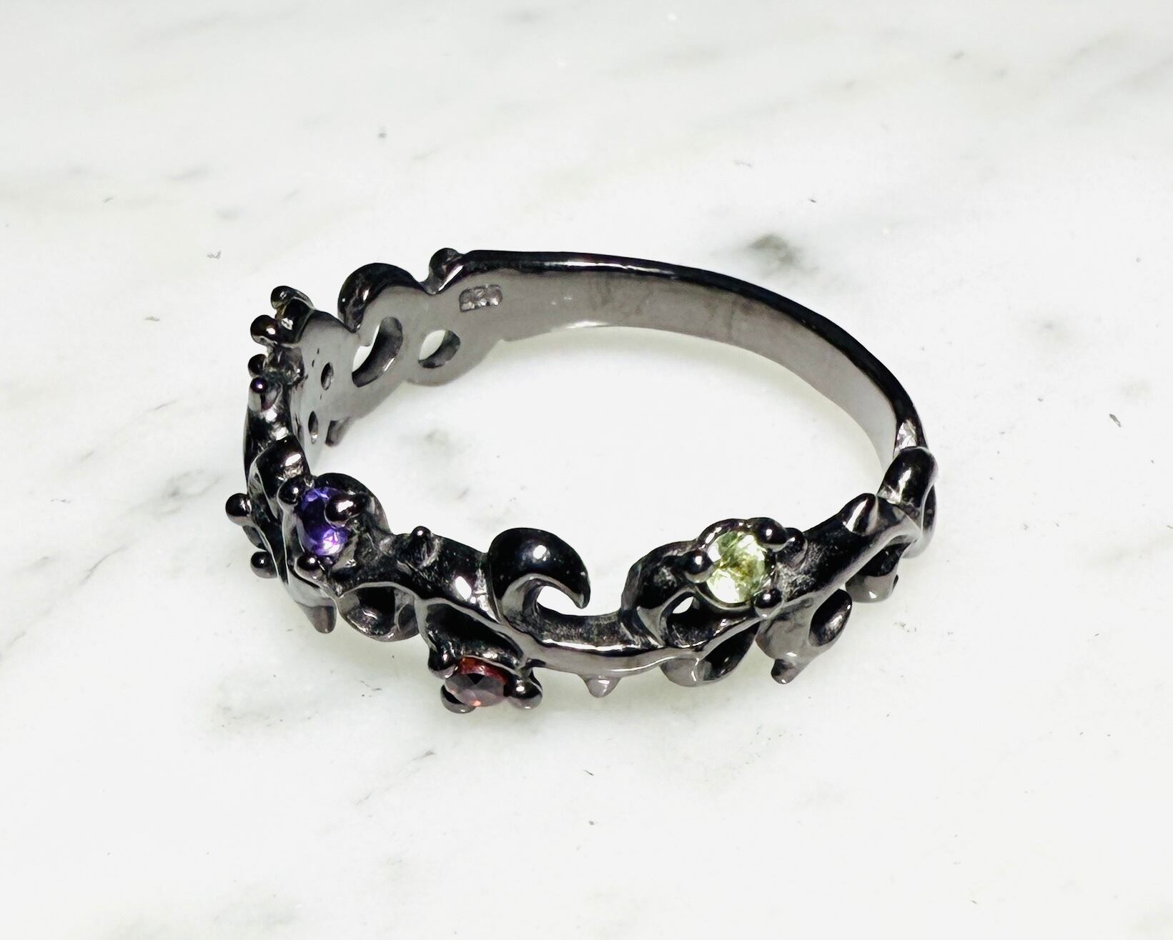 ☆シンデレラサイズ特価品(21号)☆ マルチアイヴィーストーンリング BLACK Special