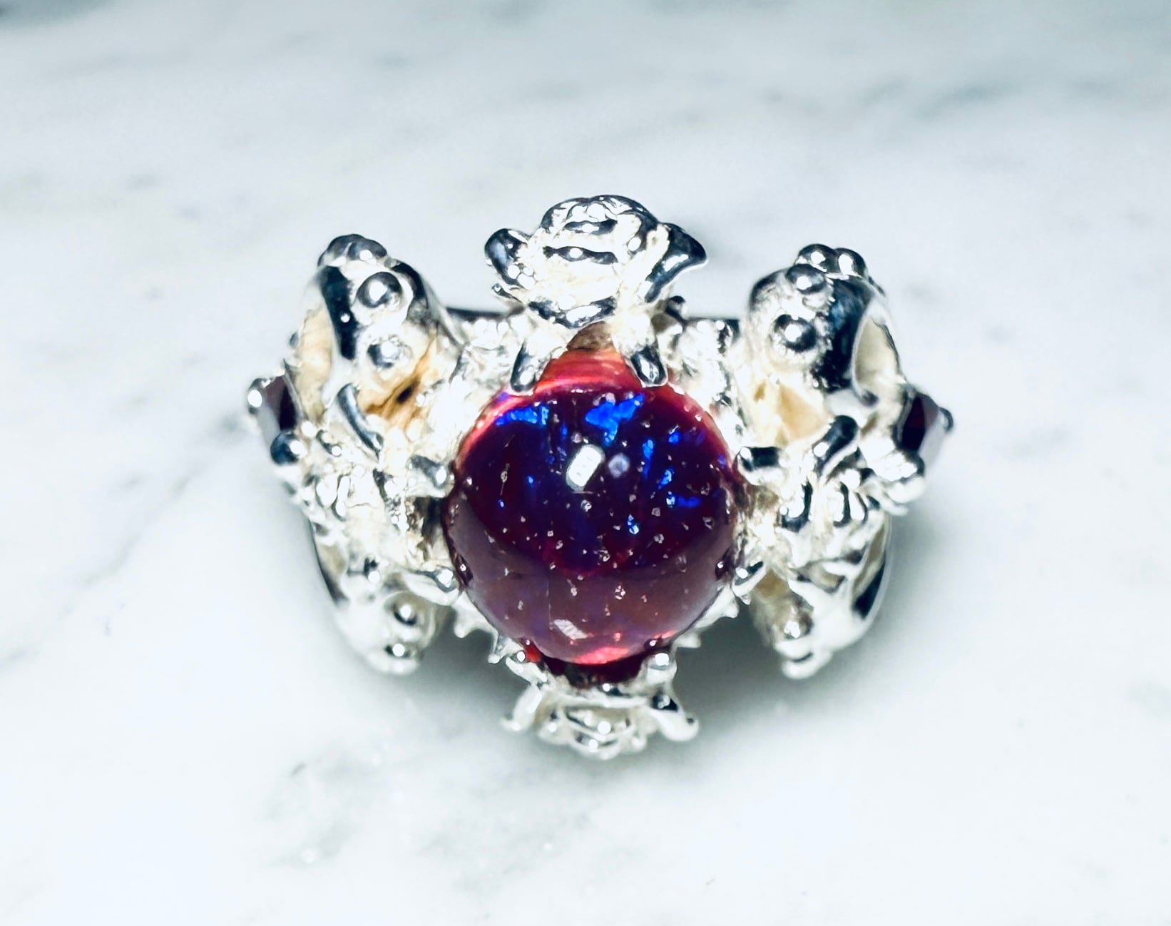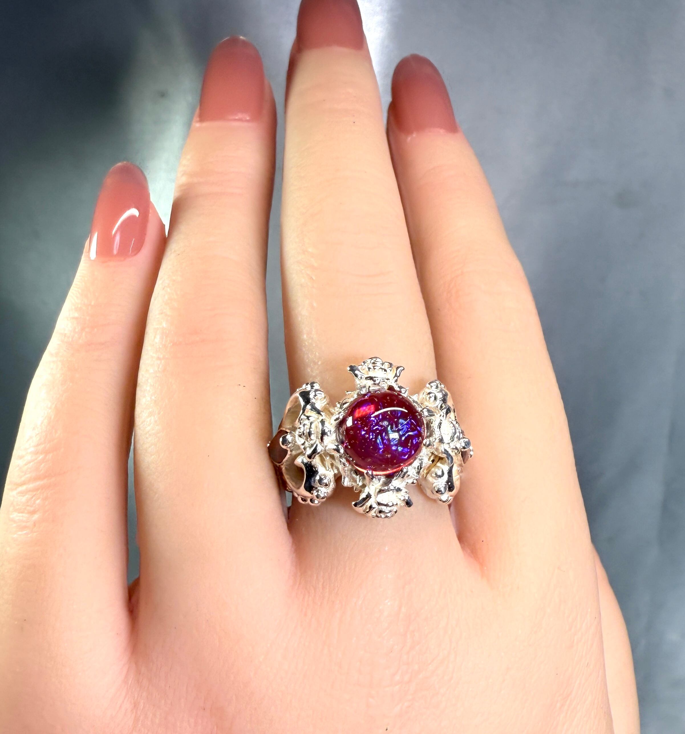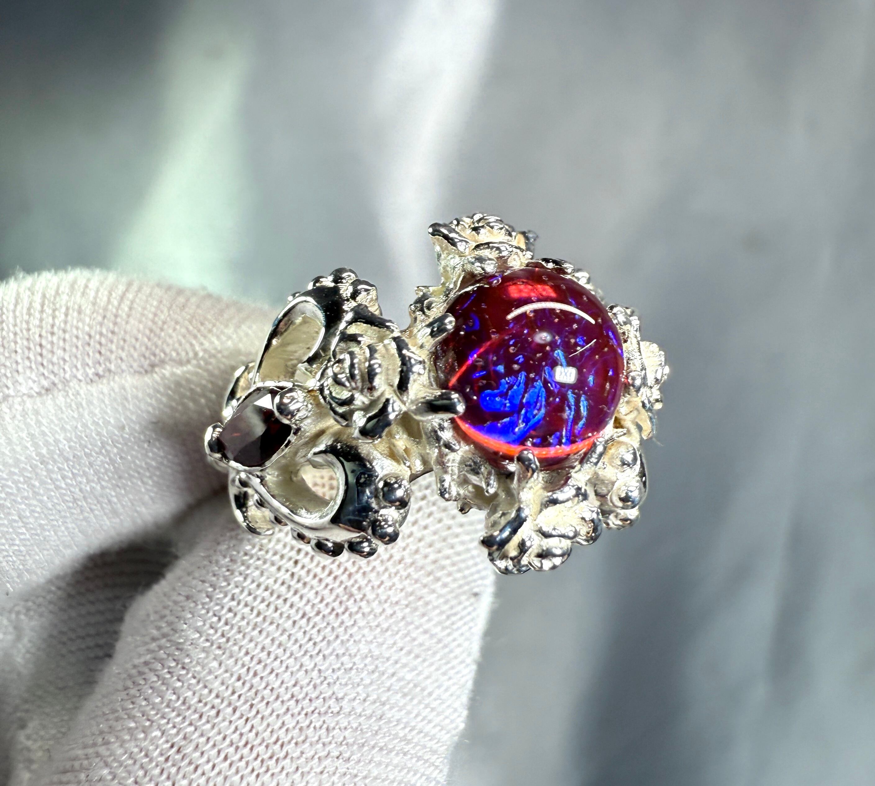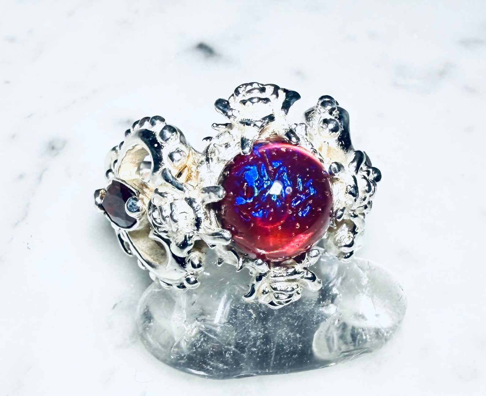 中央の石は、赤の中に妖しげに青が揺らめくドラゴンズブレスを使用して、ガーネットに合わせてみました☆