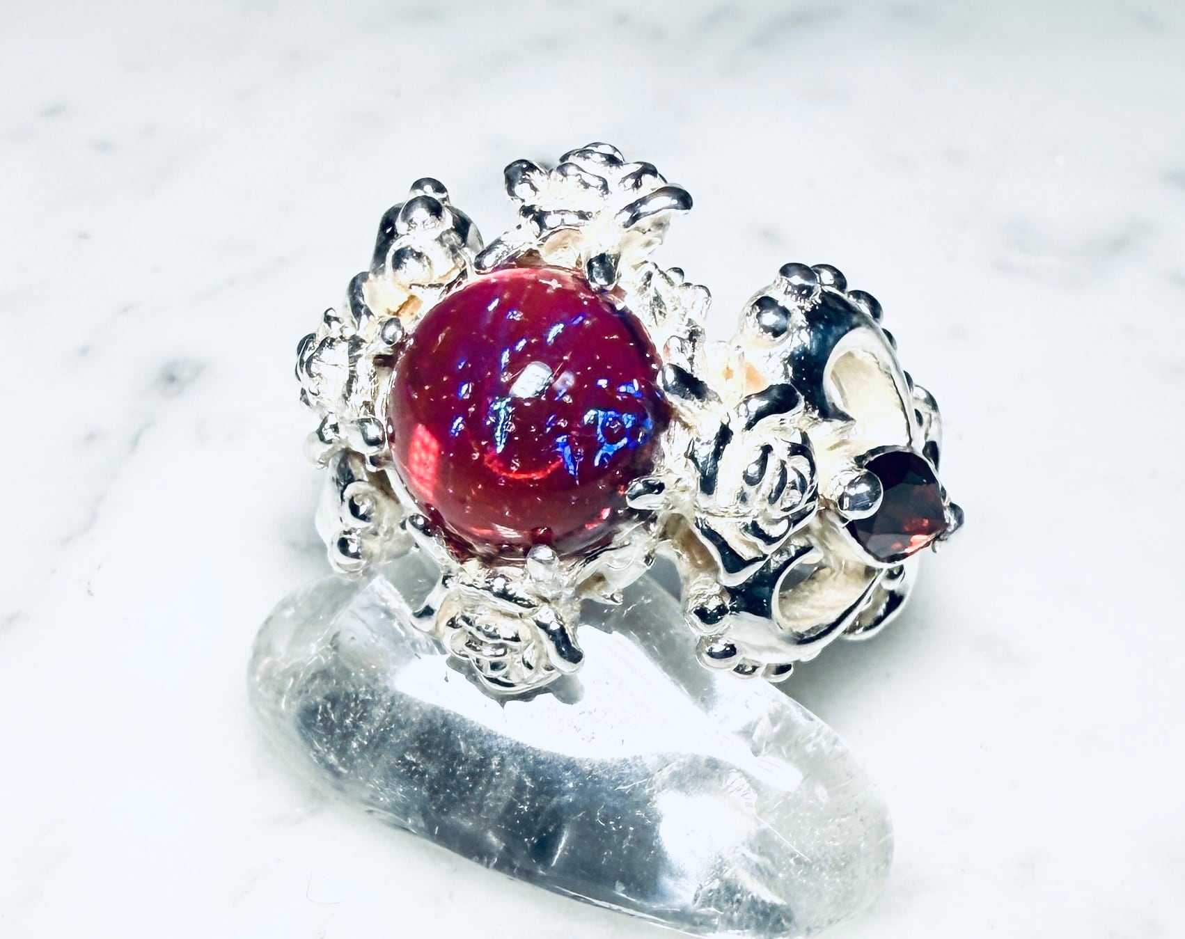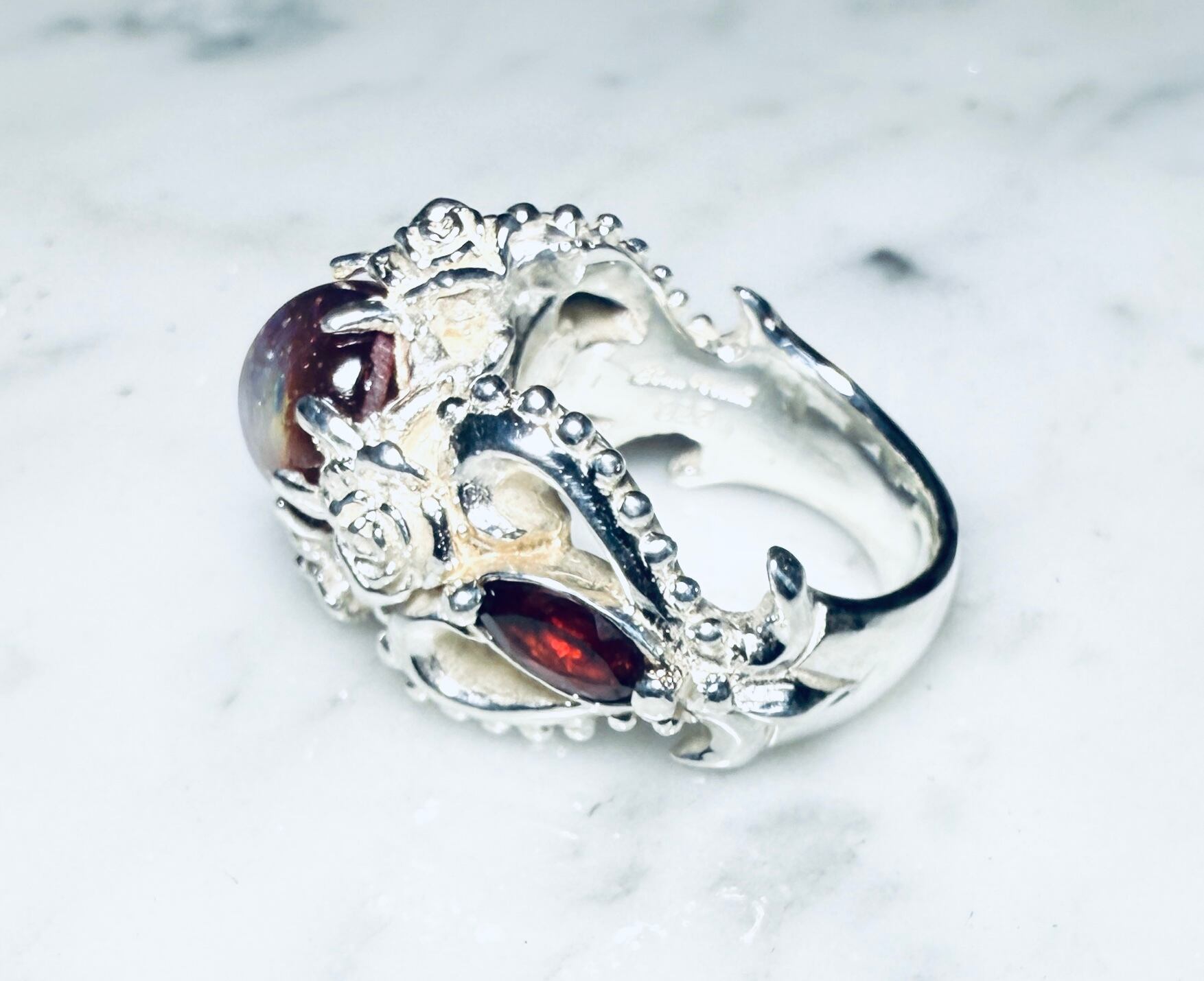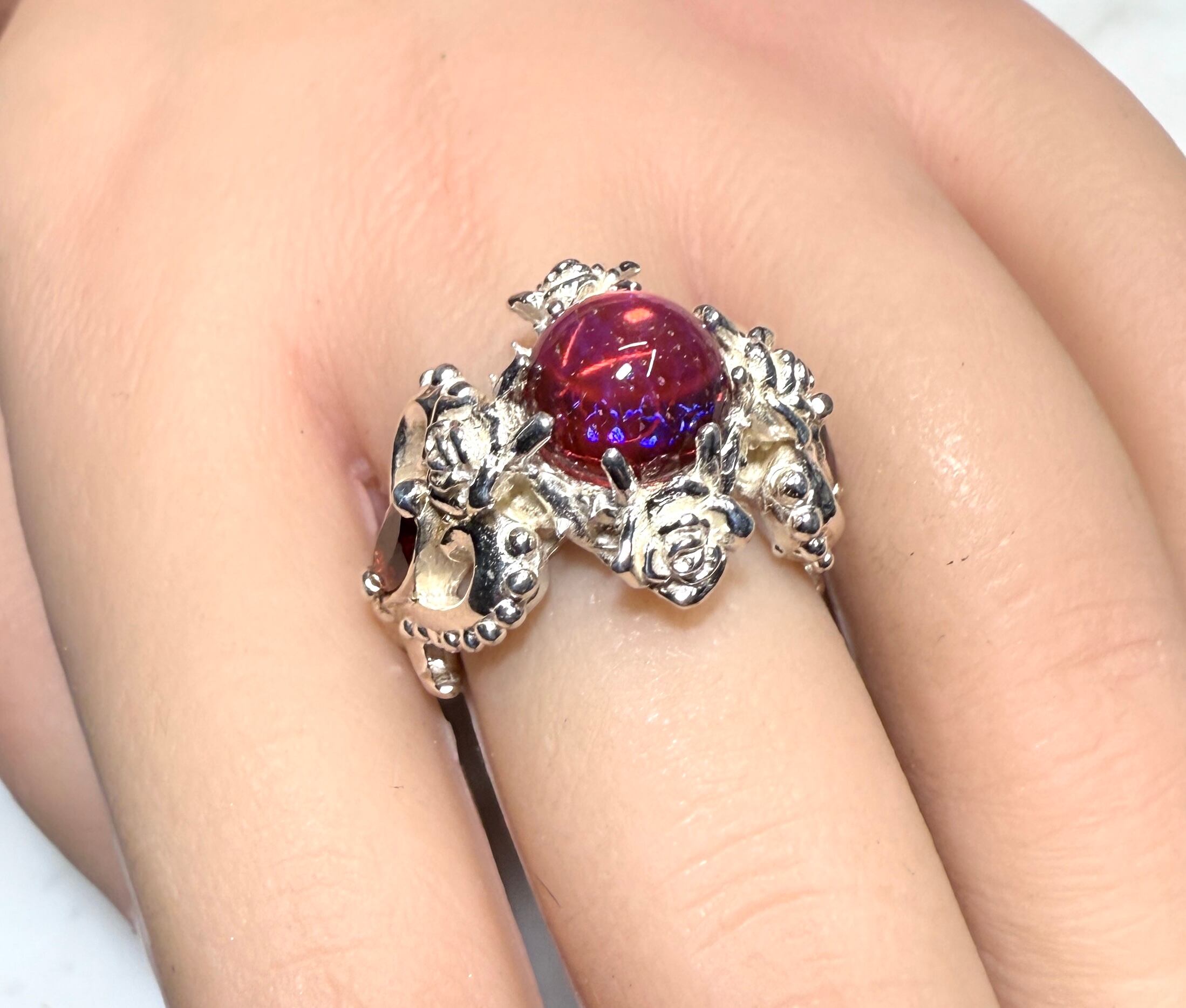中央の石は、赤の中に妖しげに青が揺らめくドラゴンズブレスを使用して、ガーネットに合わせてみました☆