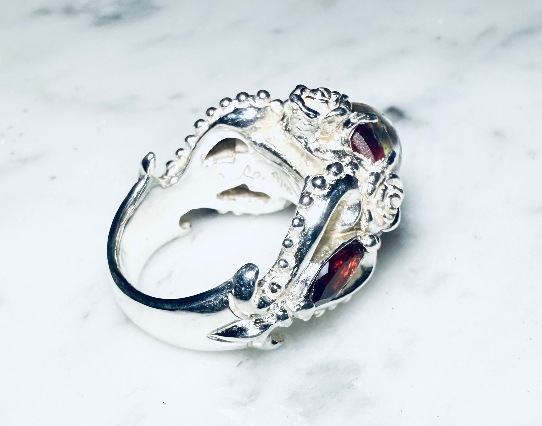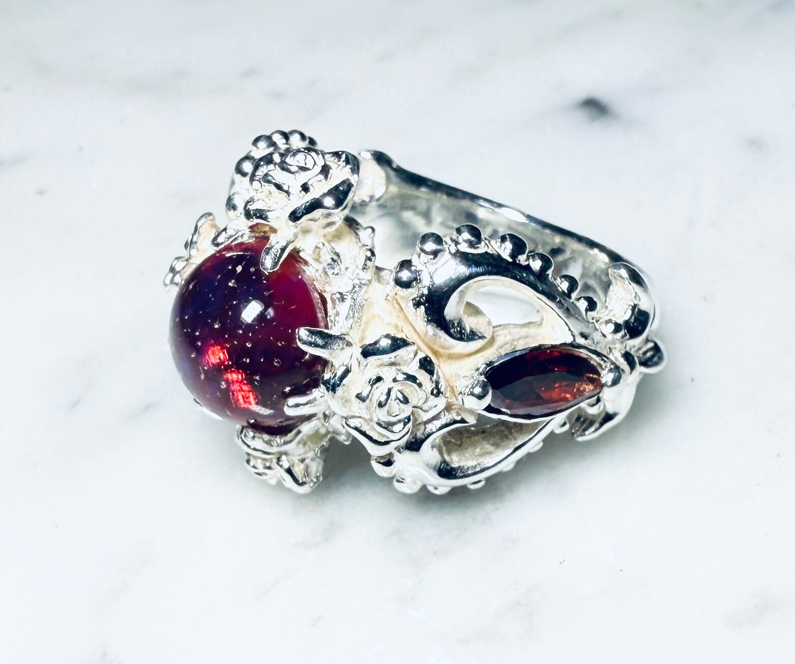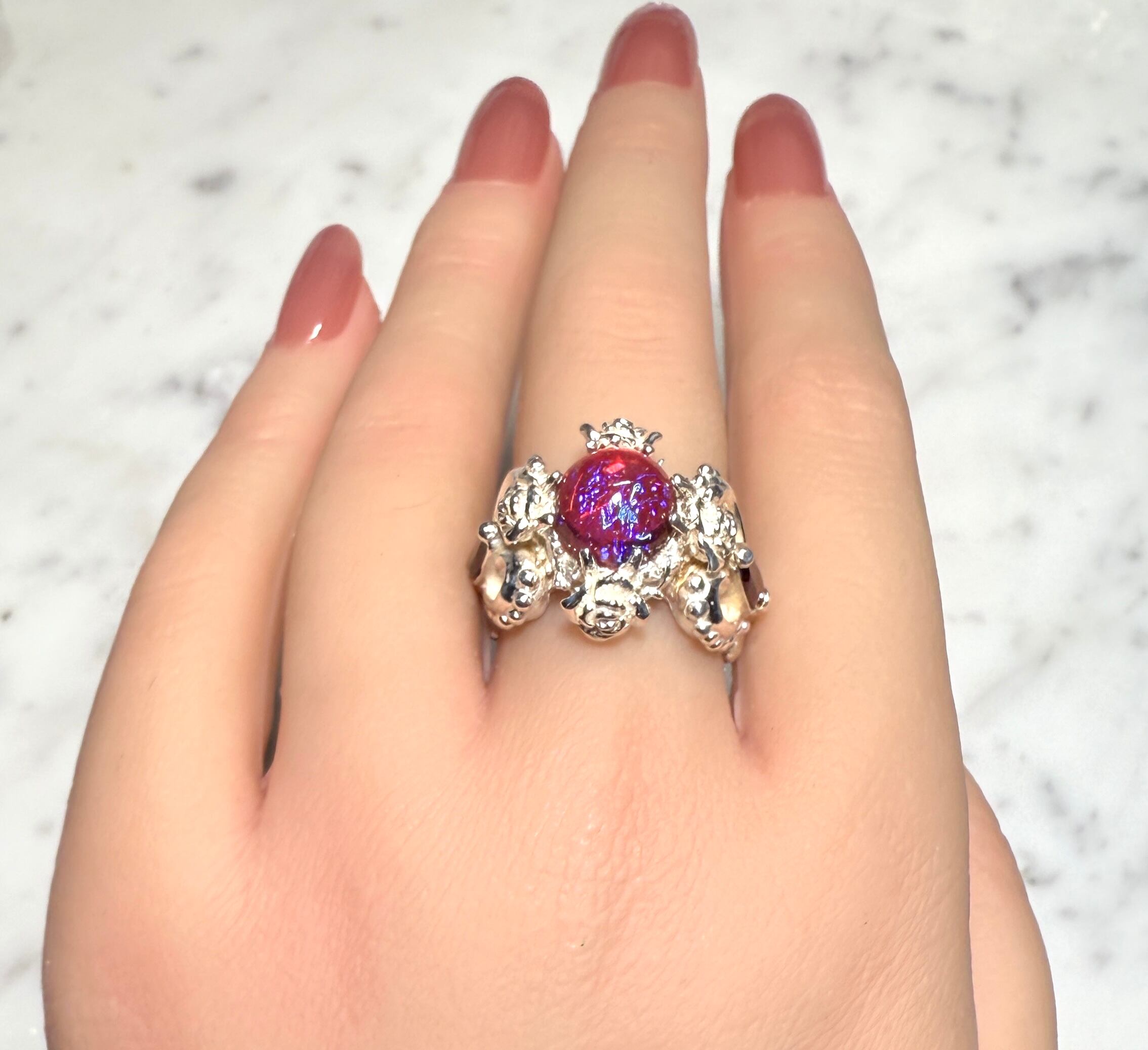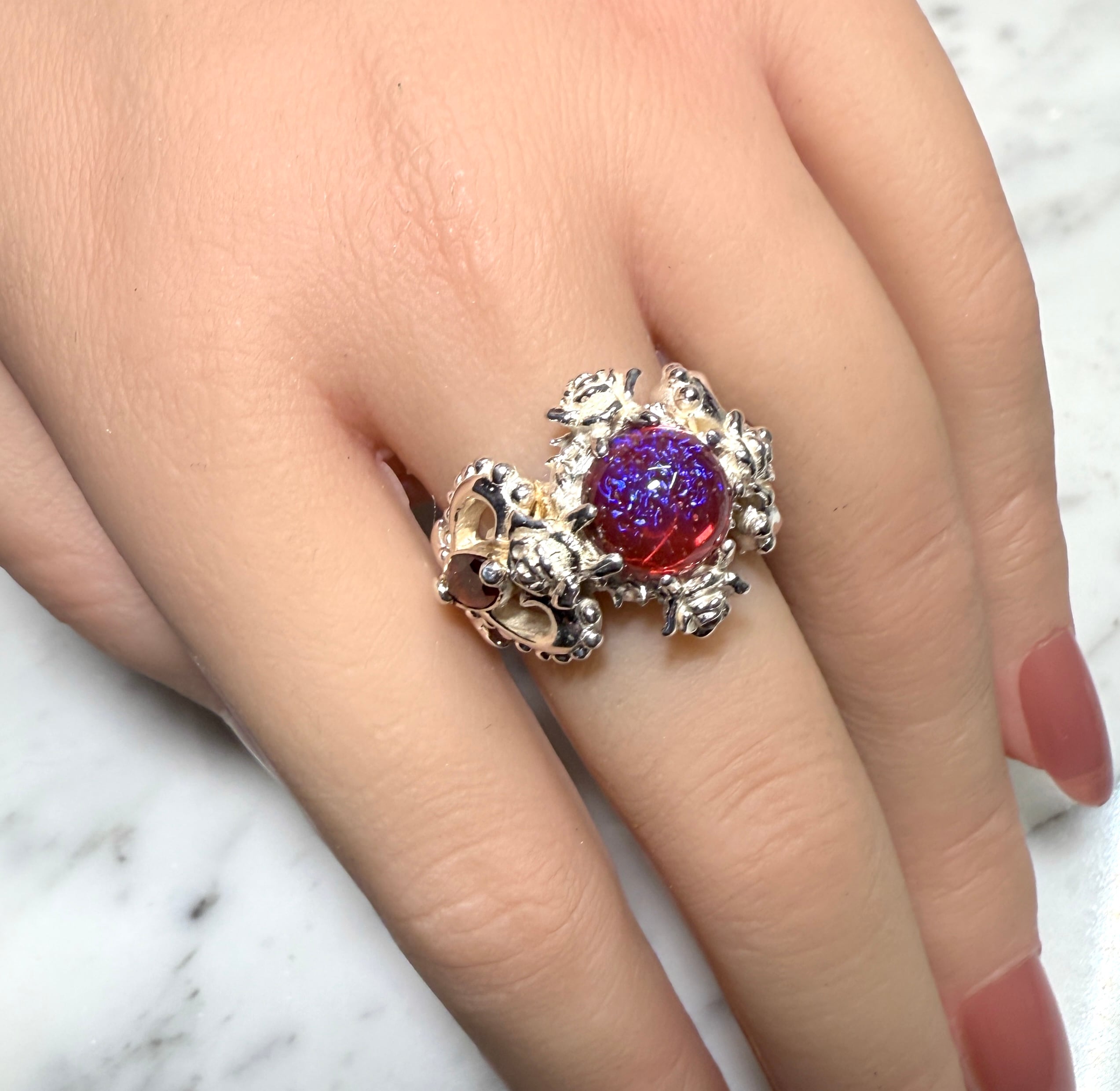中央の石は、赤の中に妖しげに青が揺らめくドラゴンズブレスを使用して、ガーネットに合わせてみました☆
