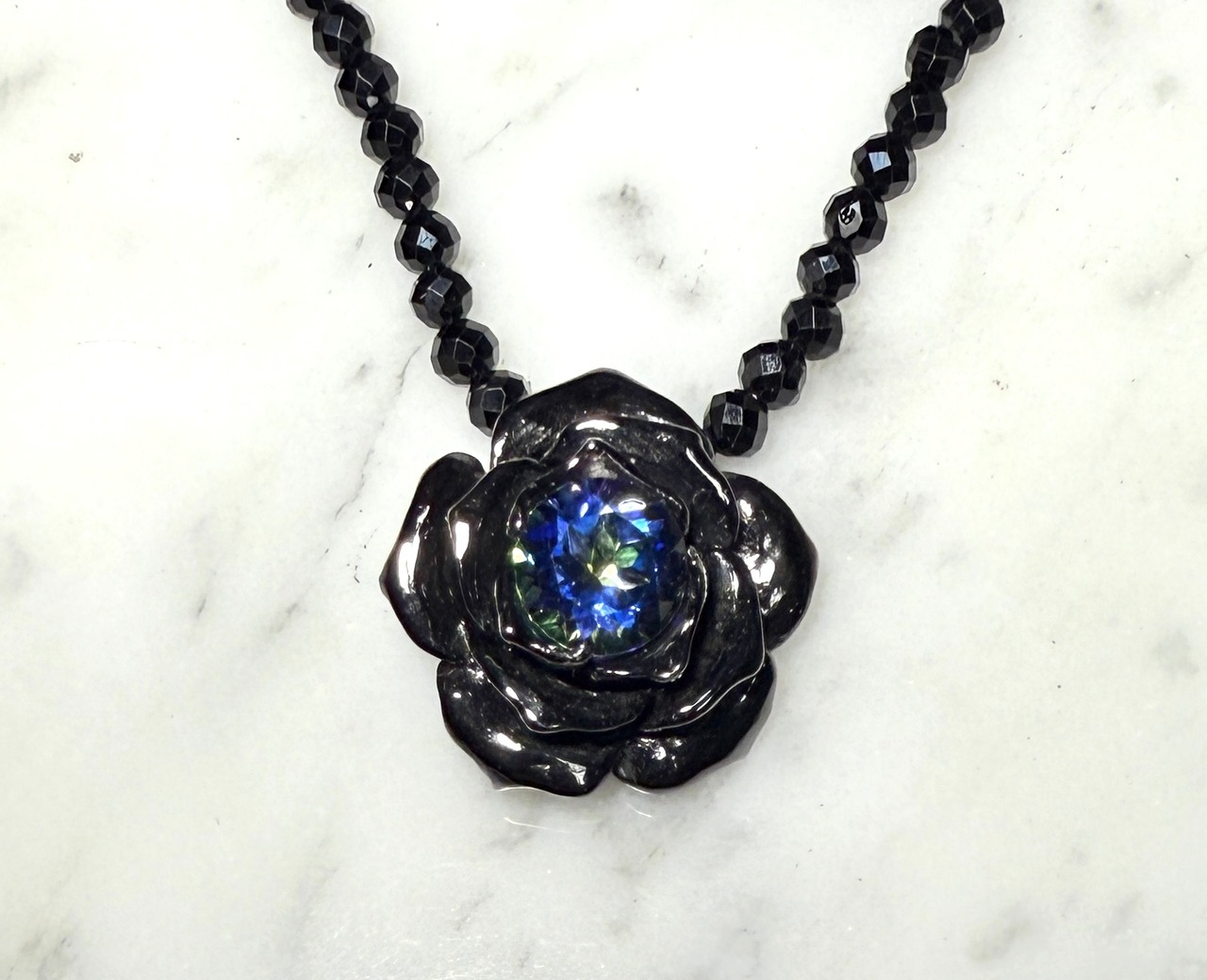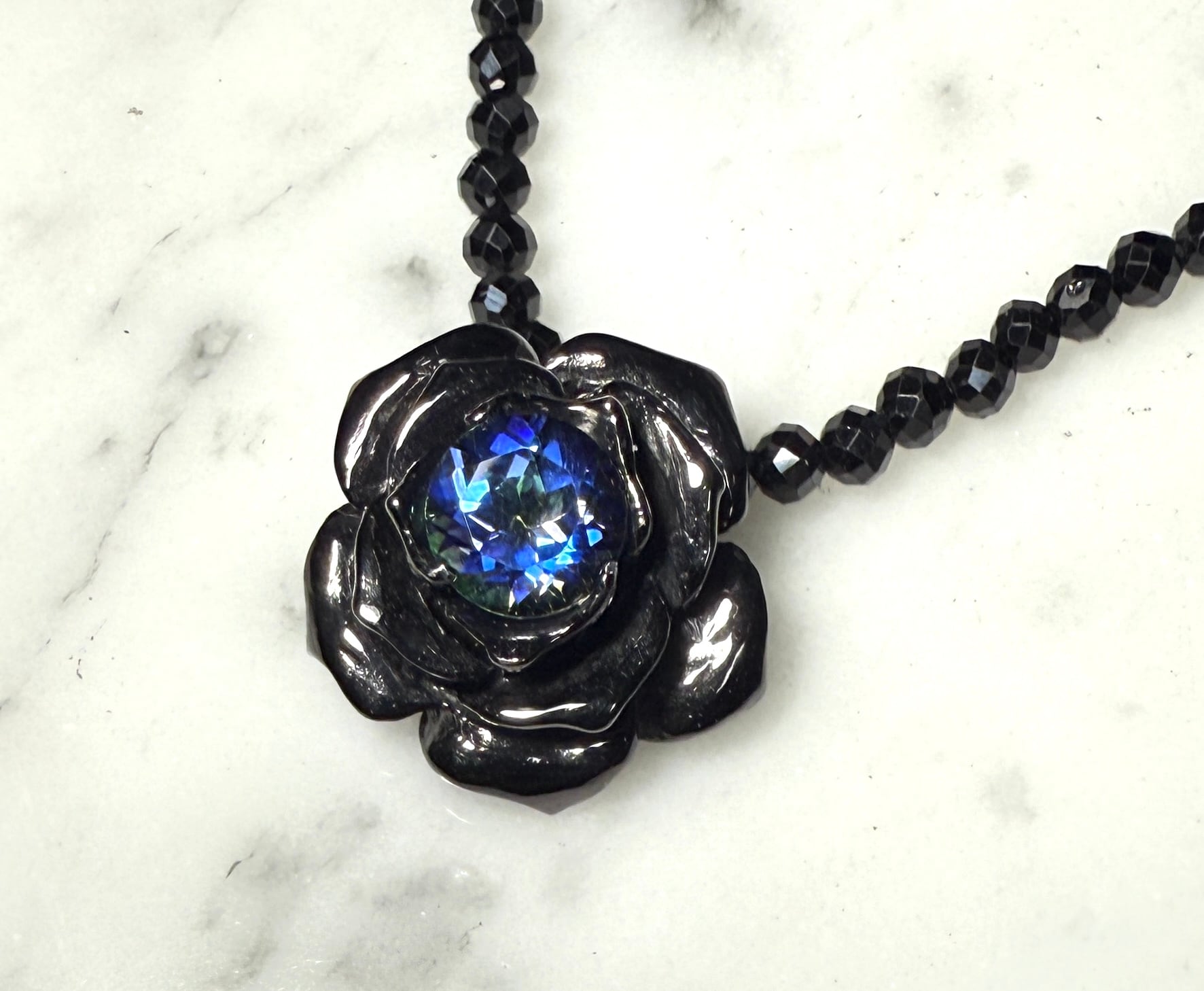 ☆KIYOの気まぐれ特価品☆「Garniture Rose」Pendant BLACK/ミスティックトパーズ(青系)