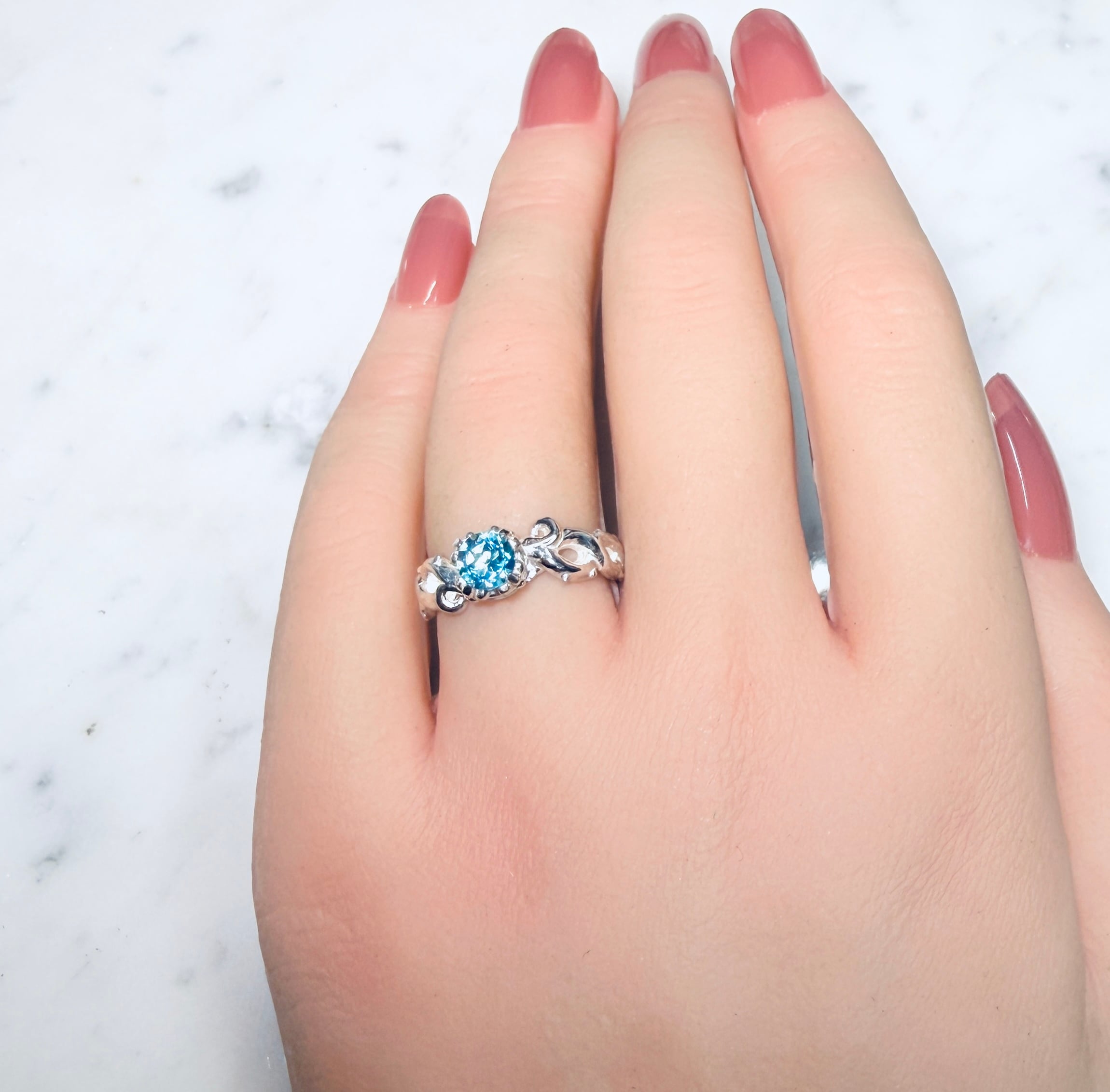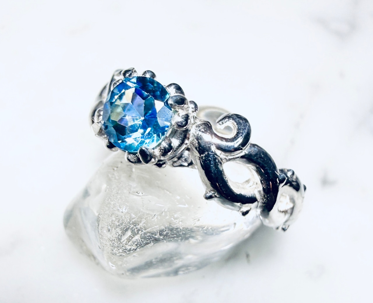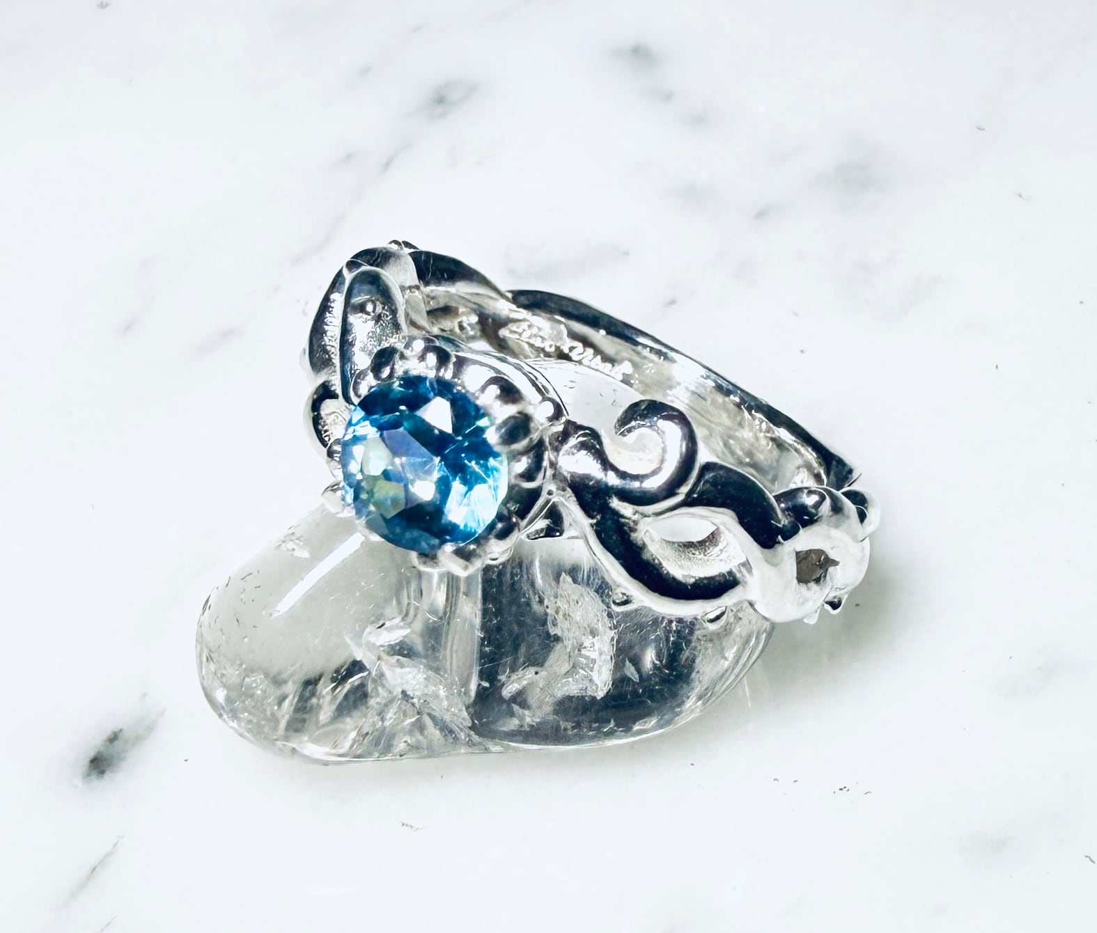 今回は、シンデレラサイズ特価品としてKIYOの気まぐれで、水色系の特殊加工のトパーズを9号白仕上げで