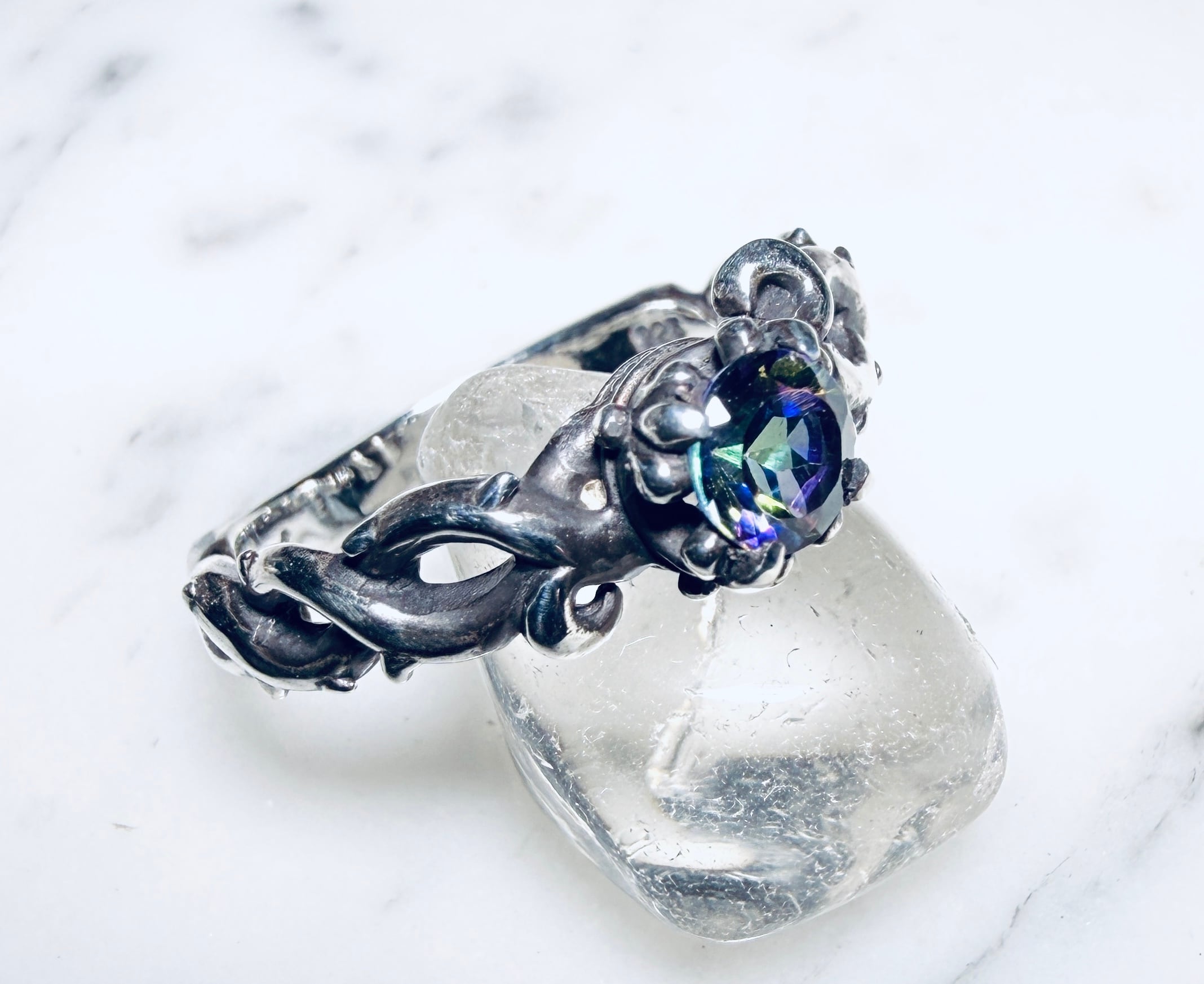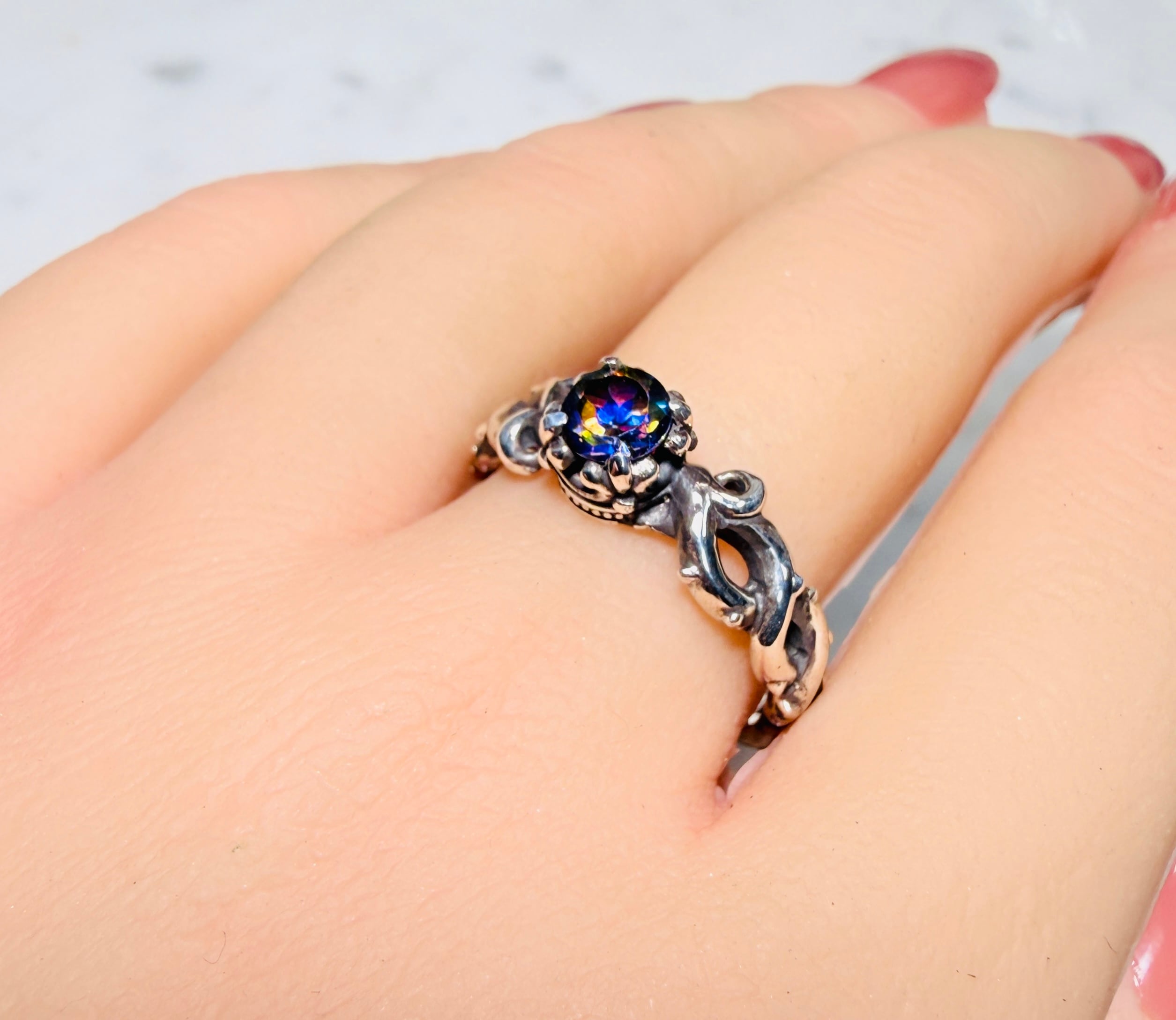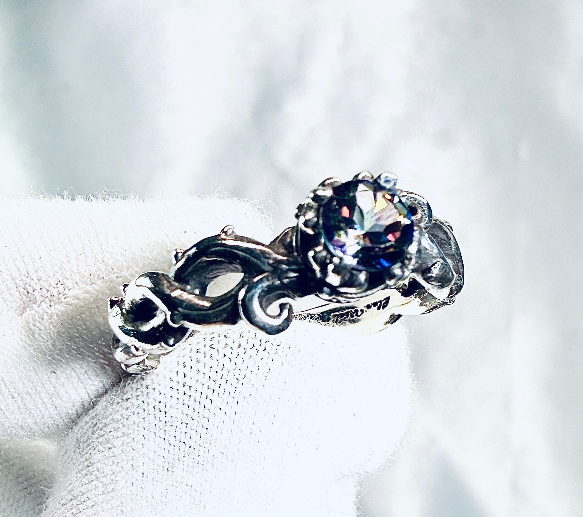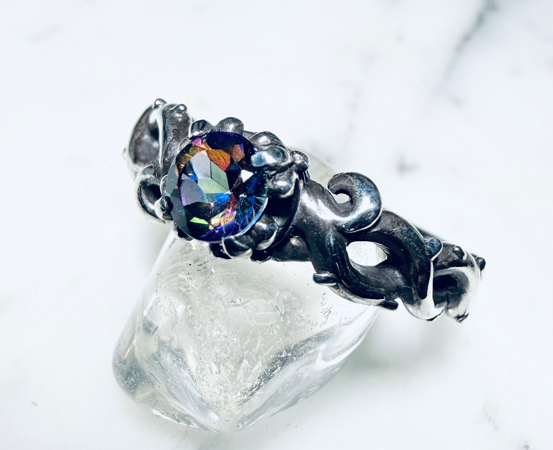 トパーズに特殊な加工を施して、ダークパープル系の中に角度でや様々な色がが見え隠れする、宇宙を感じさせる初めて使う色で妖しげに輝きます☆