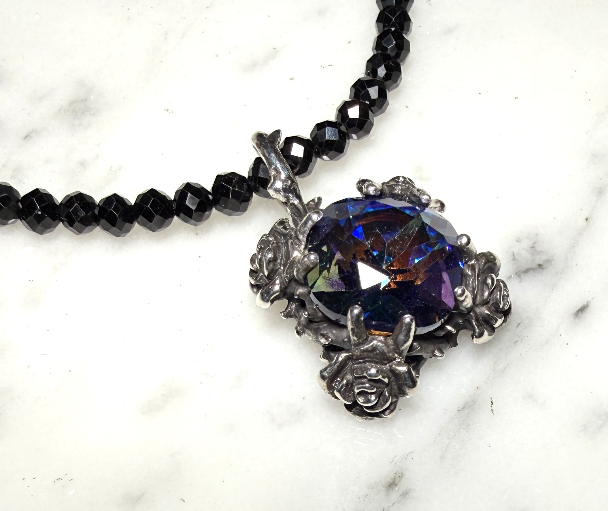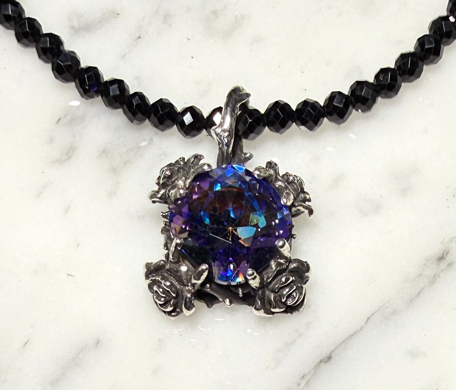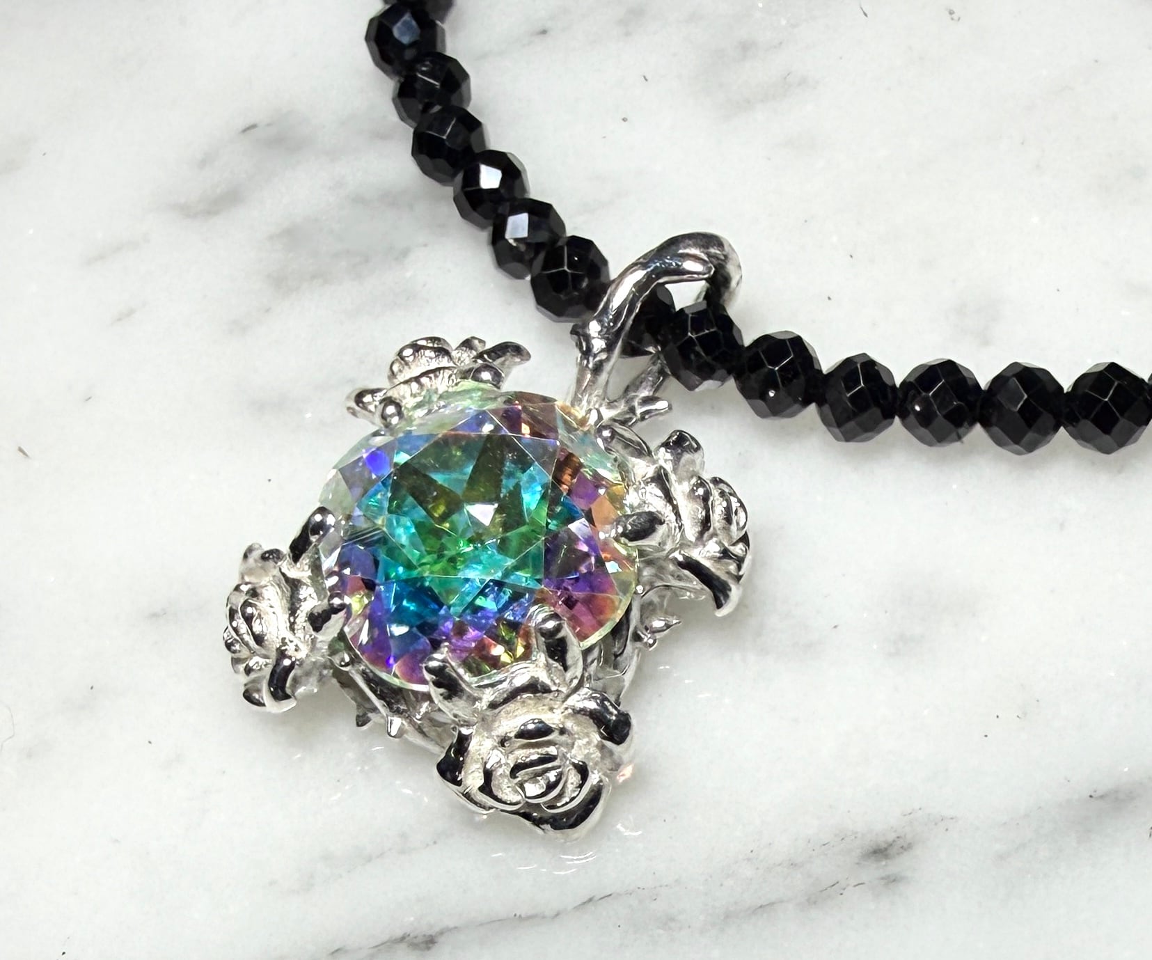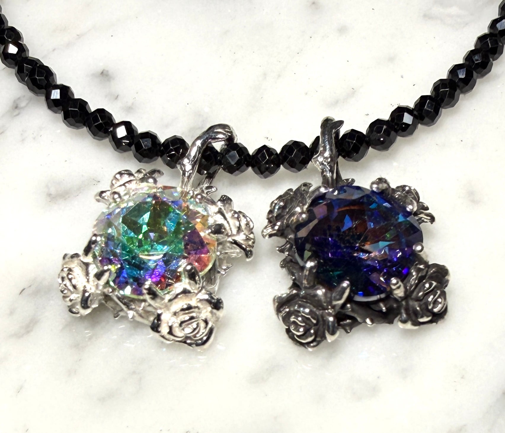 ☆KIYOの気まぐれ特価☆ ネオラヴィアンローズペンダント オーロラorバミューダブルー (葉っぱ無しver.)ブラックスピネルチェーン付き