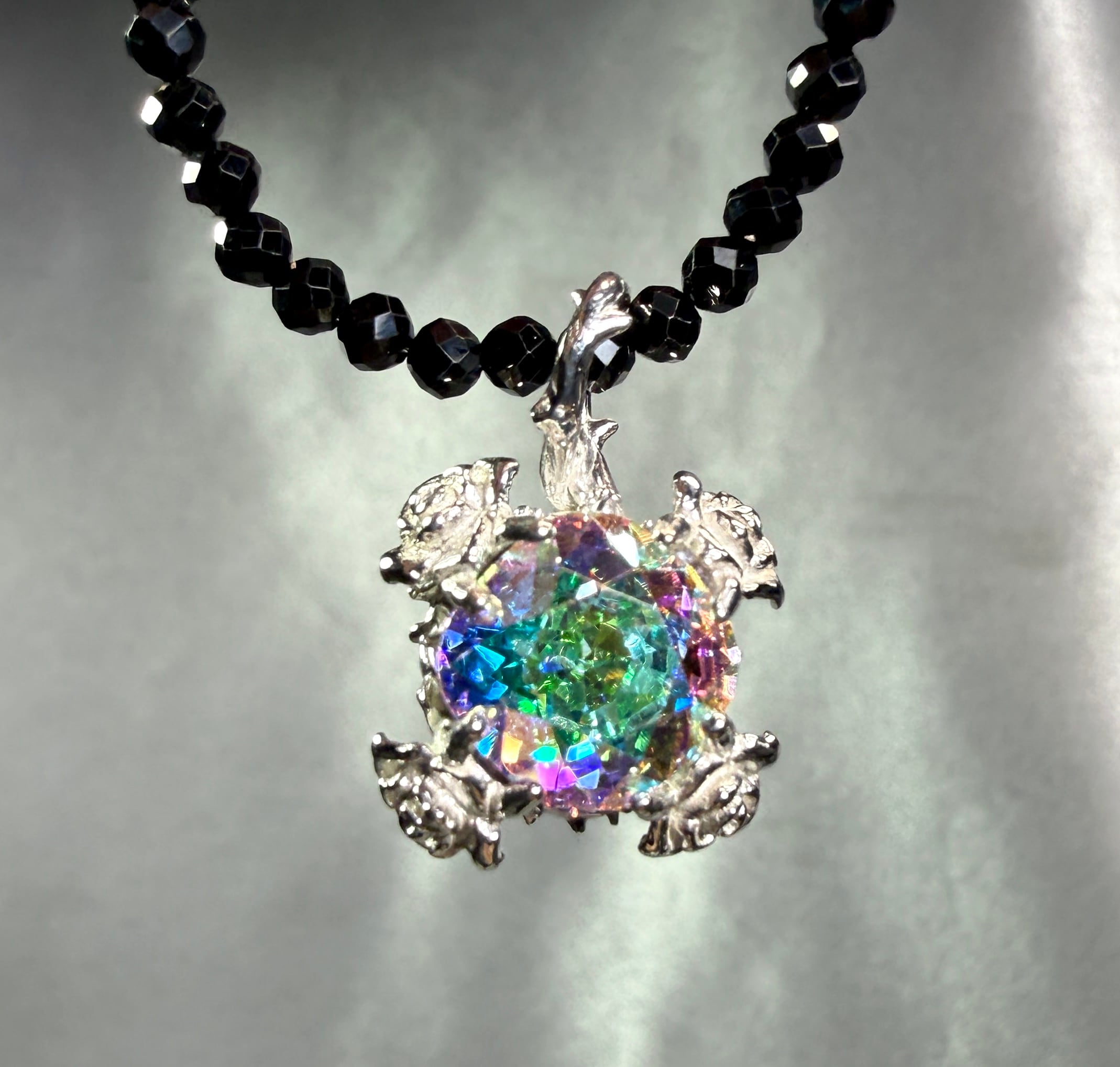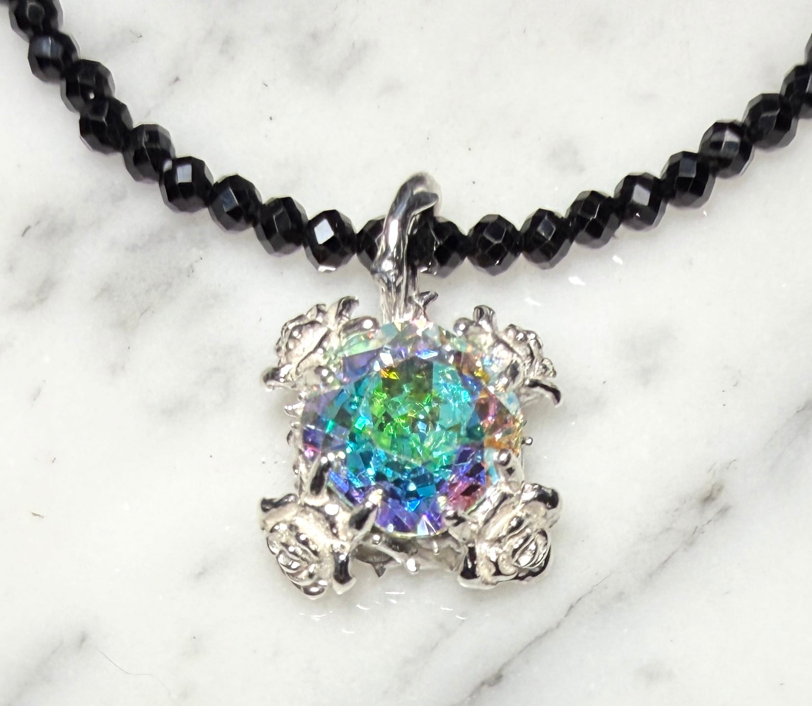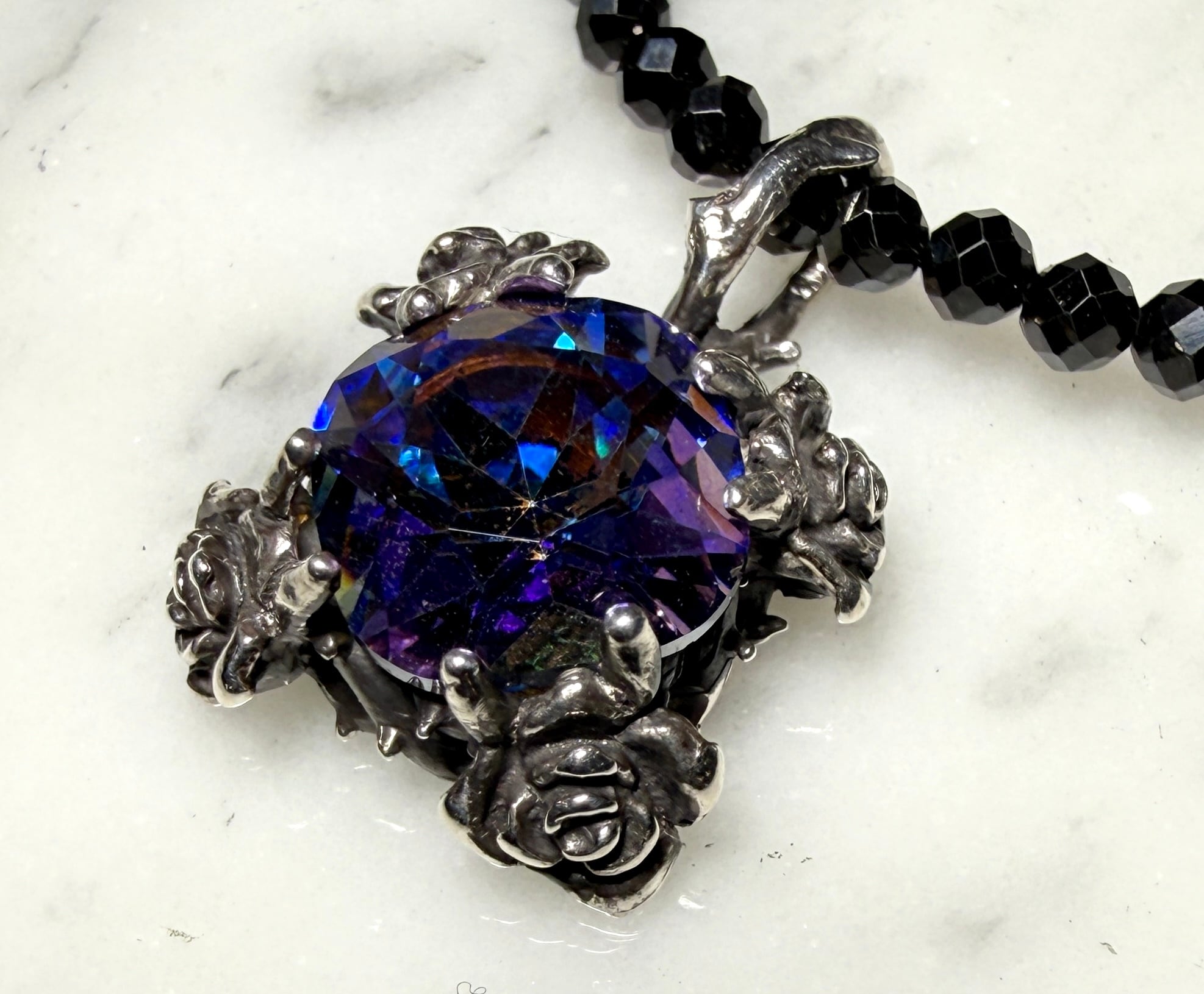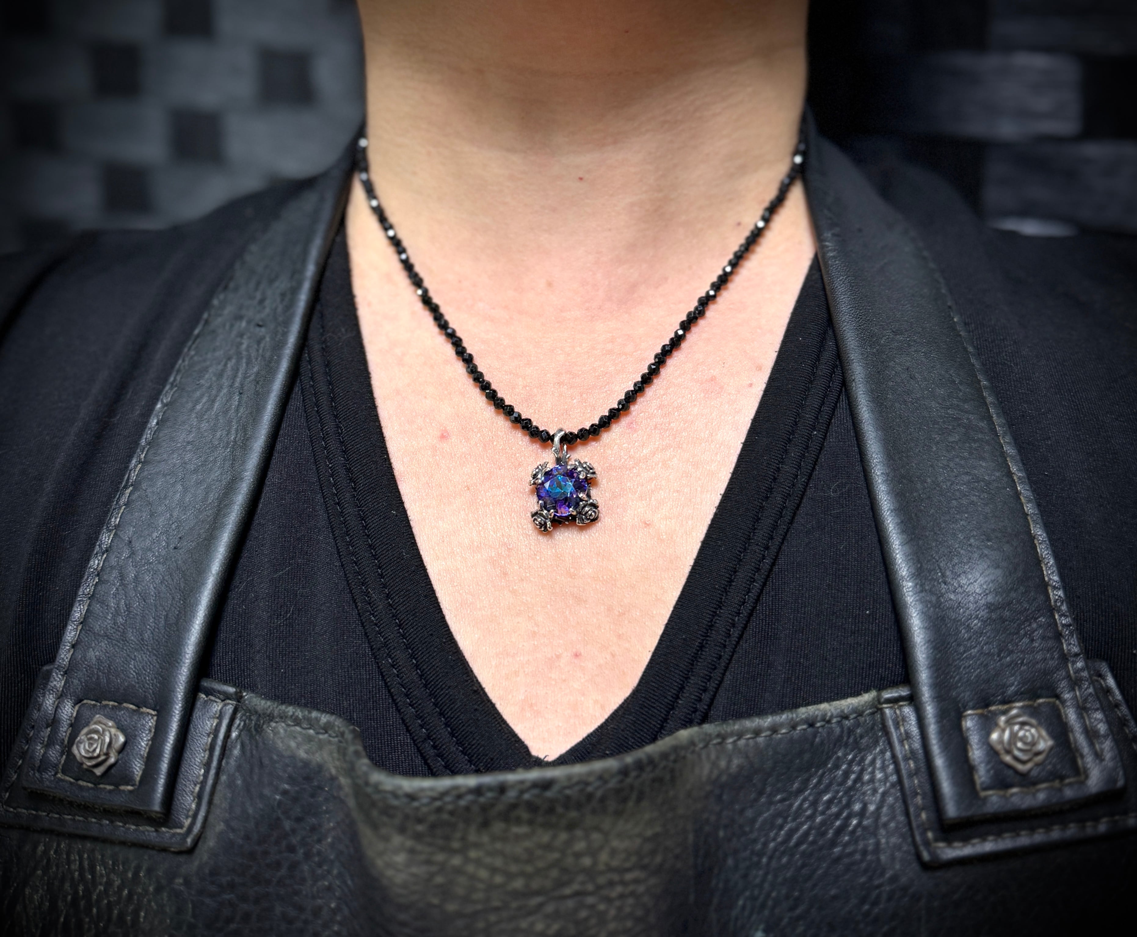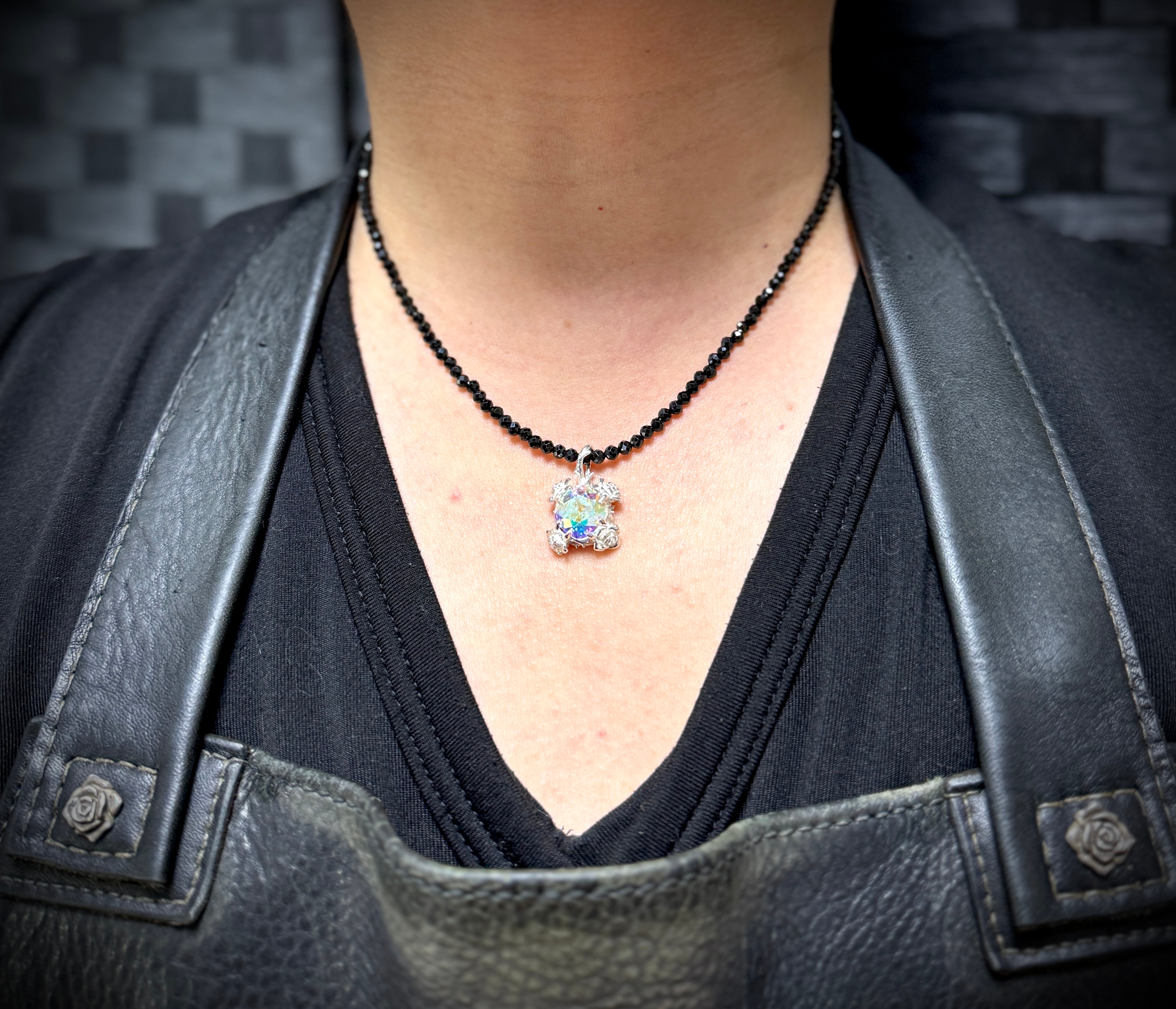 ☆KIYOの気まぐれ特価☆ ネオラヴィアンローズペンダント オーロラorバミューダブルー (葉っぱ無しver.)ブラックスピネルチェーン付き