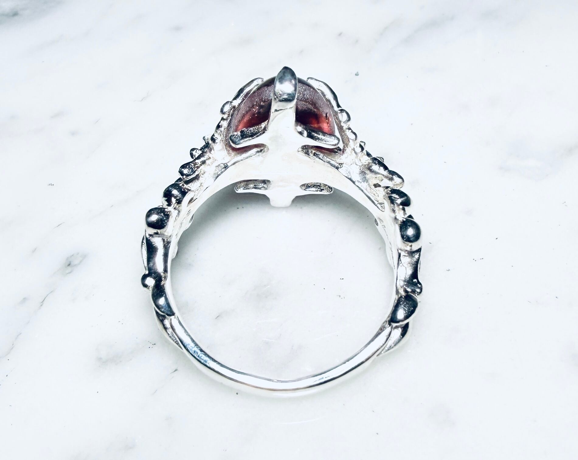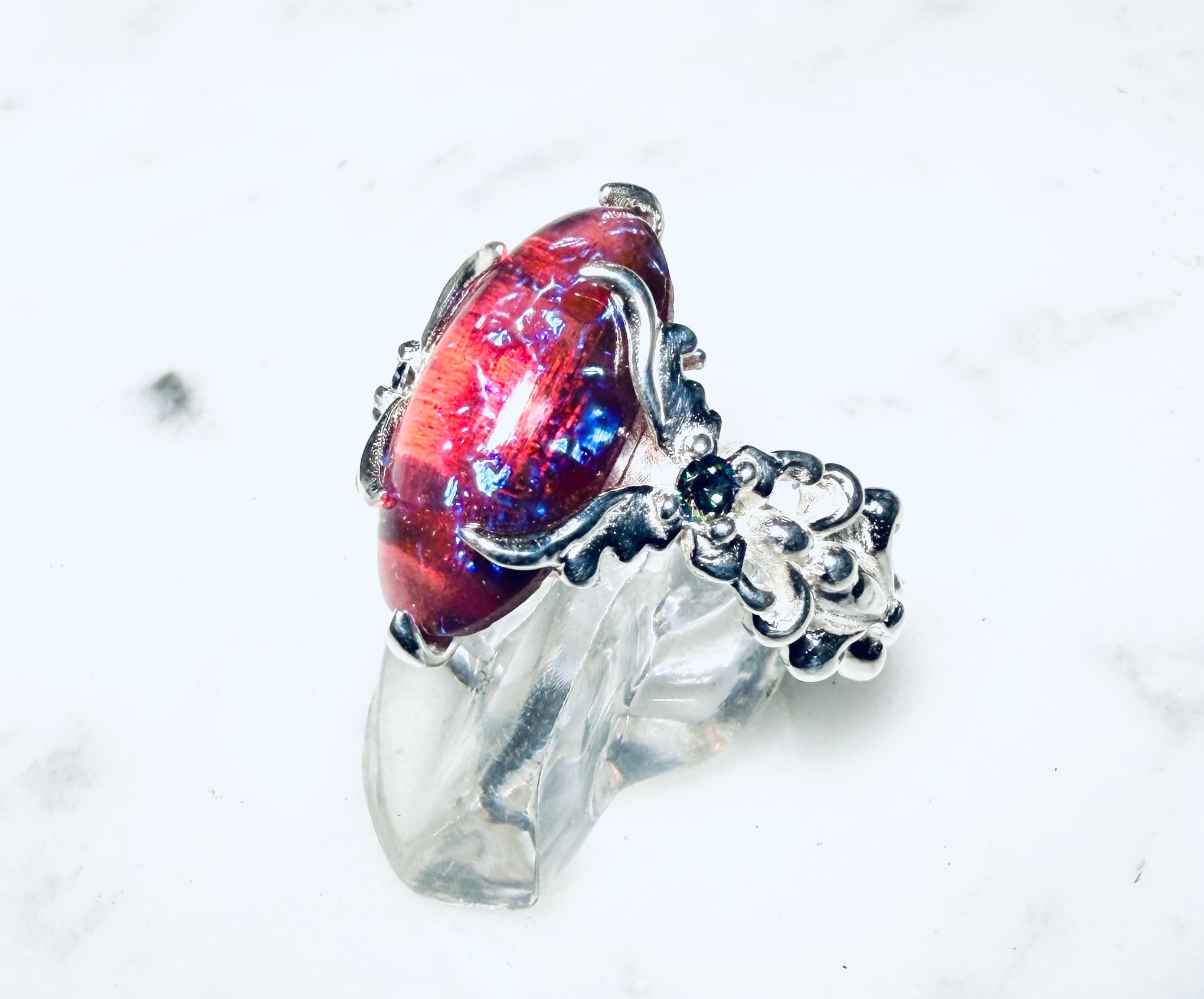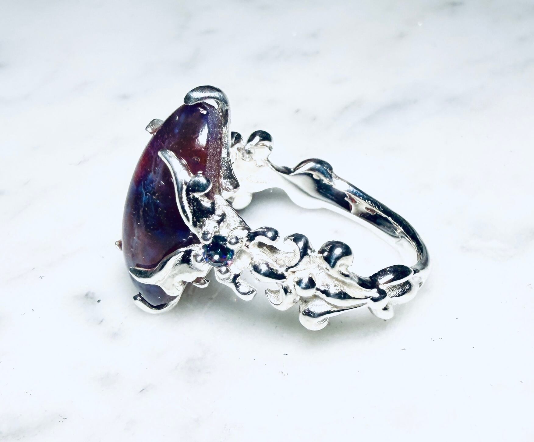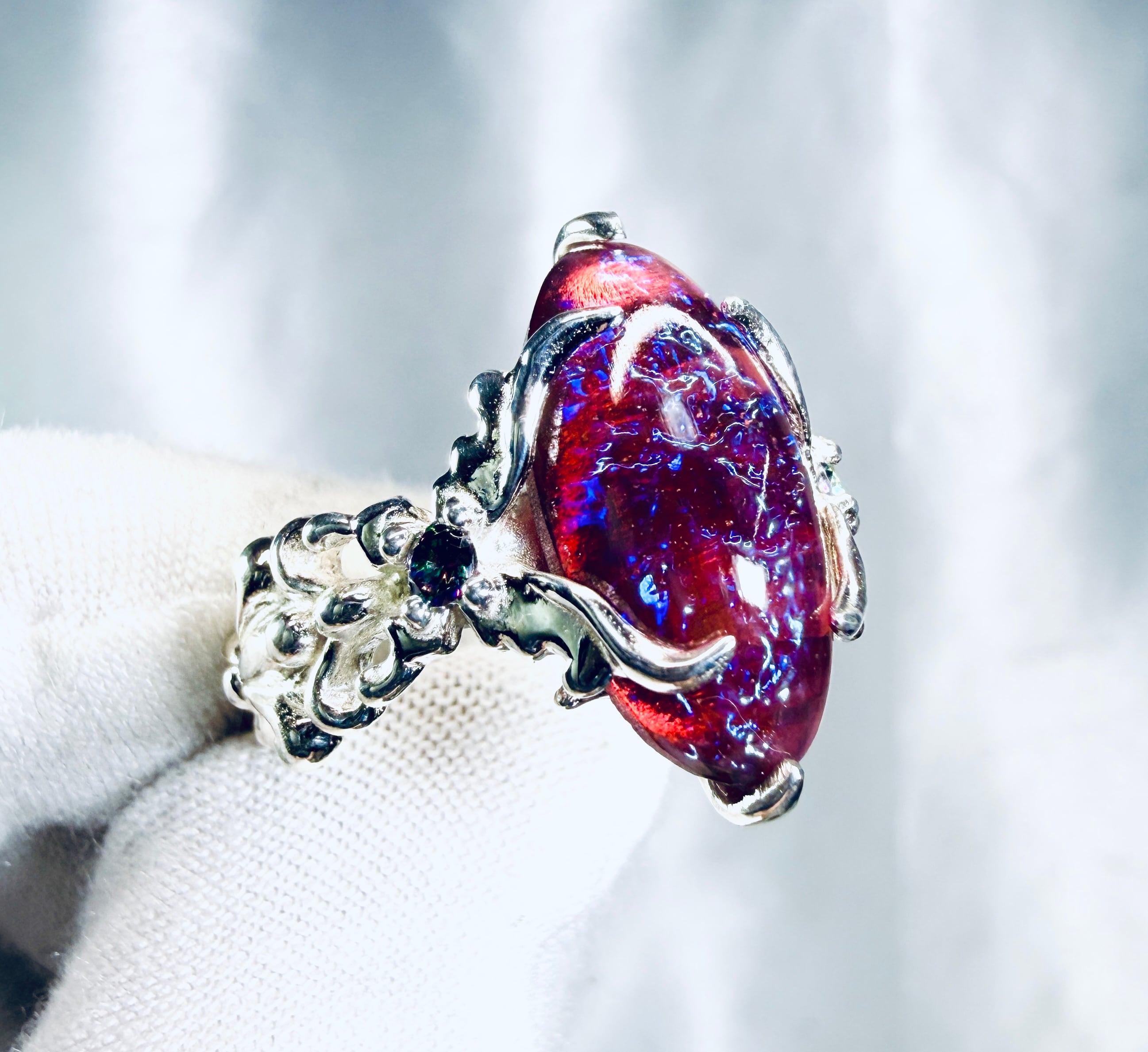 左右から燃え上がる様な蝶のデザインで石を固定しましたᕦ(ò_óˇ)ᕤ