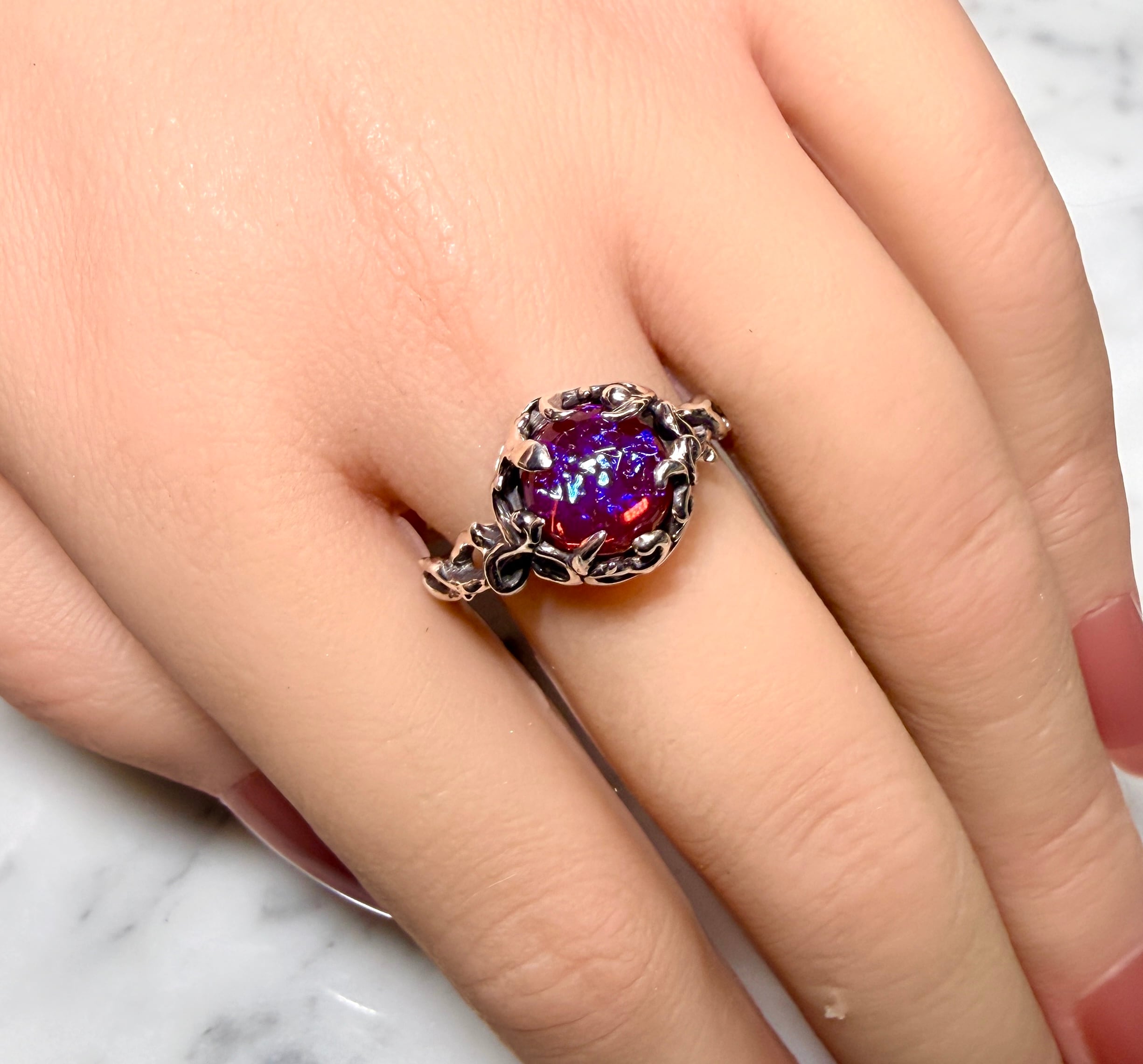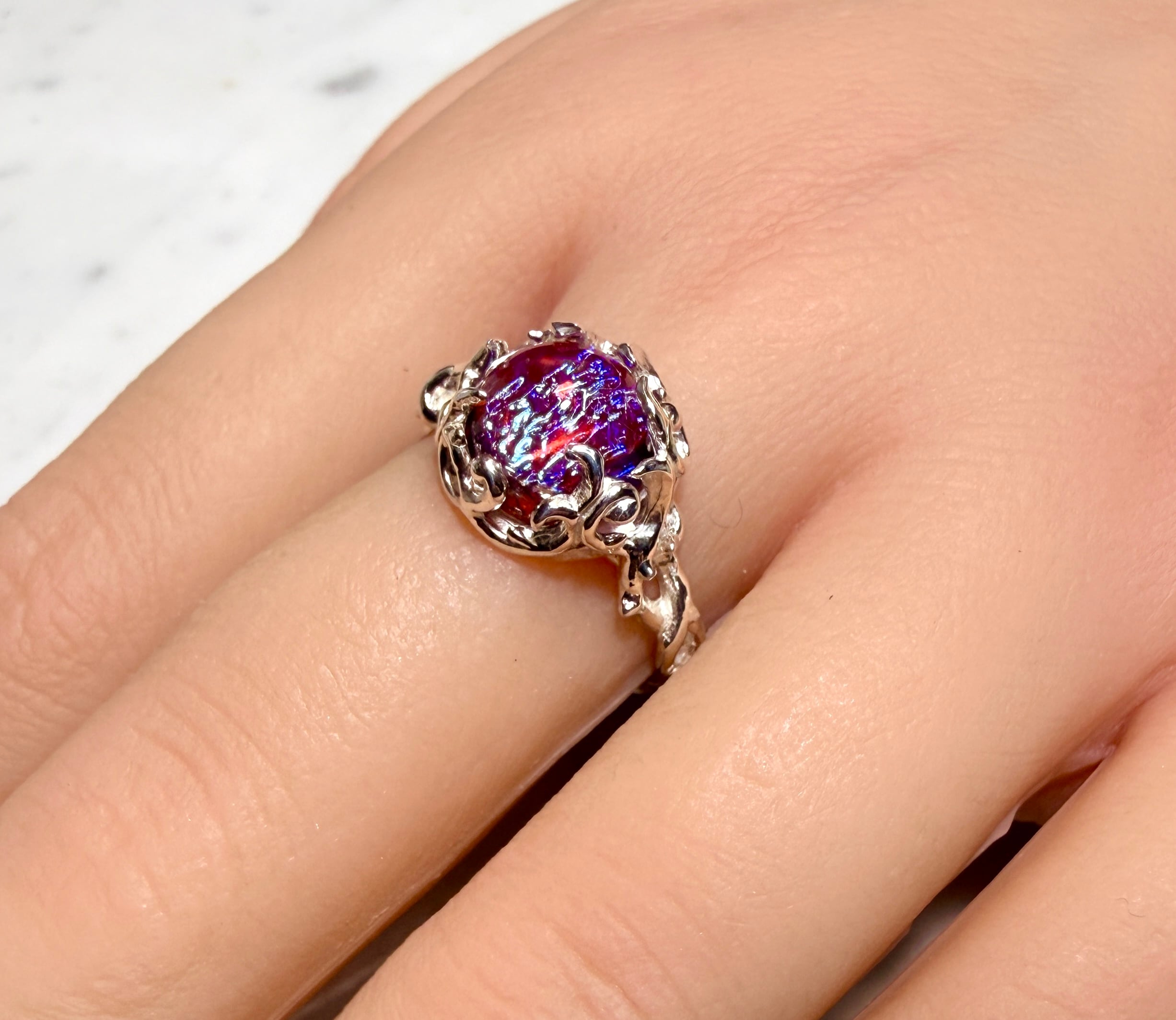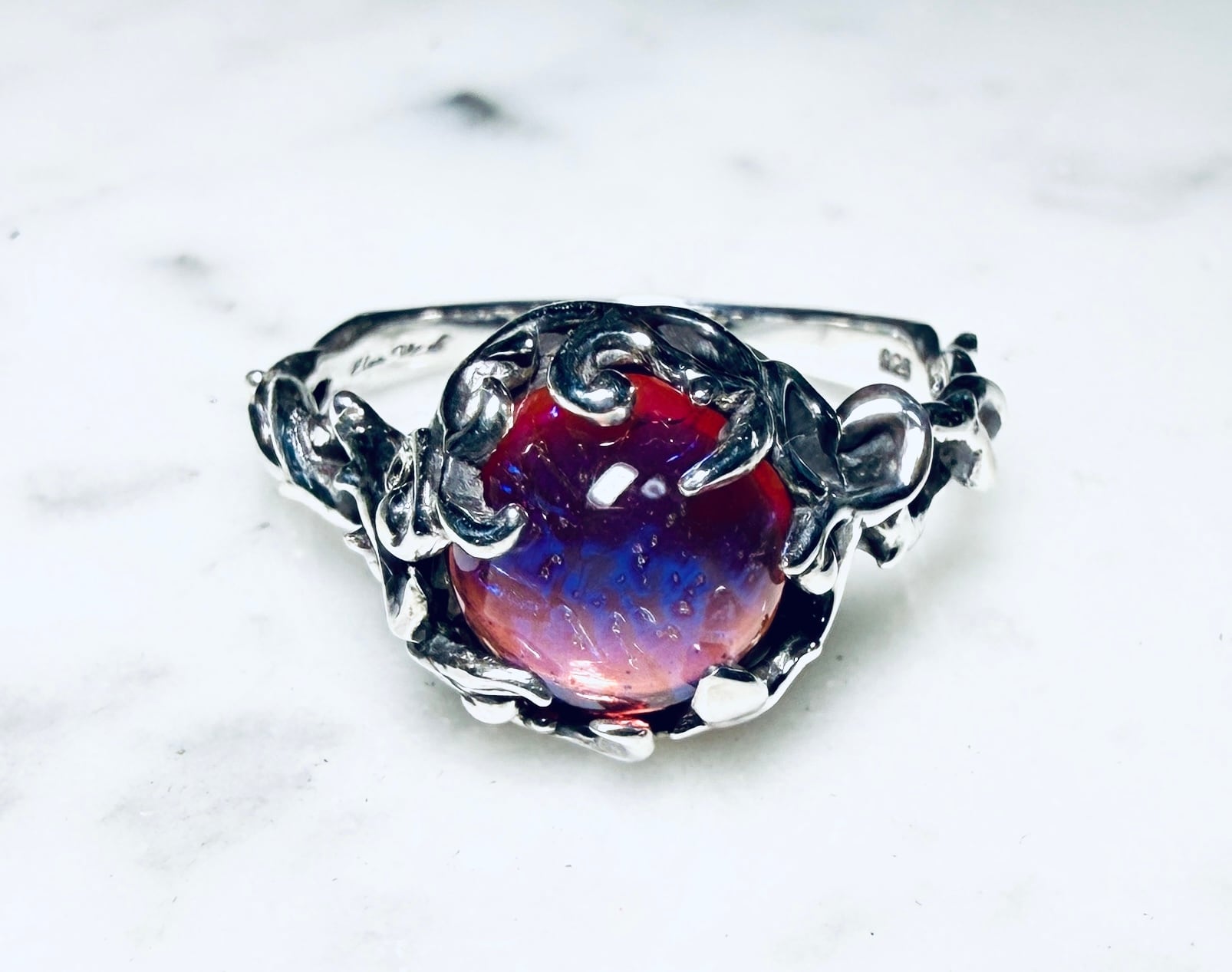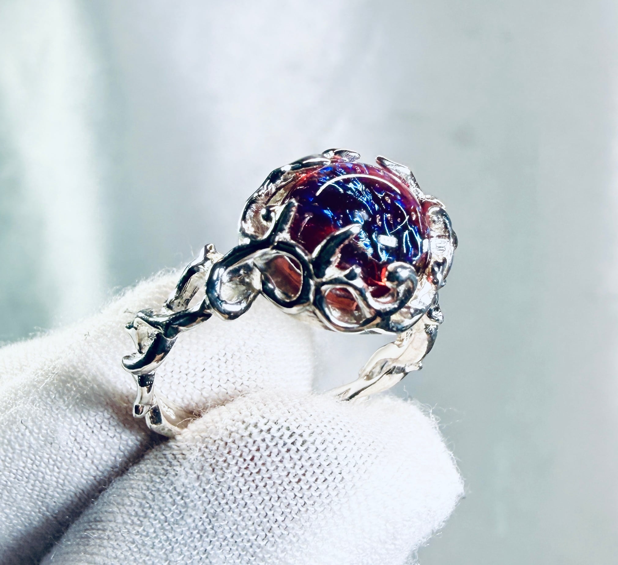 赤の中に角度で青が揺らめく光で表現☆