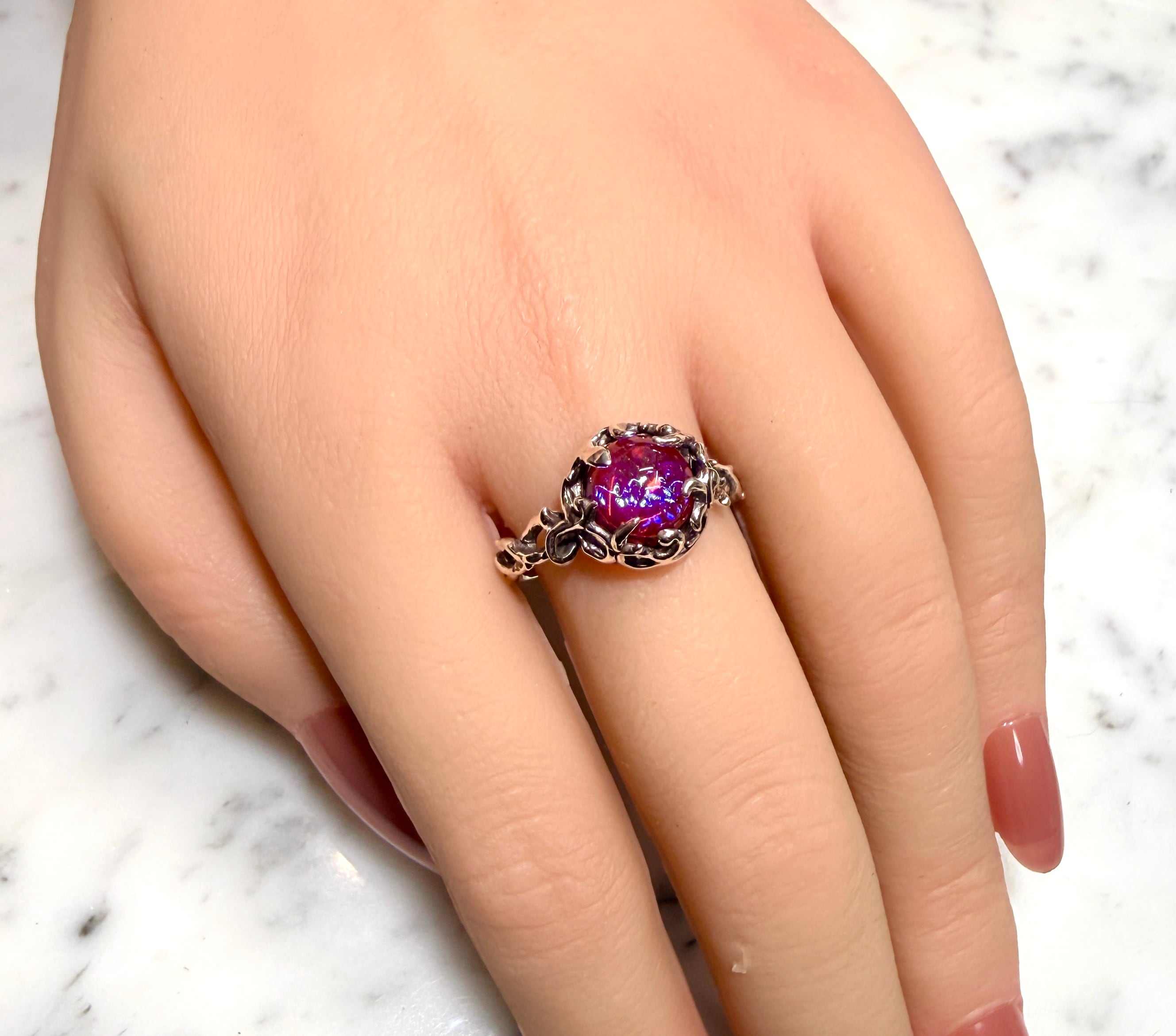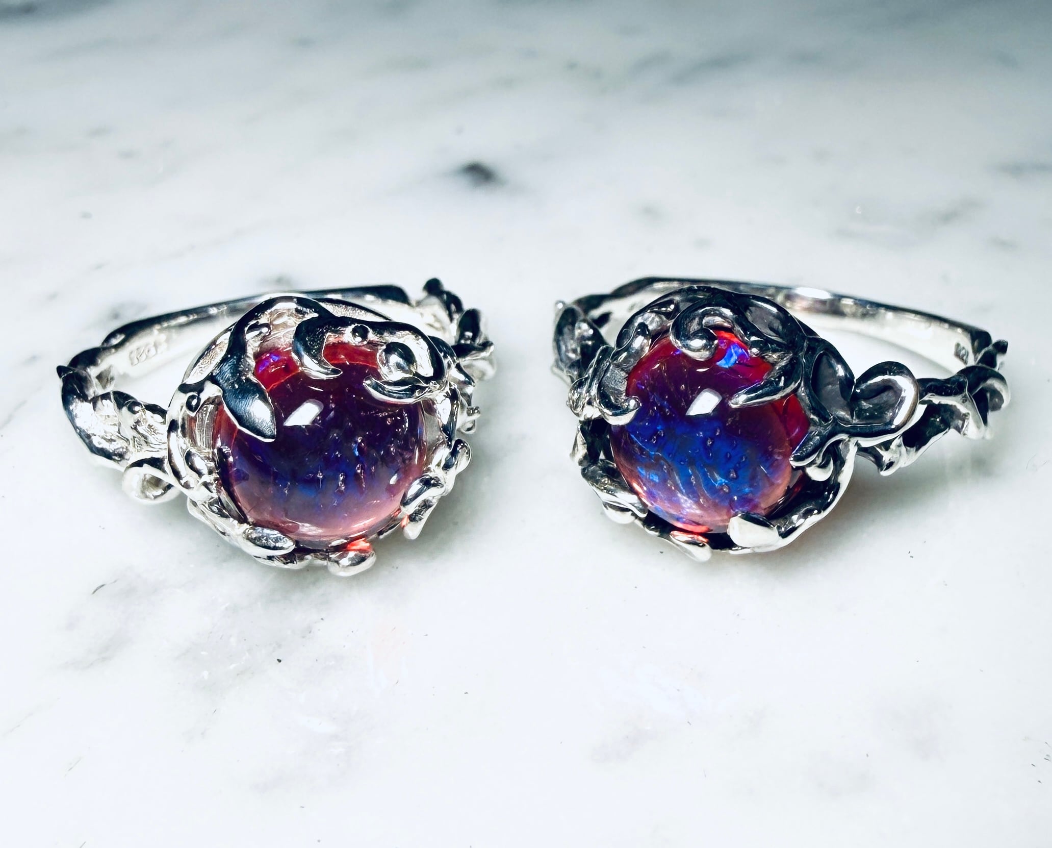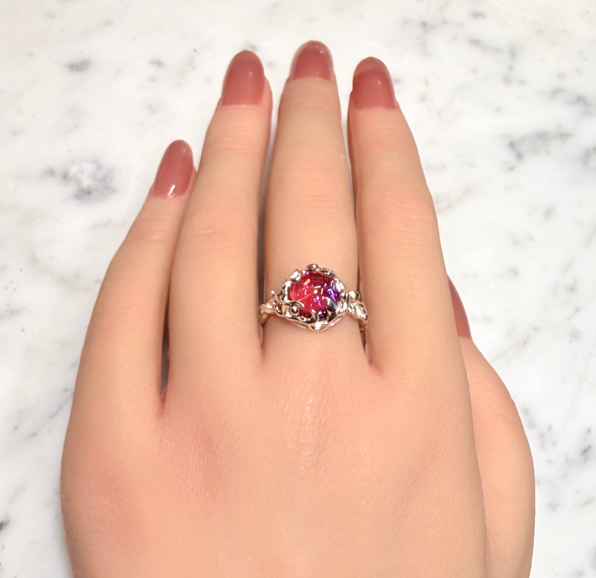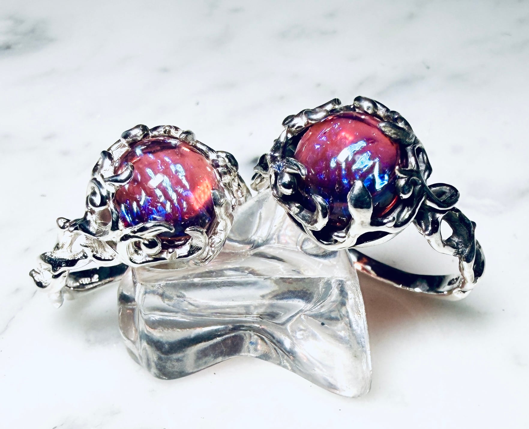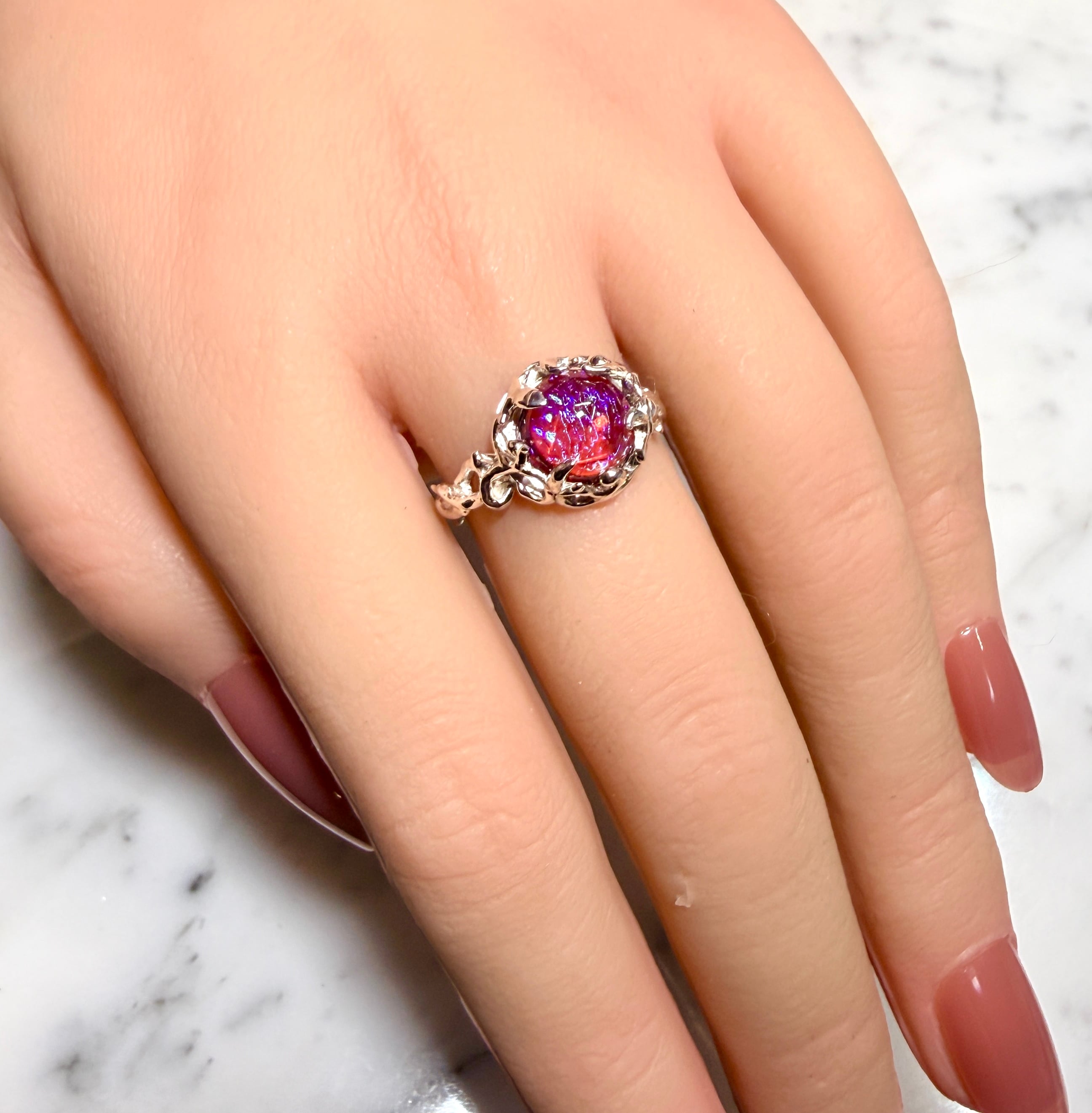 赤の中に角度で青が揺らめく光で表現☆