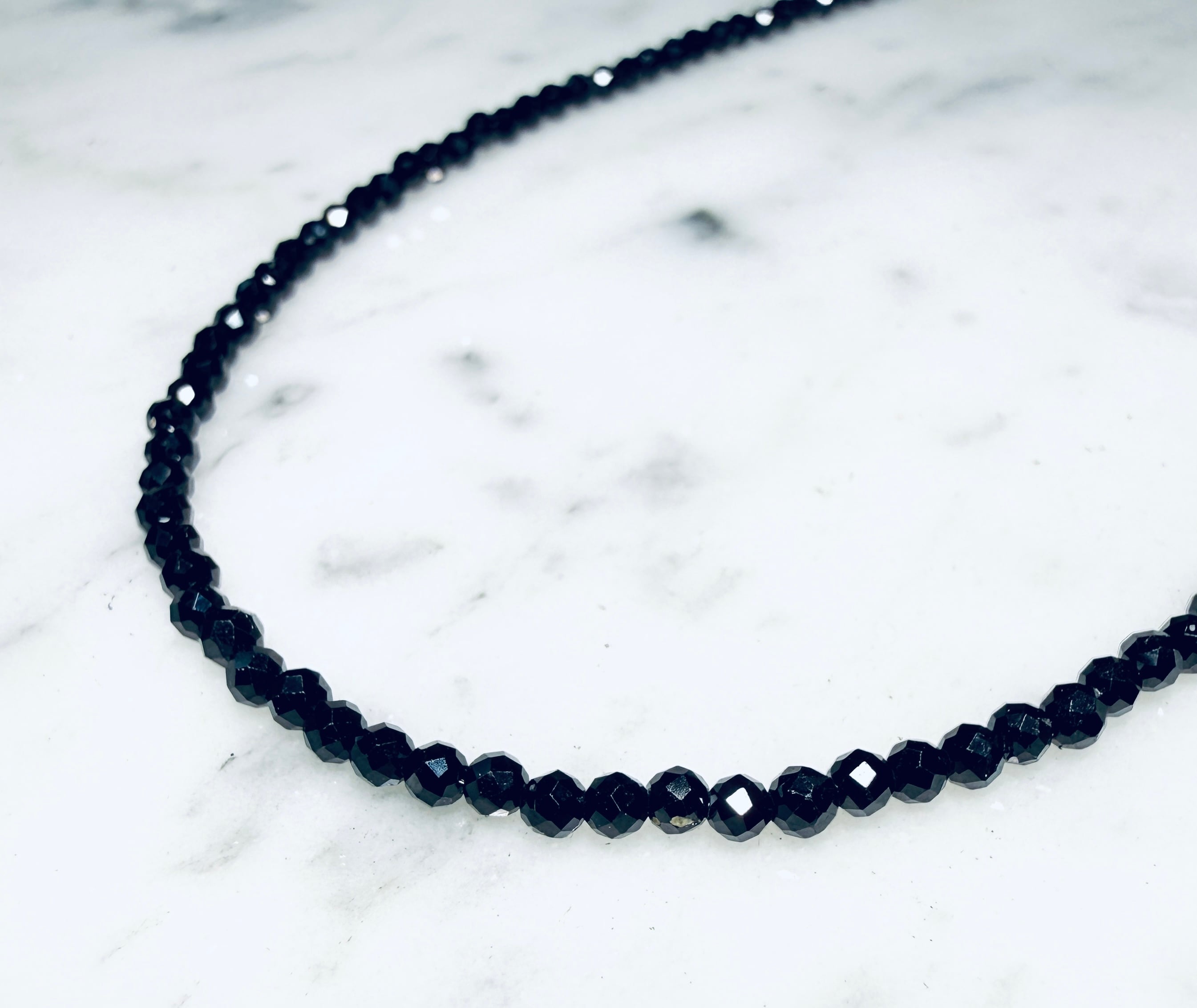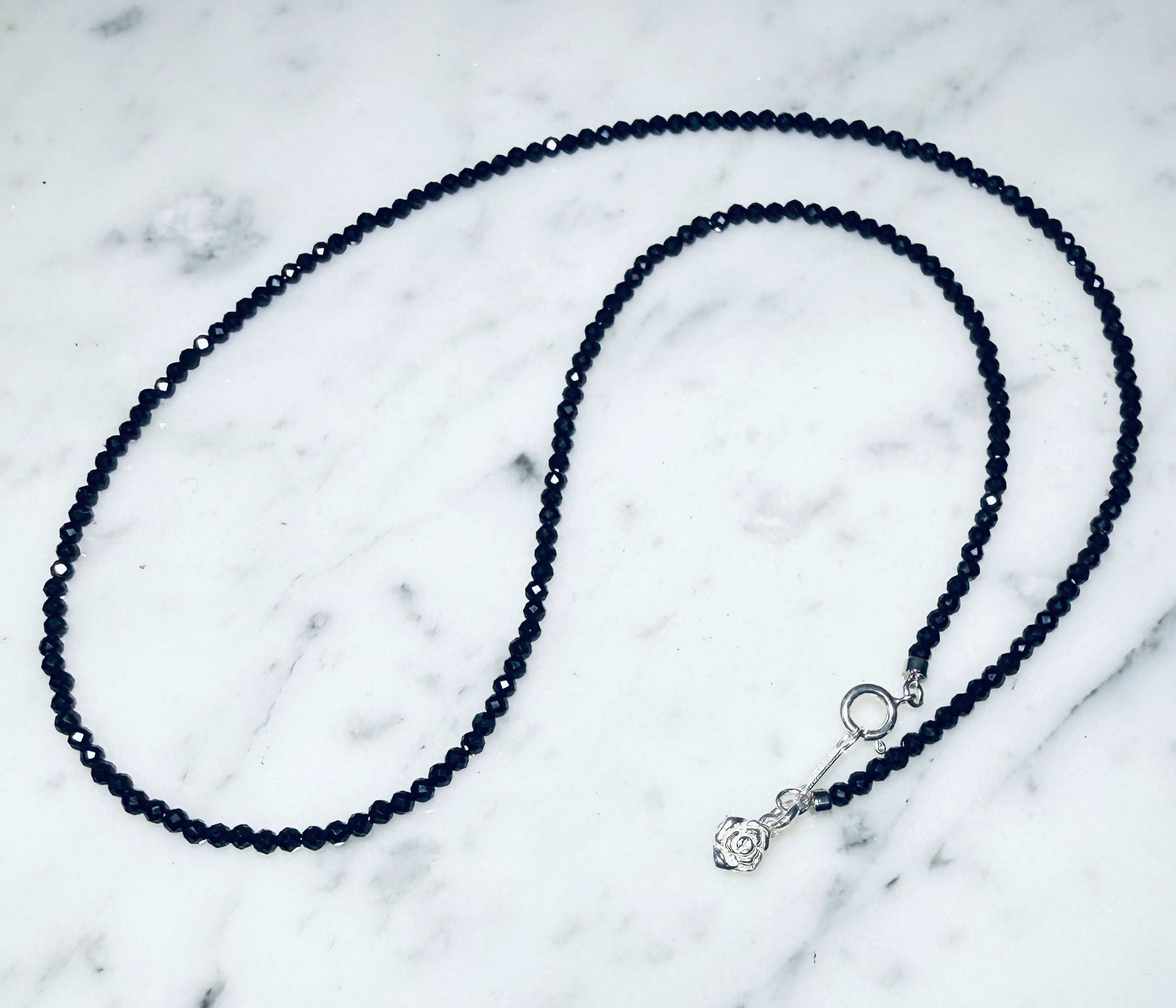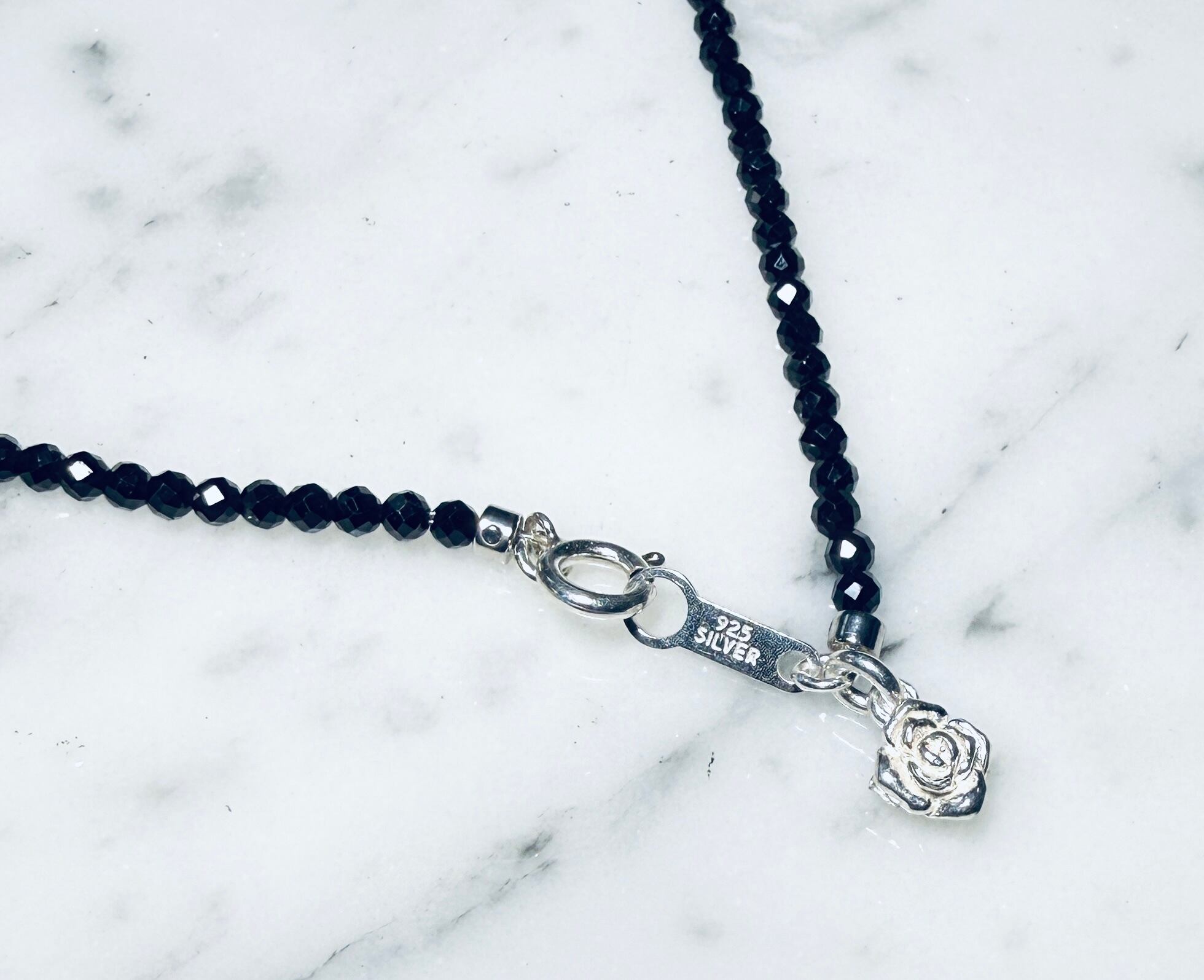 2mmのブラックスピネルネックレス 薔薇チャーム付き