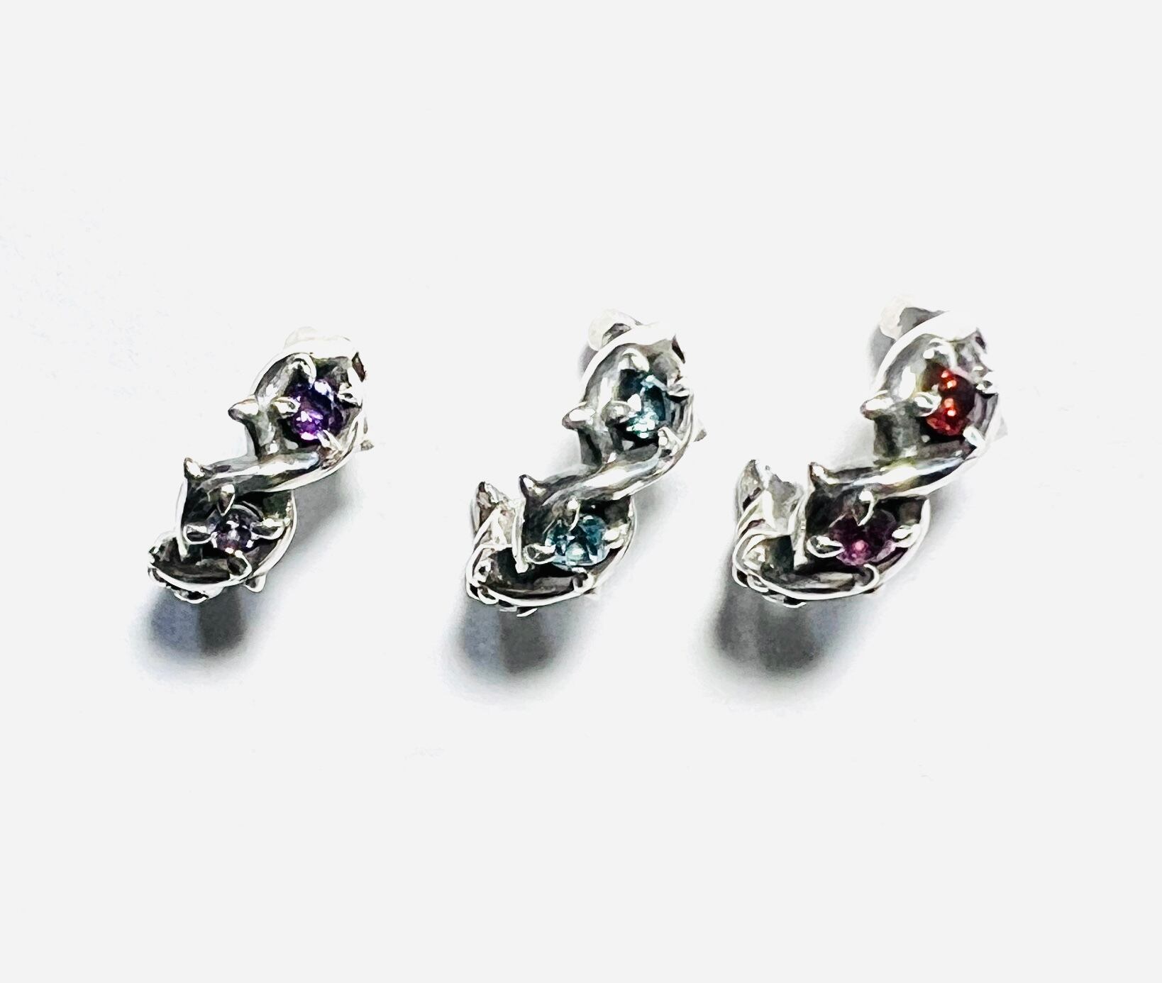 8の字に絡まるツタの間に石を3石グラデーションカラーでセッティング。