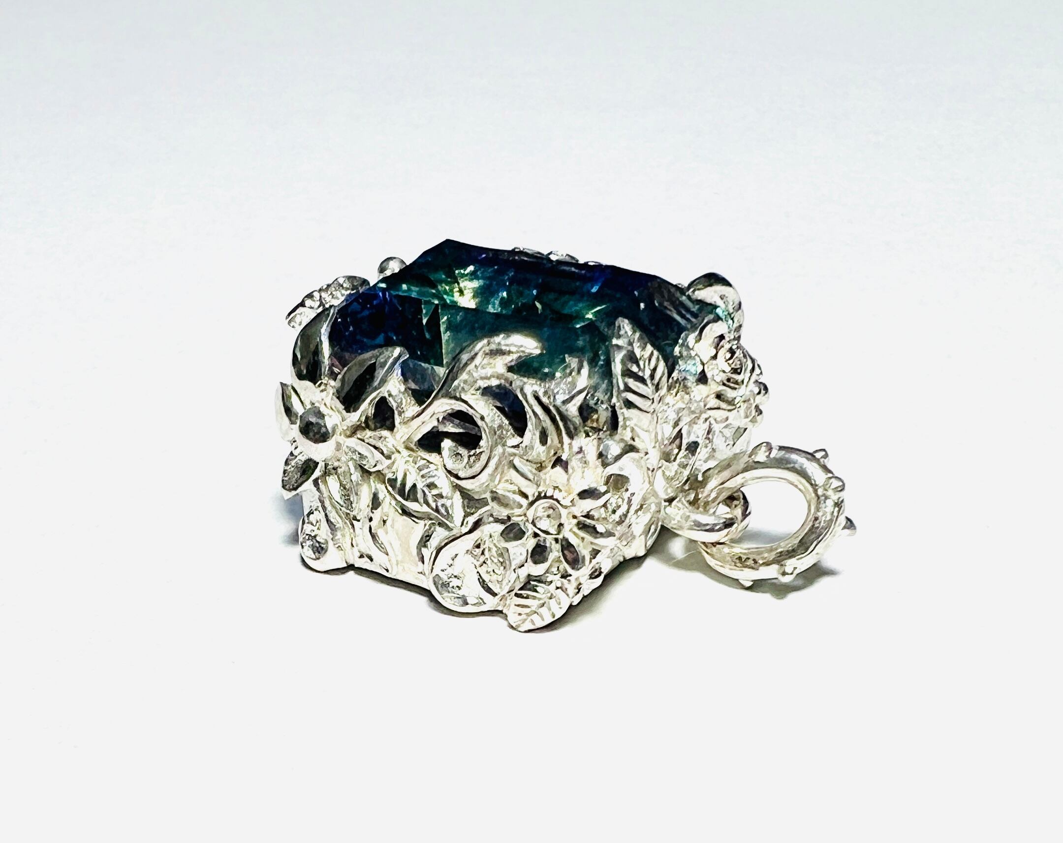 中央には、虹色に怪しく輝く大振りなミスティックトパーズをセットして、神々しさを出しました