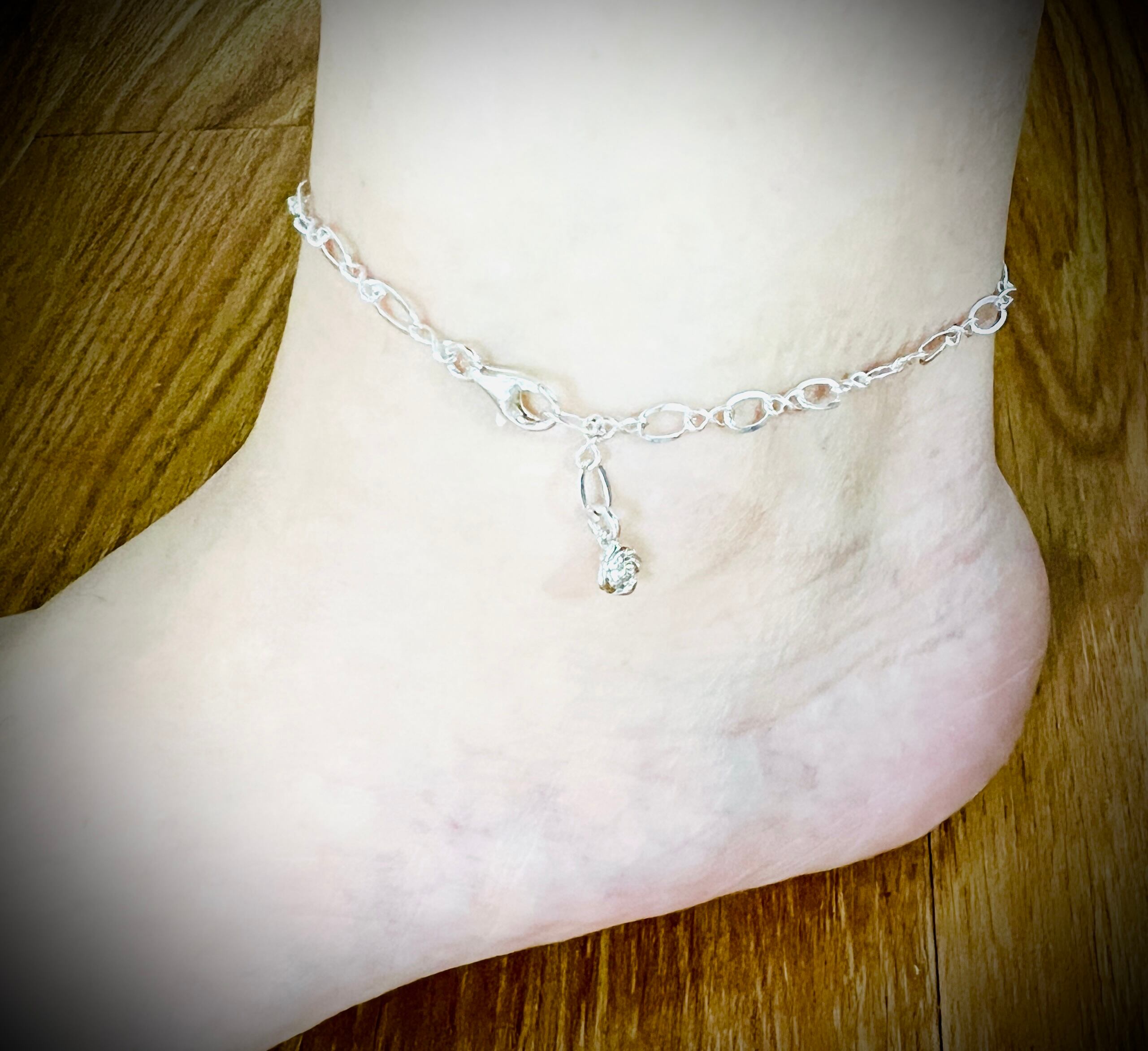デザインシルバーブレスレットorアンクレット(B)薔薇チャーム付き