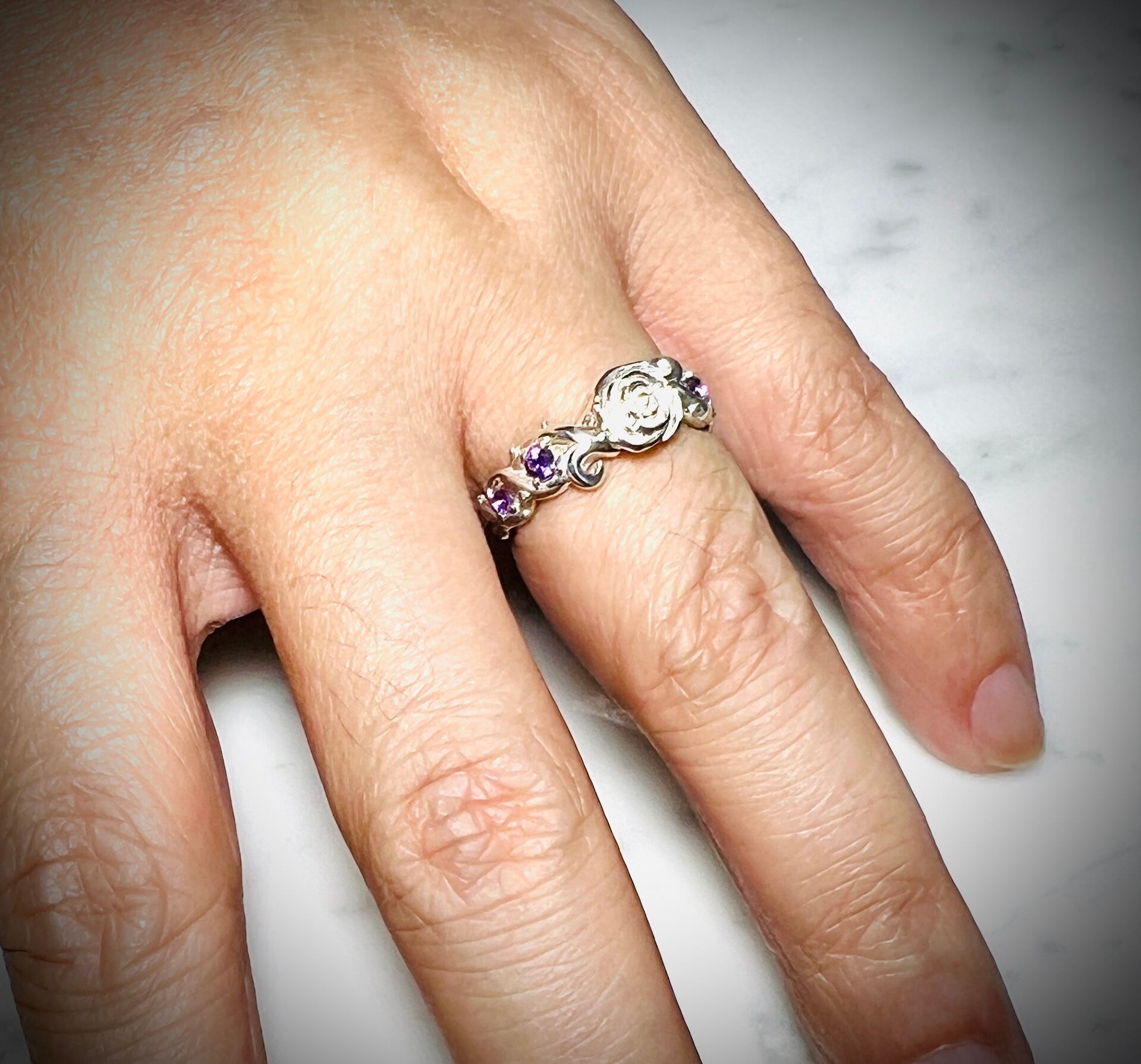 ☆シンデレラサイズSALE (9号)☆グリッターローズリング (アメシスト)