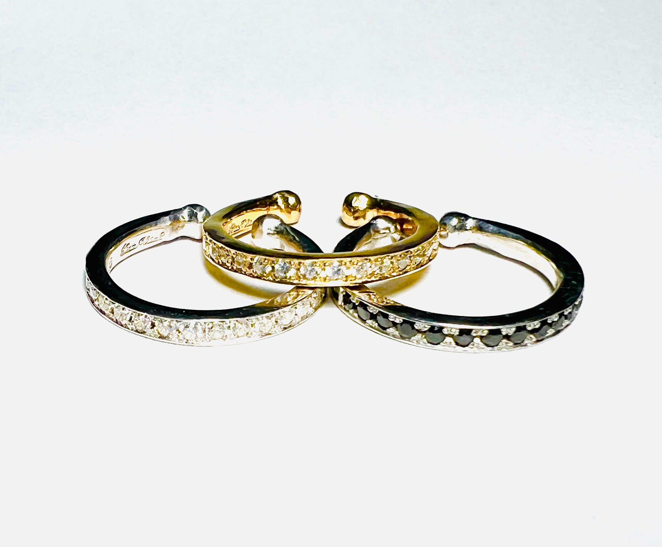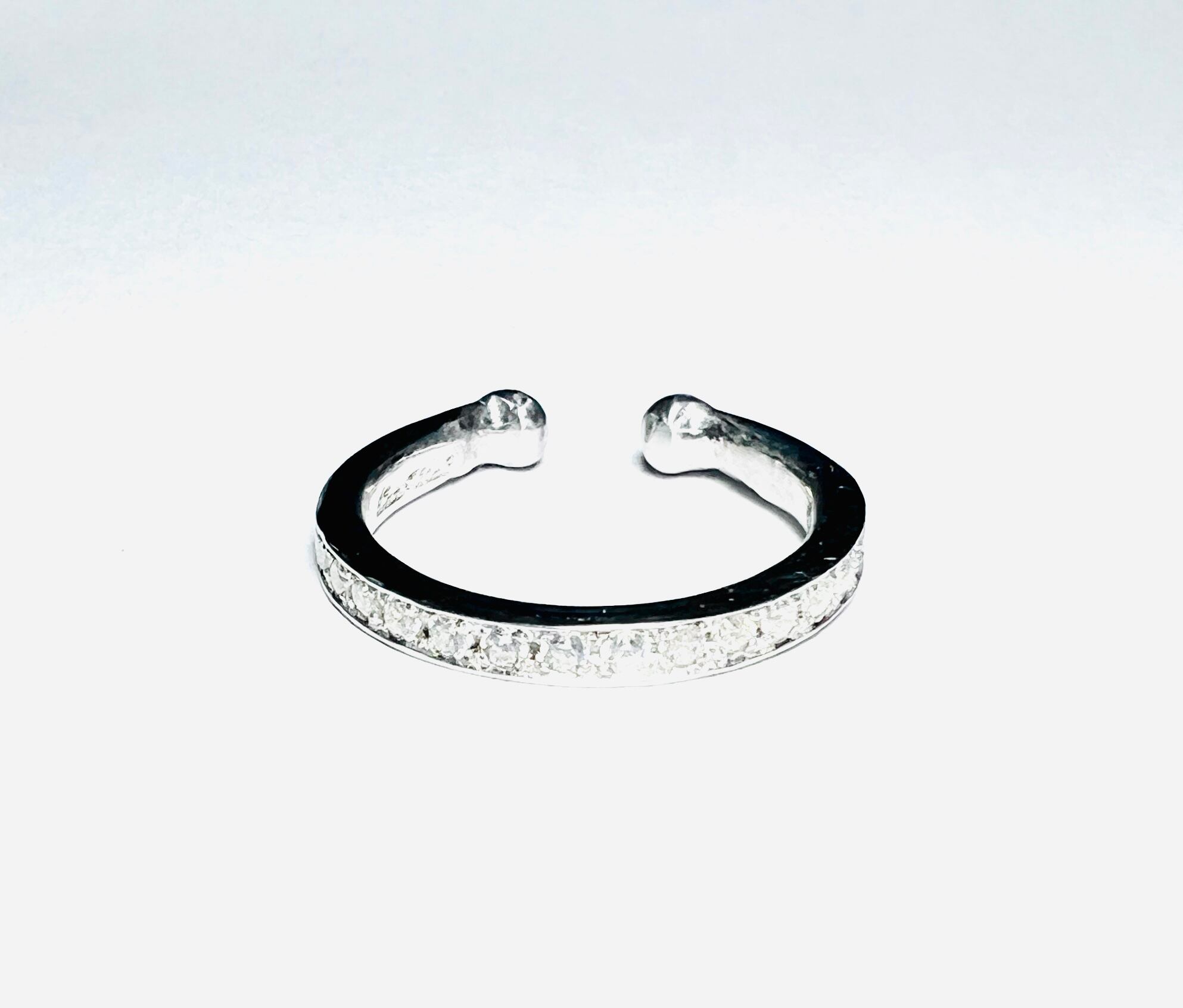 プレーンなリングに輝くキュービックジルコニアを敷き詰めて、耳に引っ掛けるタイプのイヤーフープに☆
