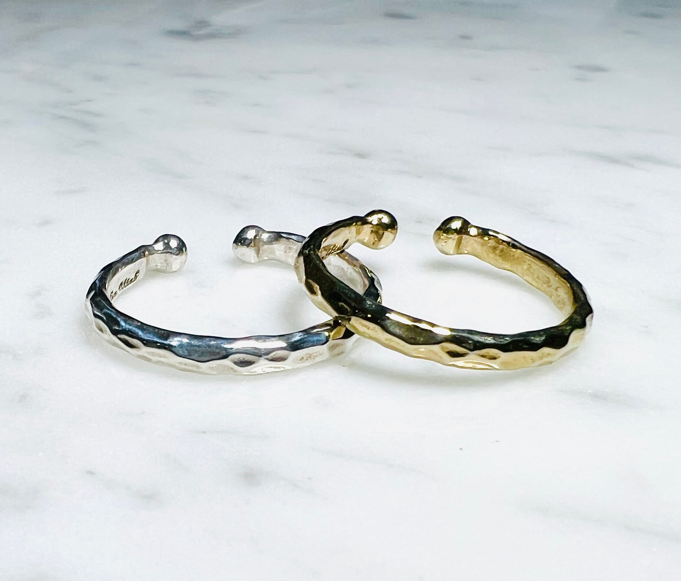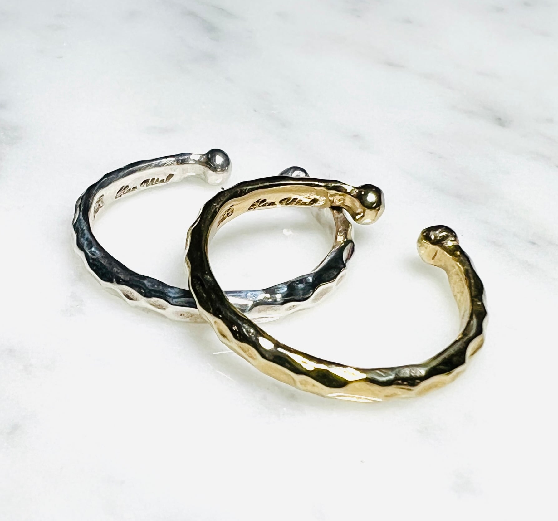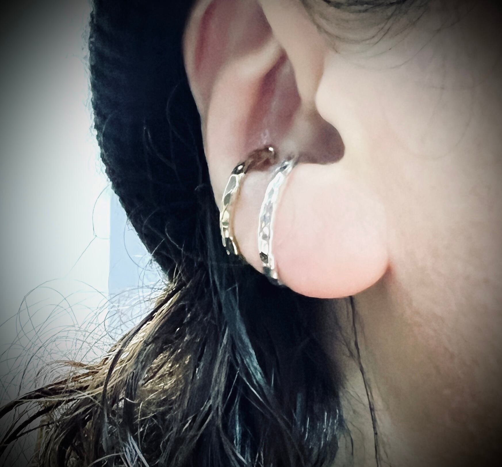 プレーンなリングをカフカットした耳に引っ掛けるタイプのイヤーフープに☆