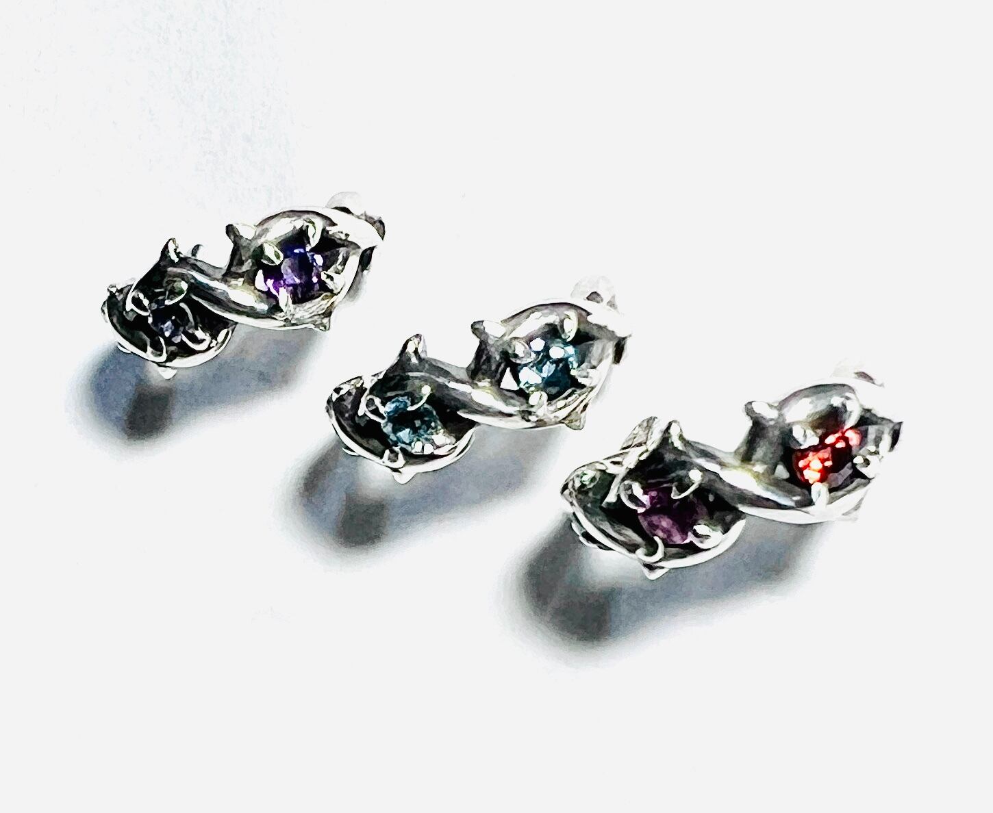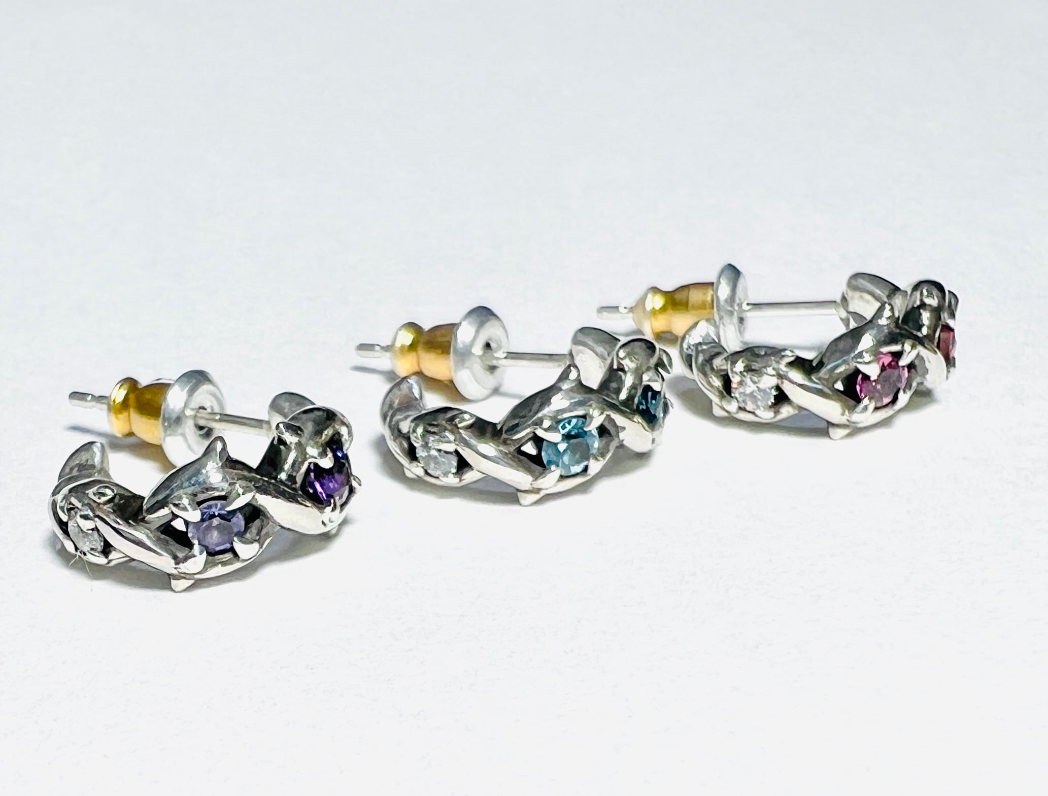 8の字に絡まるツタの間に石を3石グラデーションカラーでセッティング。