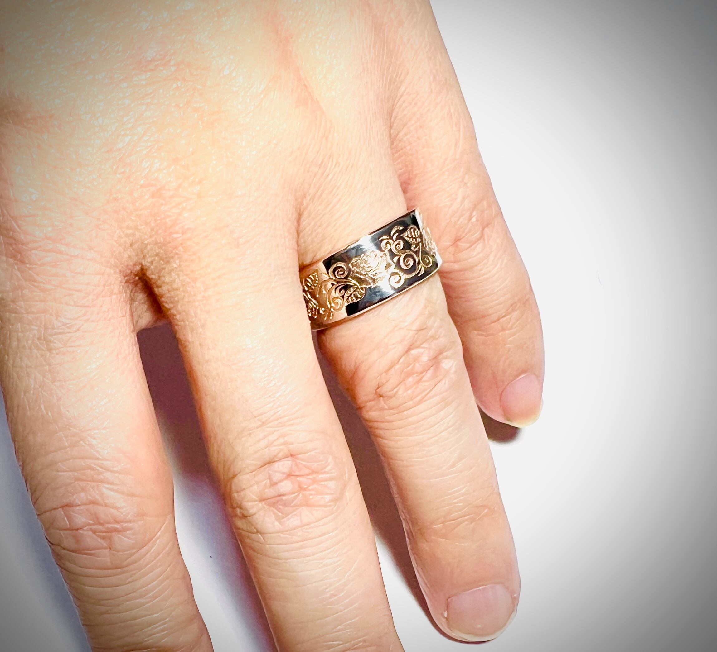 デザインリングのピンクゴールドコーティングを部分的に残した手間暇かかった物になります^ - ^