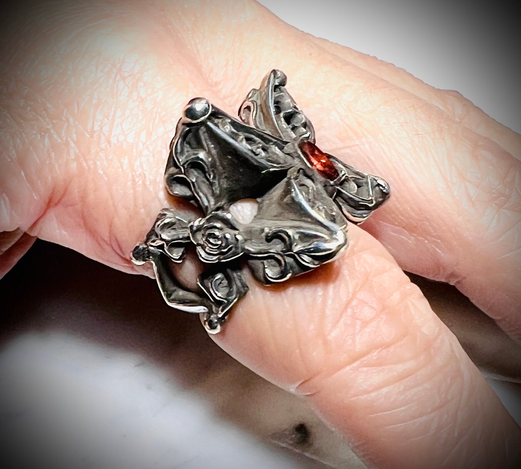 中央の石は、赤(天然ガーネット)を使用しています☆