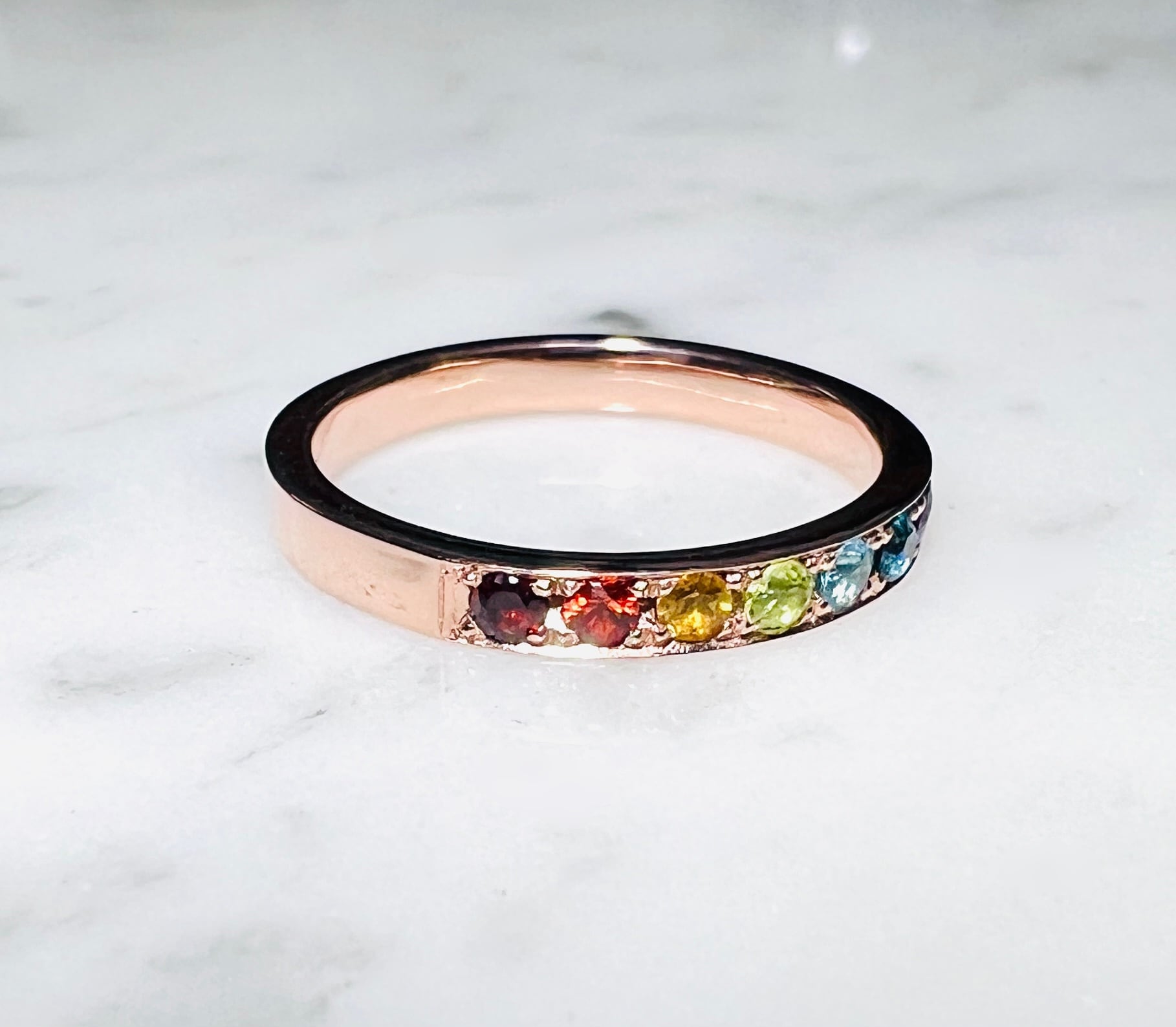 プレーンなリングに輝く天然石を虹色になる様に