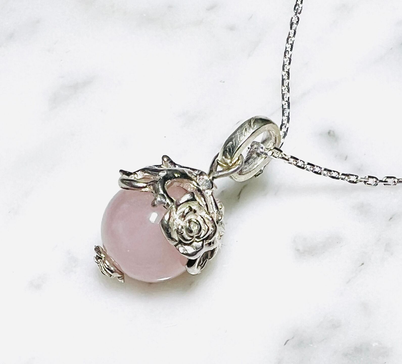 を薔薇とツタの透かし彫りでデザインされたパーツで包み込んだペンダントトップ☆
