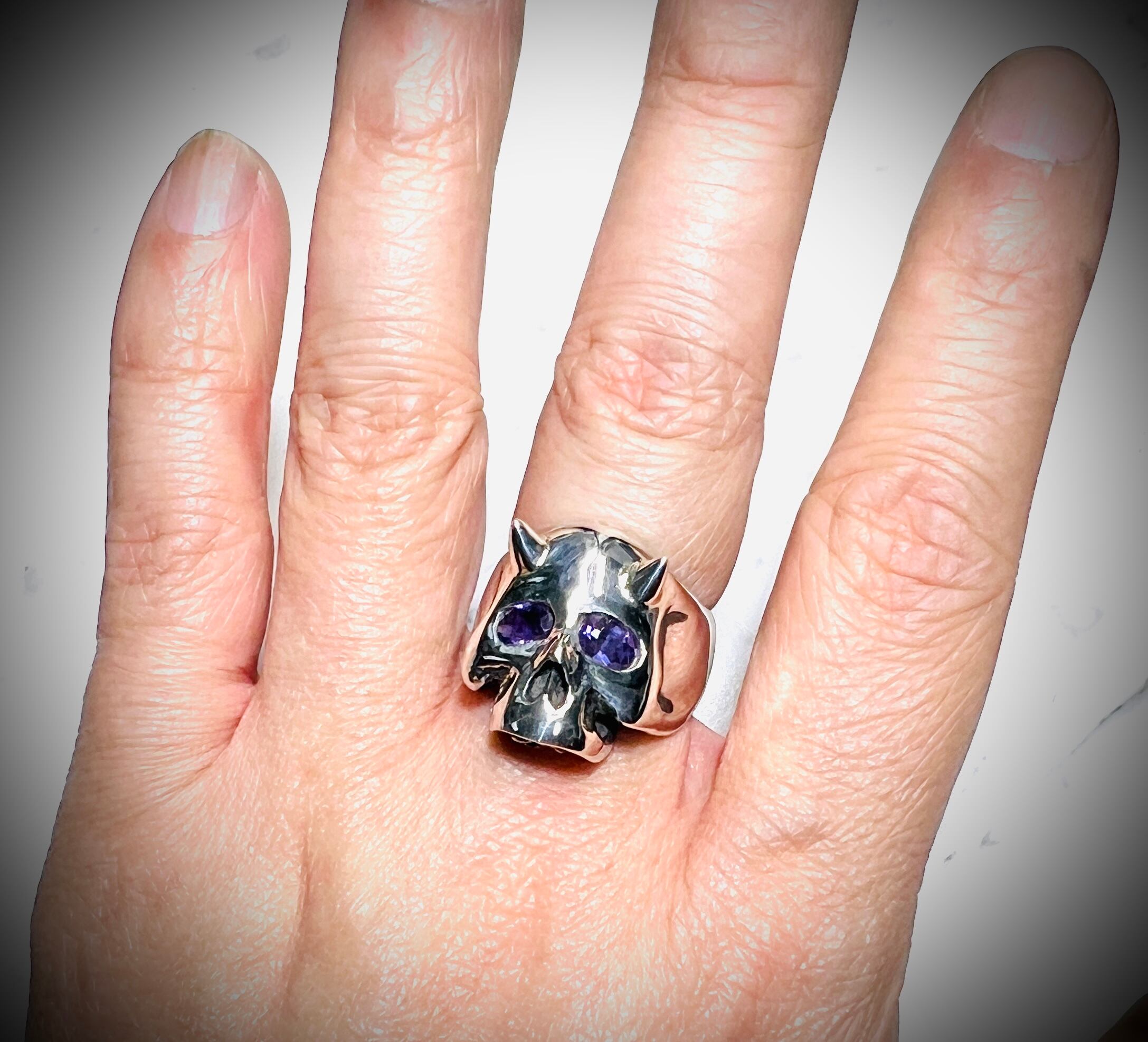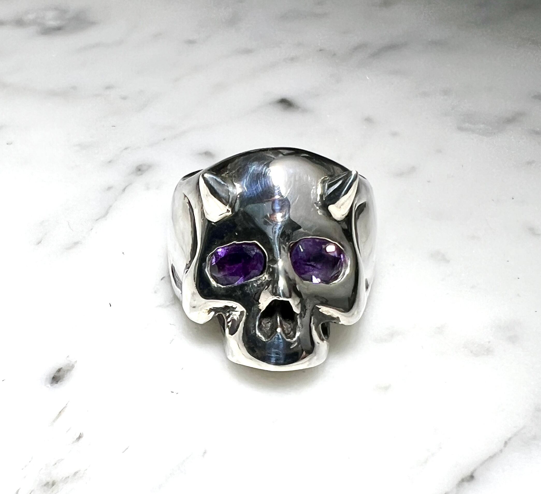 ツノが生えた可愛らしい小さめのスカルリングです☆