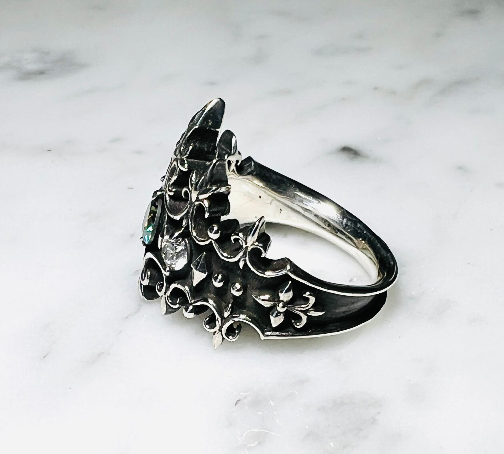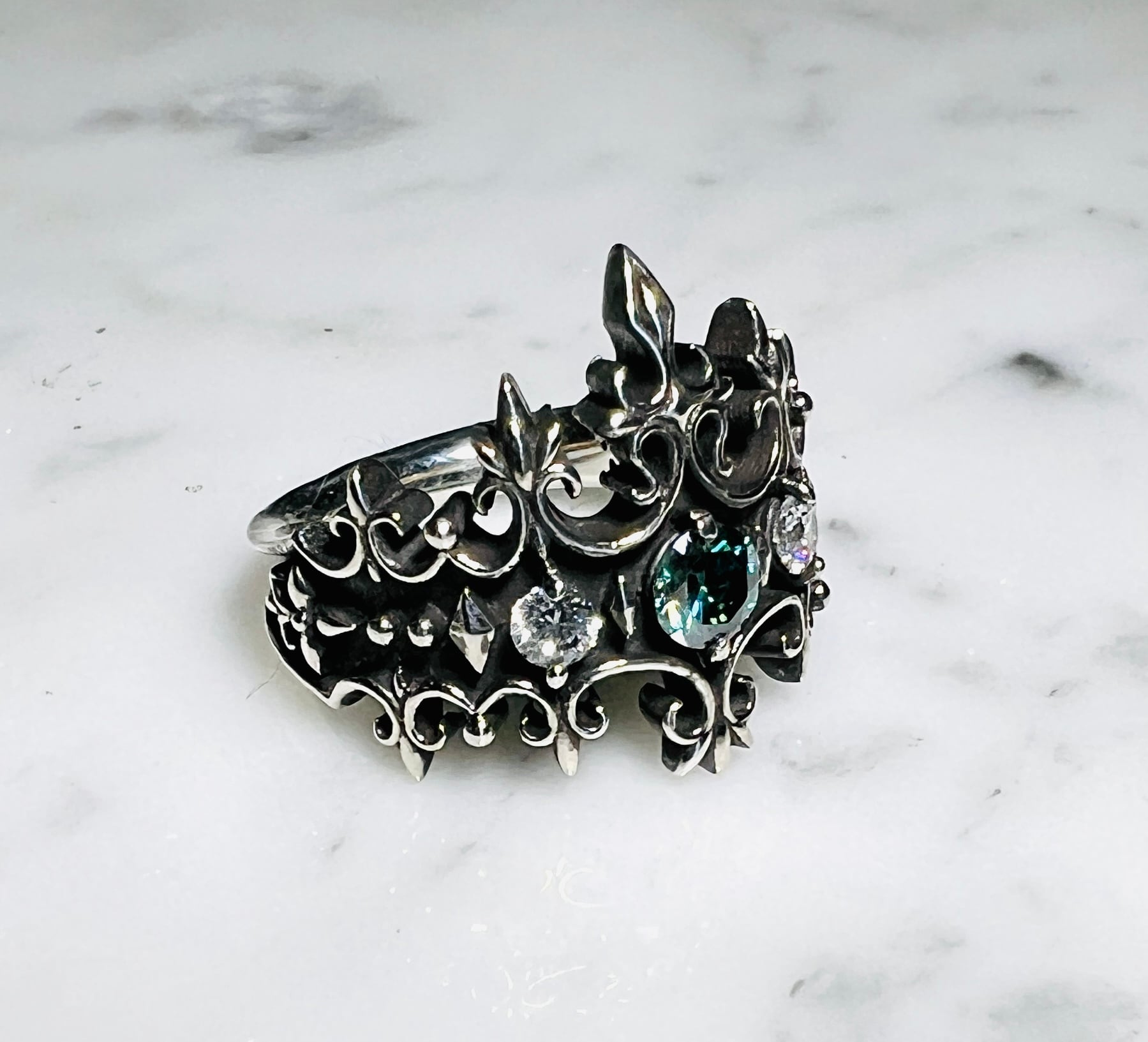 ☆シンデレラサイズ特価品 (9号)☆ グリッター クラウン ティアラ リング モアサナイト(BLUE)
