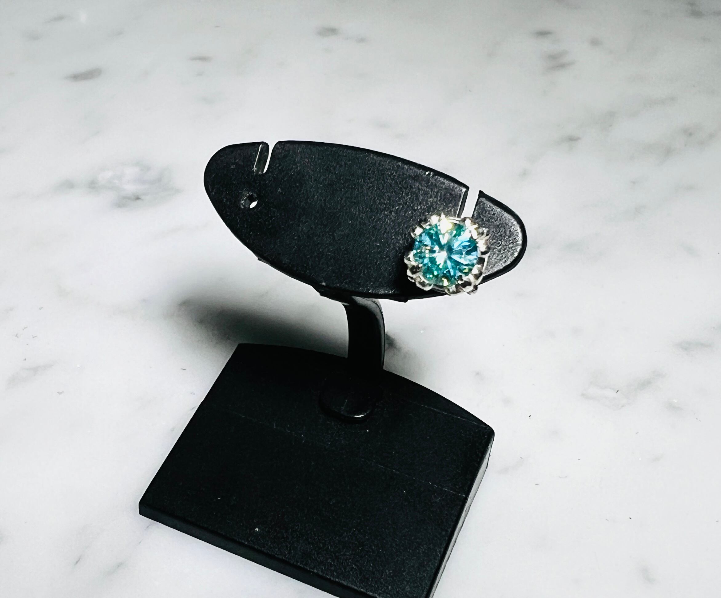 今回は、タイで仕入れた青系のモアサナイト2石中の1石を使いますので、1石はこのピアス、もう1石はリングになります。