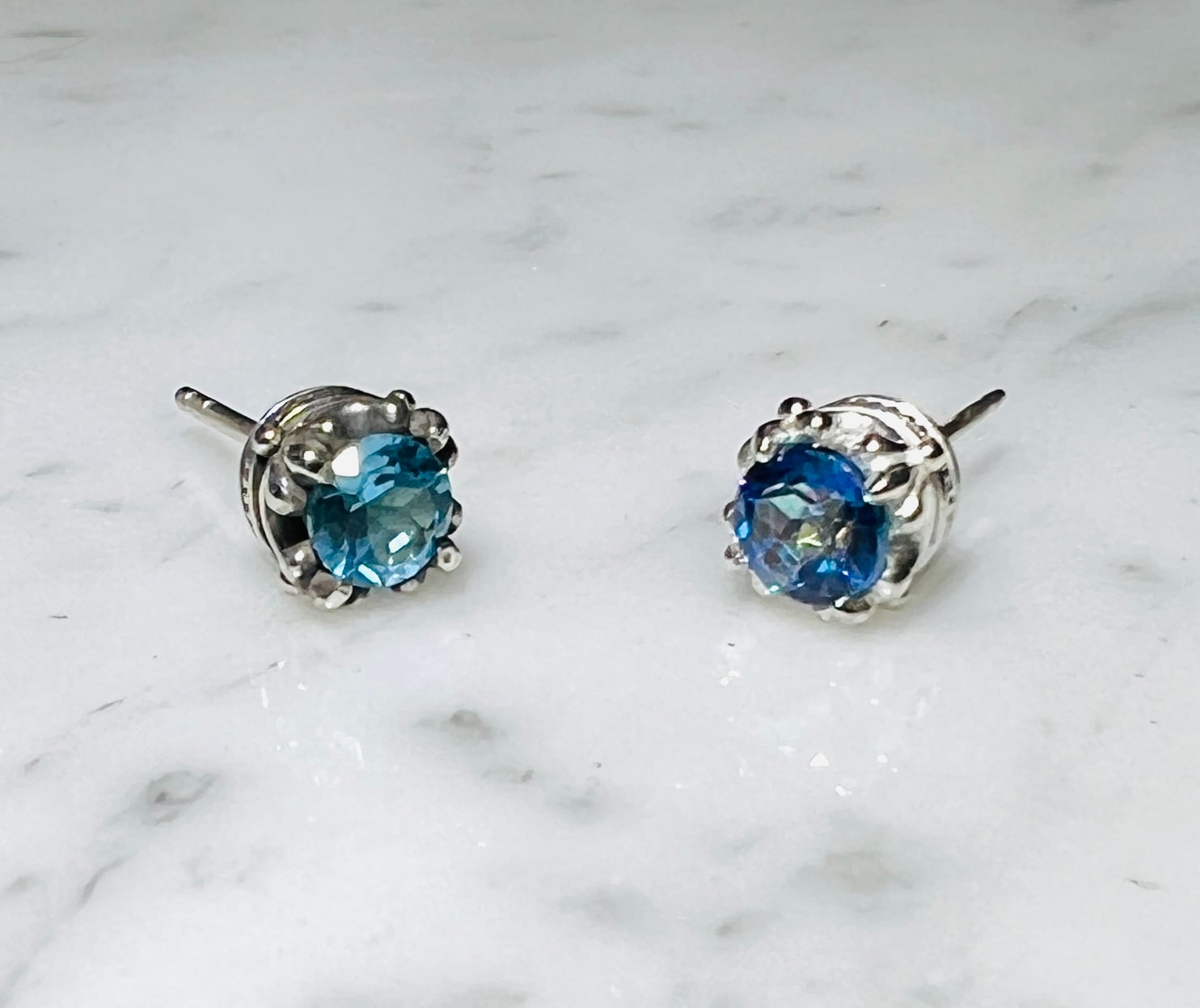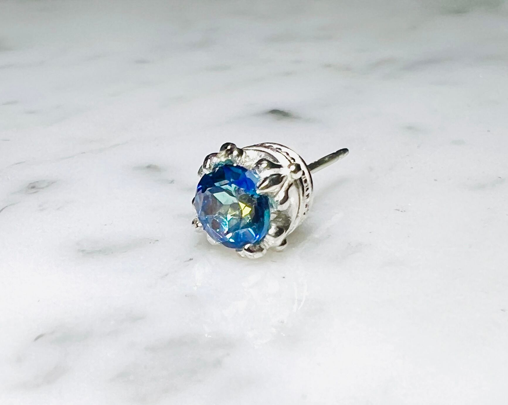 右は特殊加工のトパーズを使用した、青と薄紫が角度で混ざり合う洒落た感じの石です☆
