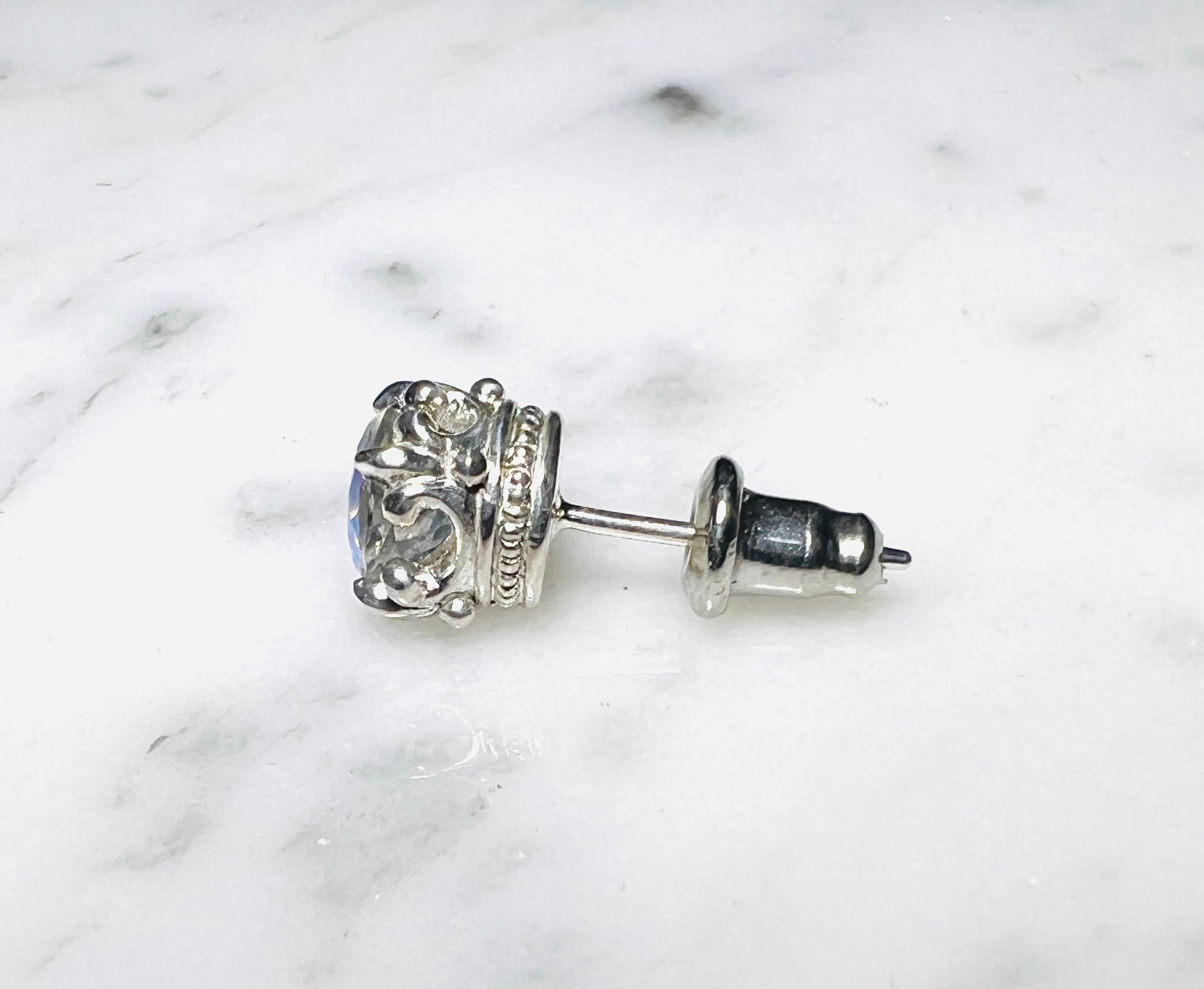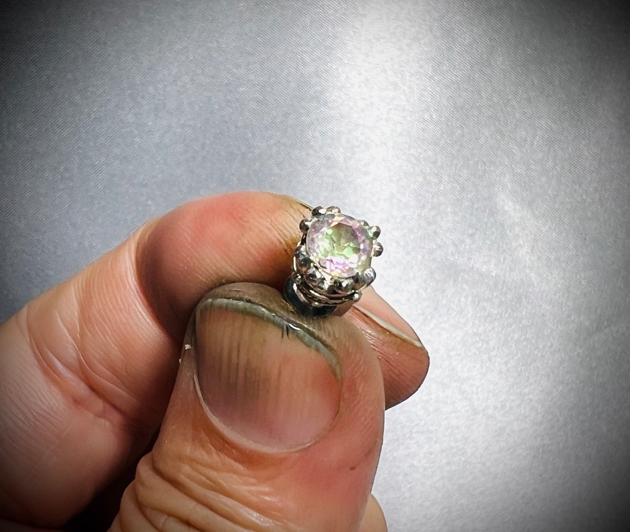 ホワイトトパーズにオーロラ系の特殊加工で、まるでシャボン玉の様な輝きで、白仕上げで☆