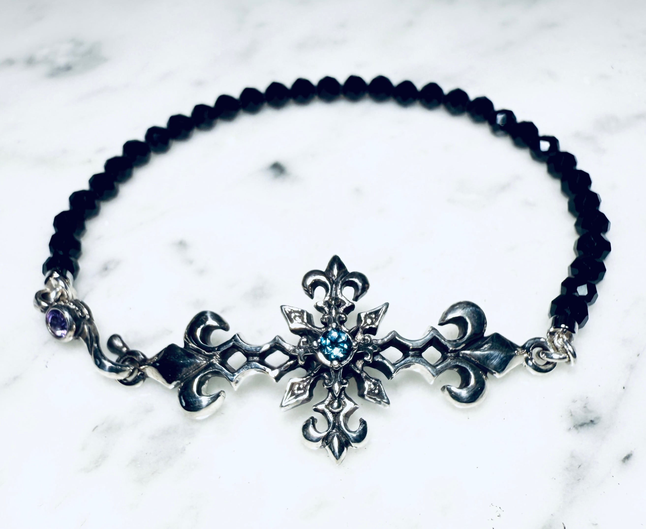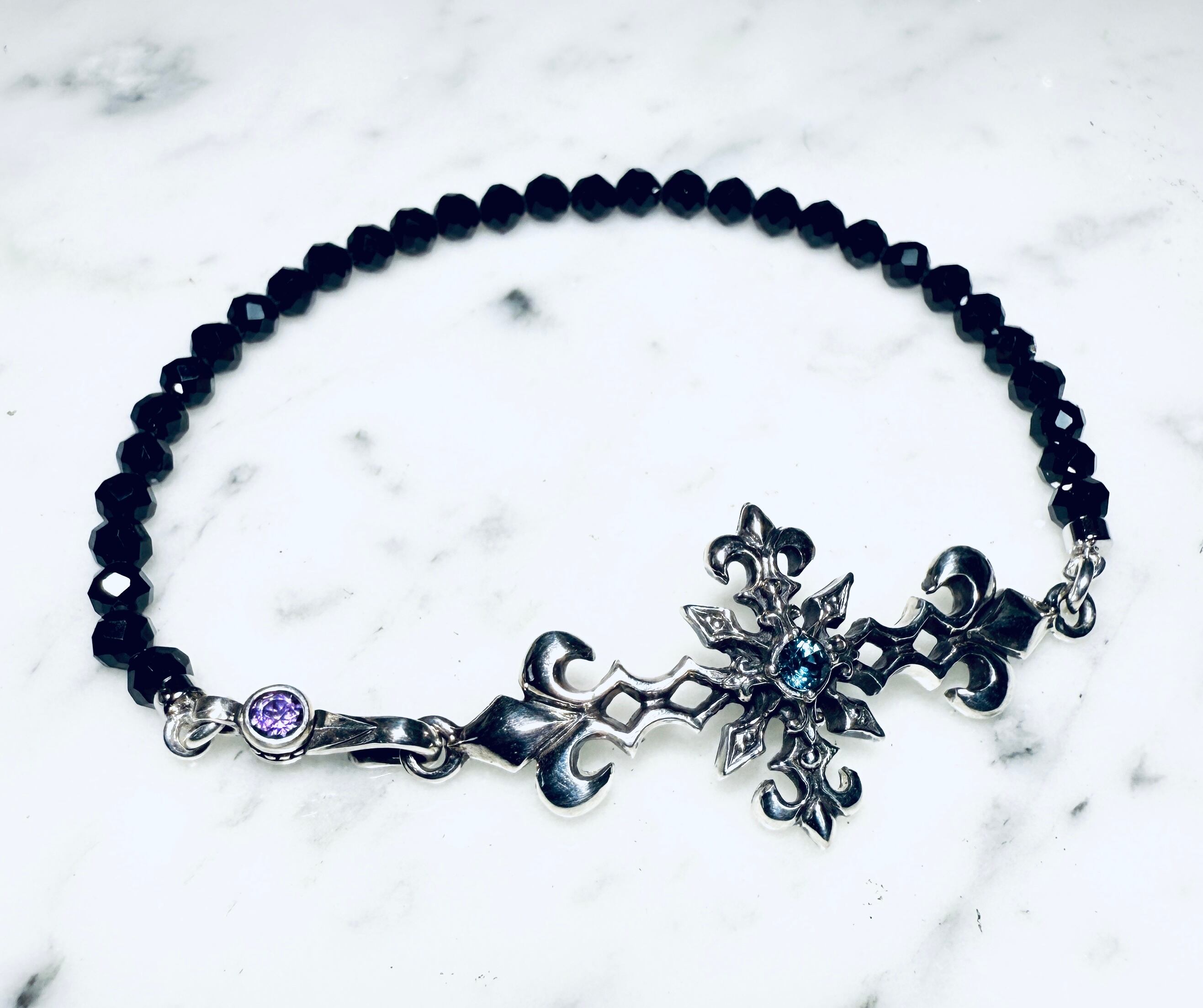 古き良きゴシッククロスデザインの中央の石も選べる。