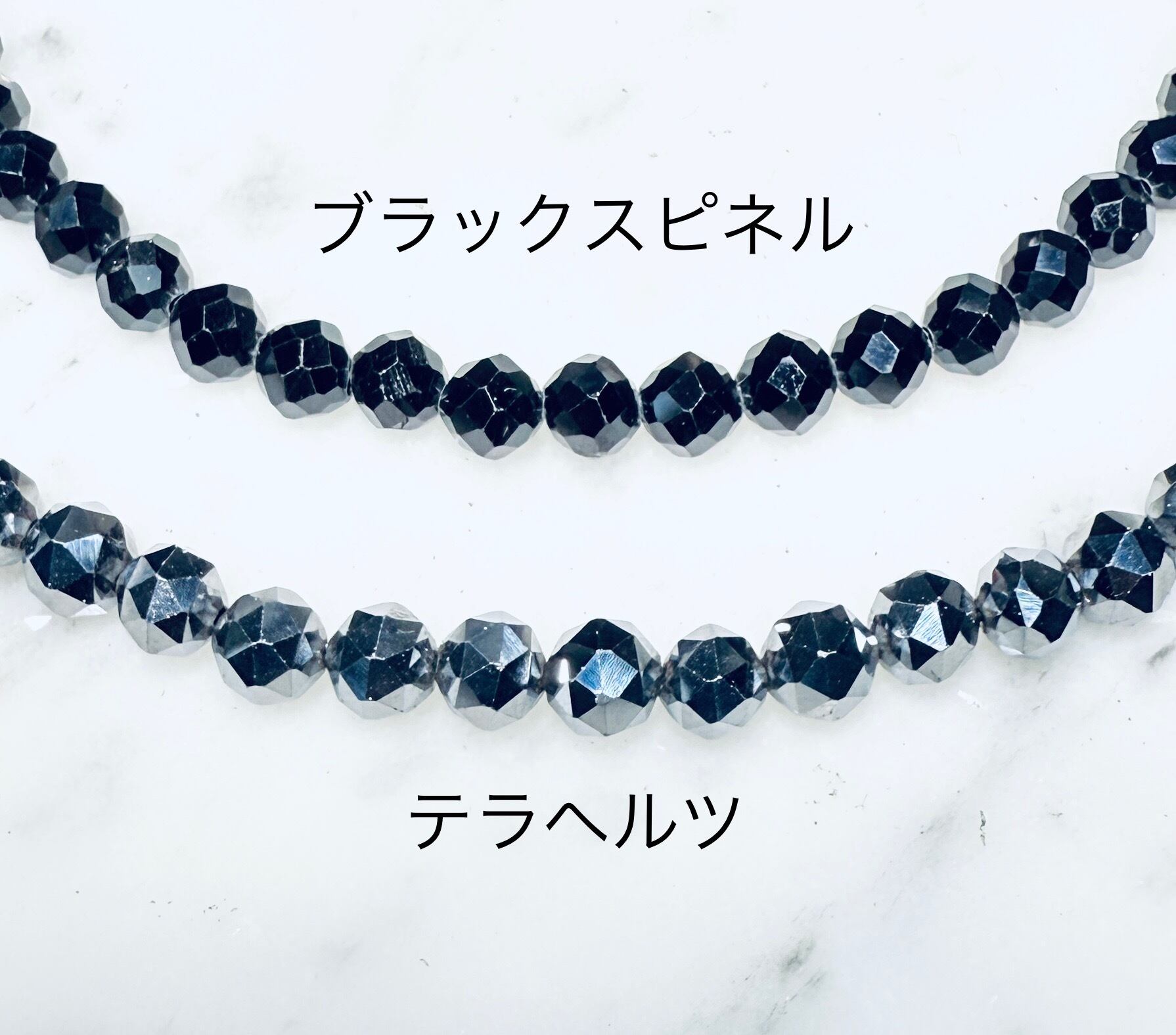 それを多面カットのキラキラ天然石のチェーンで繋ぎ