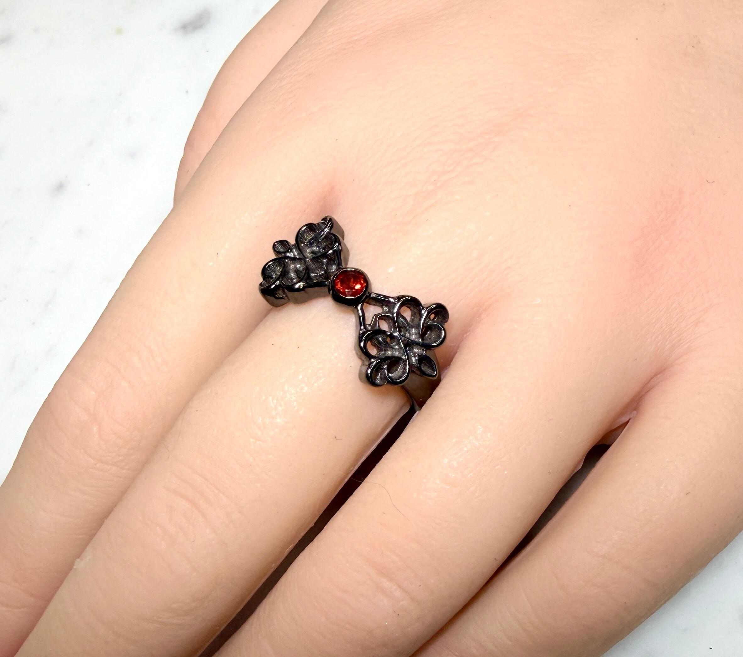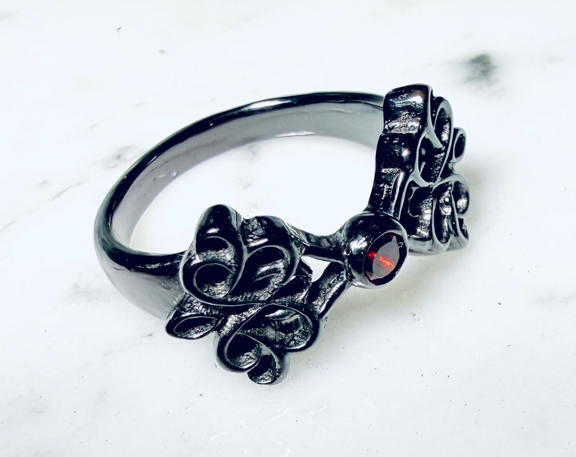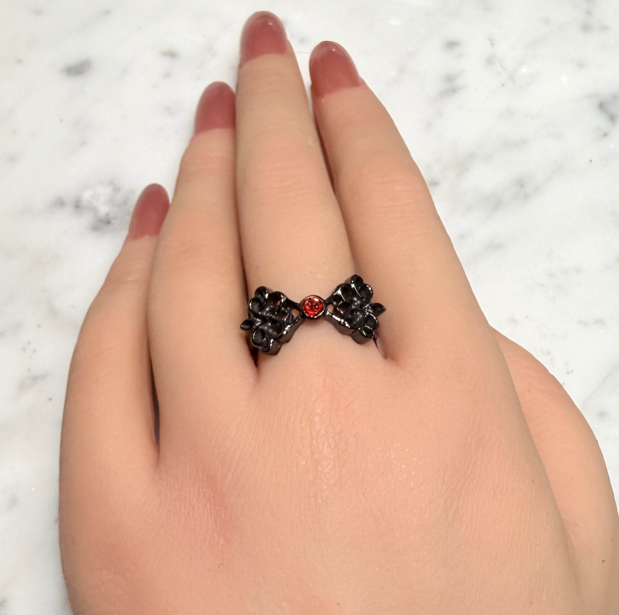 ☆シンデレラサイズ特価品(16号)☆ BLACK インペリアル リボン リング with ガーネット